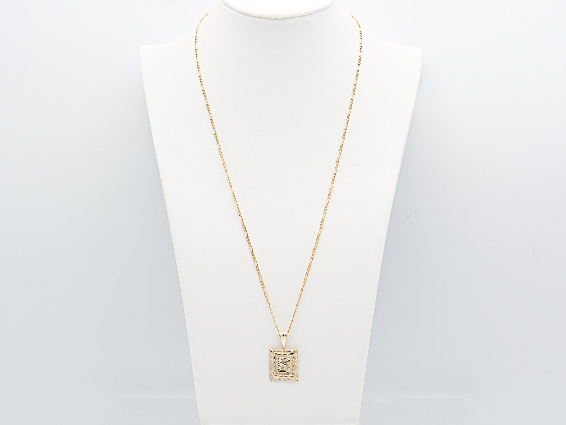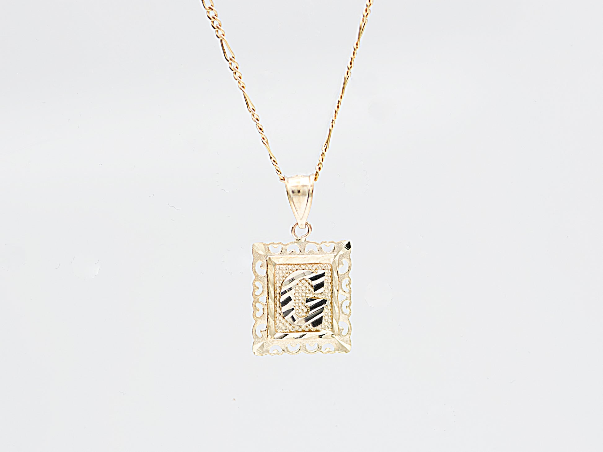 10K Solid Gold Medal Initial Alphabet Letter Frame Figaro chain Necklace