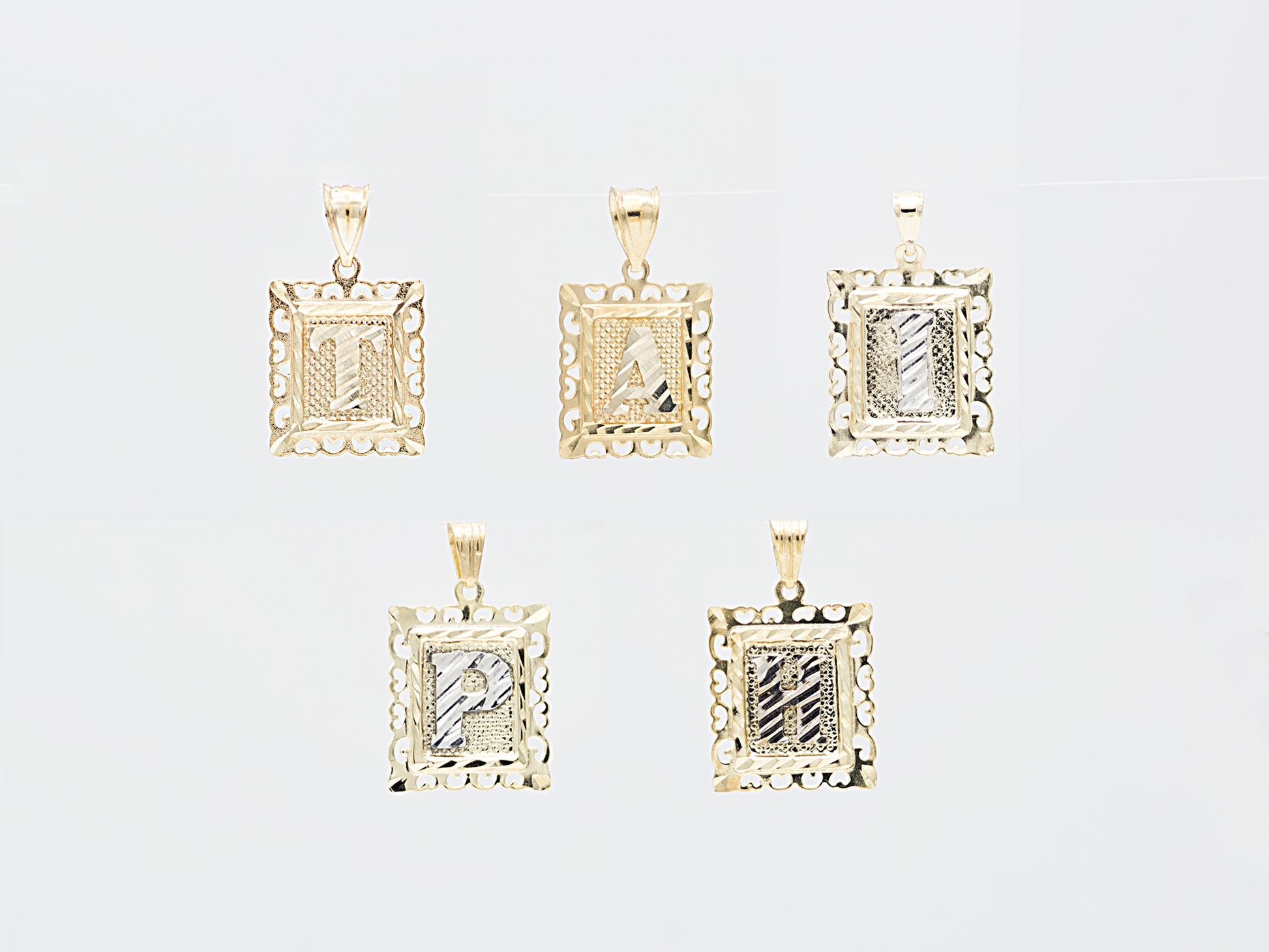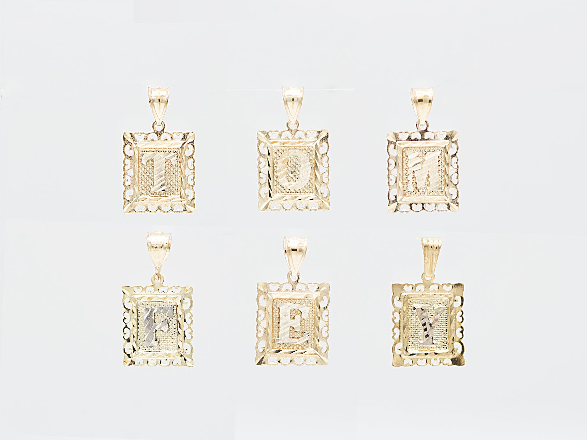 Authentic 10K Solid Gold Medal Initial Alphabet Letter Frame Charm/Pendant Plate Square Diamond Cut for Men and Women, 10K Gold Letter A-Z.