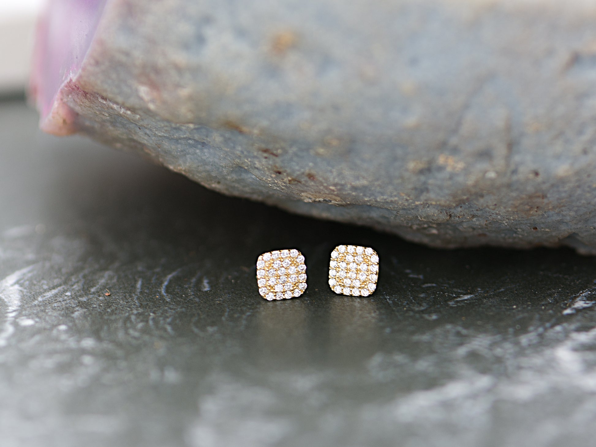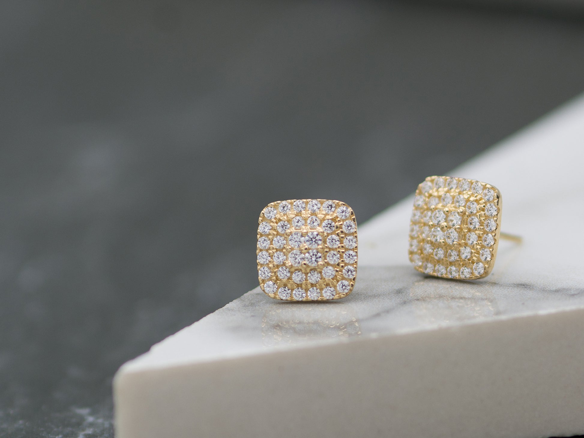 Simple, edge and brilliant Square earring is Geometric cutting setting will give a crisp and clean look that we all been looking for, dress it up for special event or just dress it down with T- shirt and a jean, will work both ways.