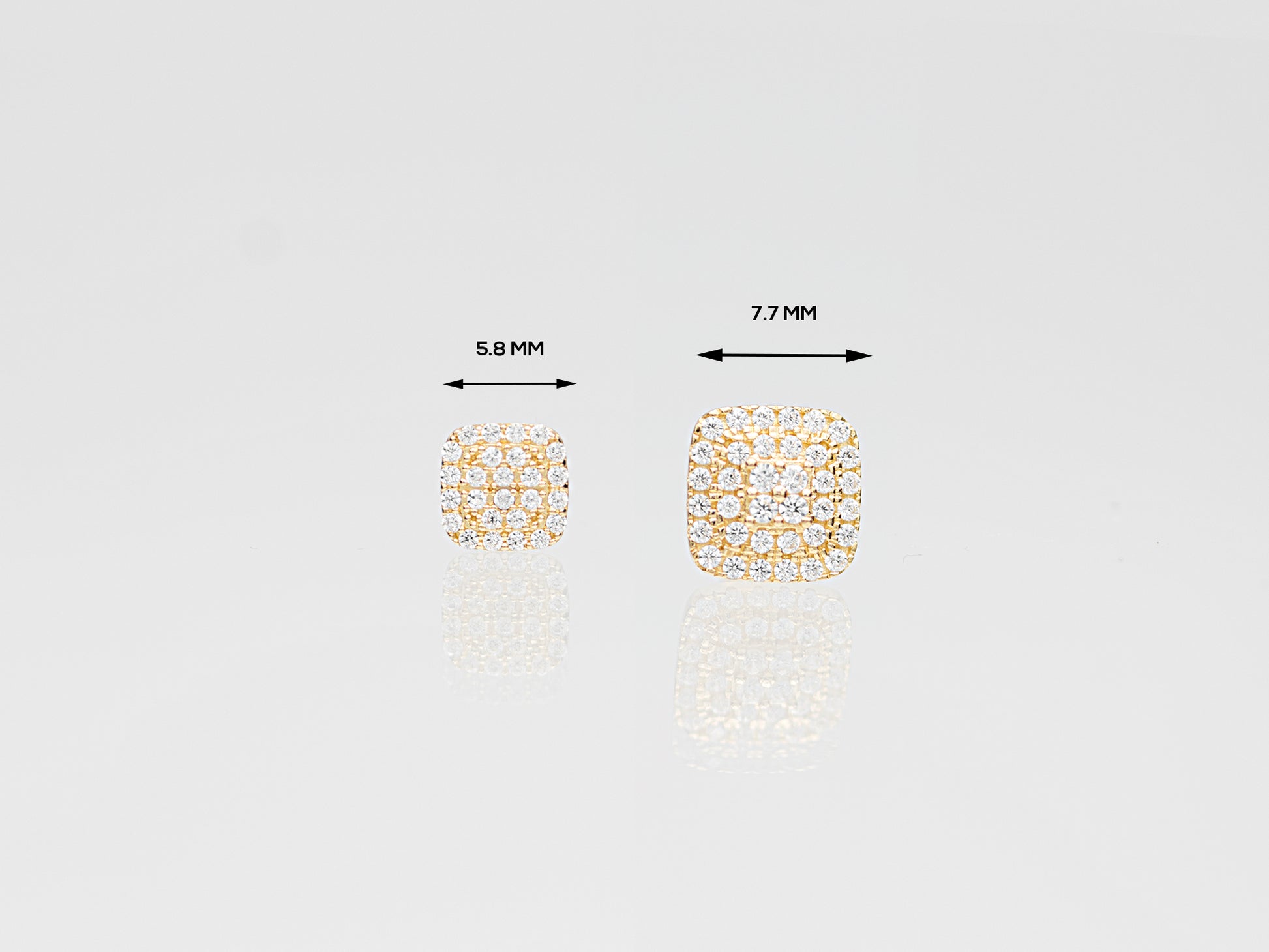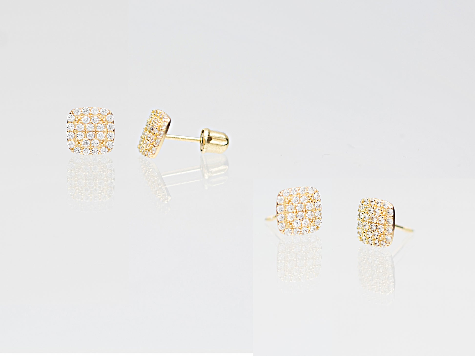 14K Genuine Solid Gold with Rounded Square Simulated Diamond studs earring