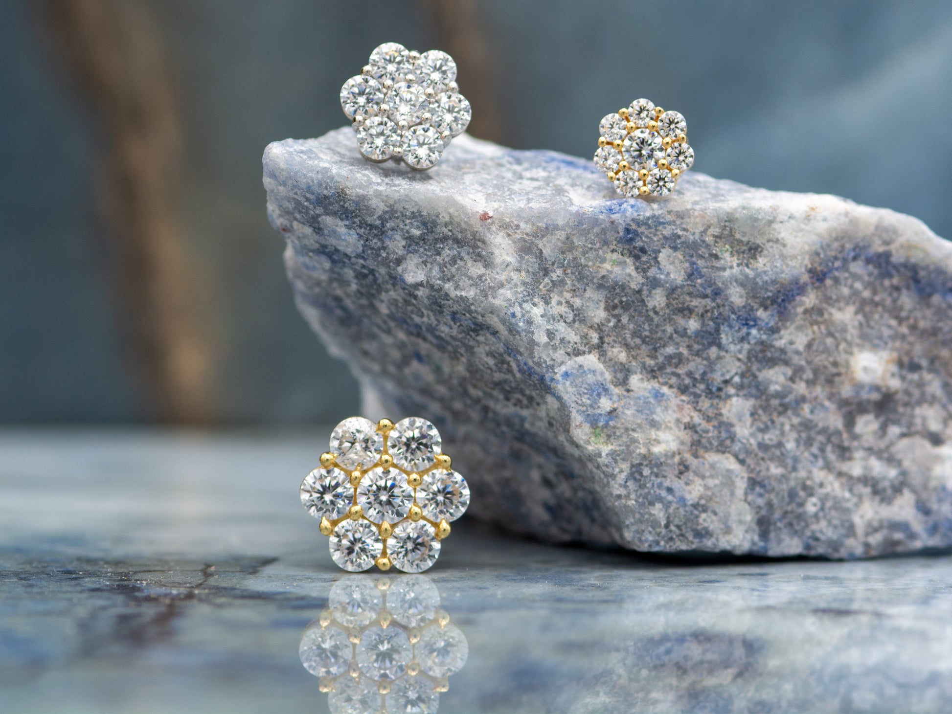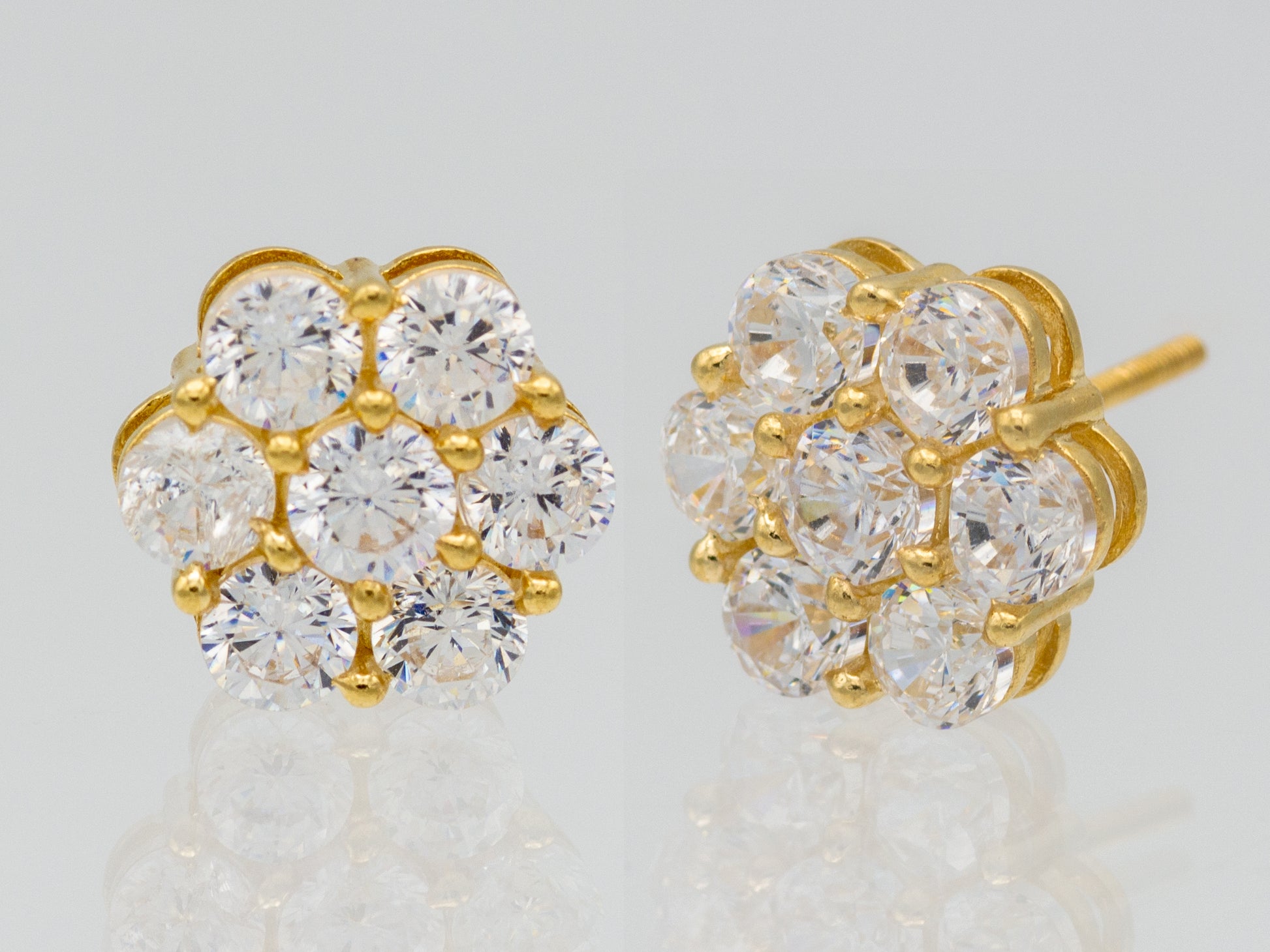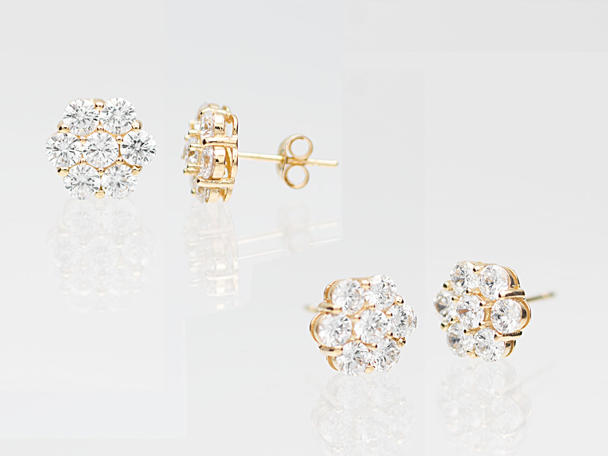 14k Gold Genuine Diamond 7 Stone Honey comb Cluster Stud Earrings