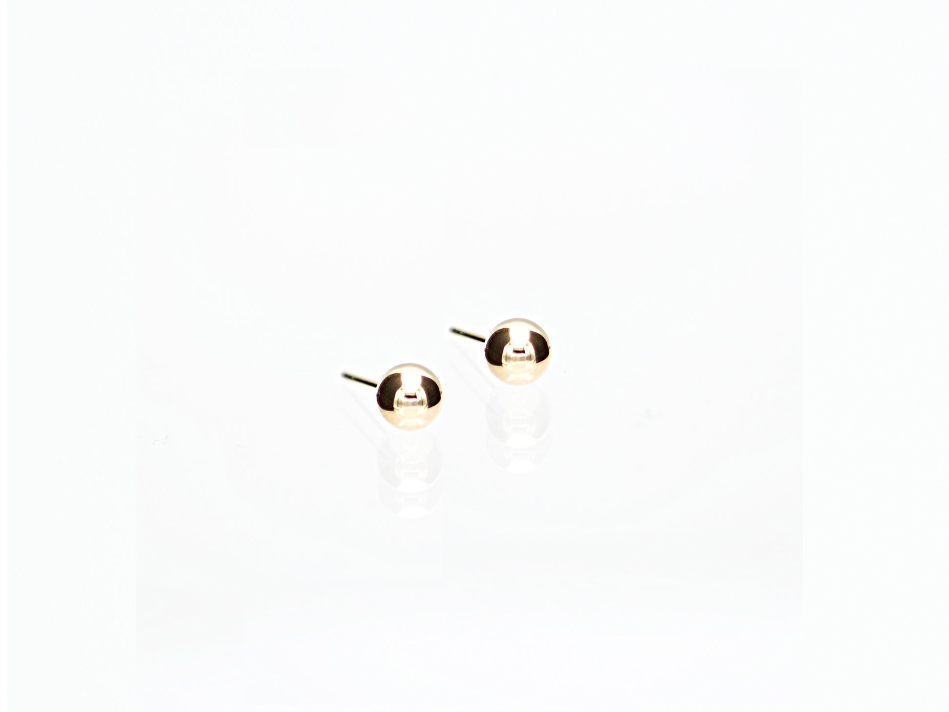 14K Gold Round Ball Earrings / Solid Yellow, white Gold Minimalist Classic Dainty Fashion Butterfly Push Back Studs, gift for her