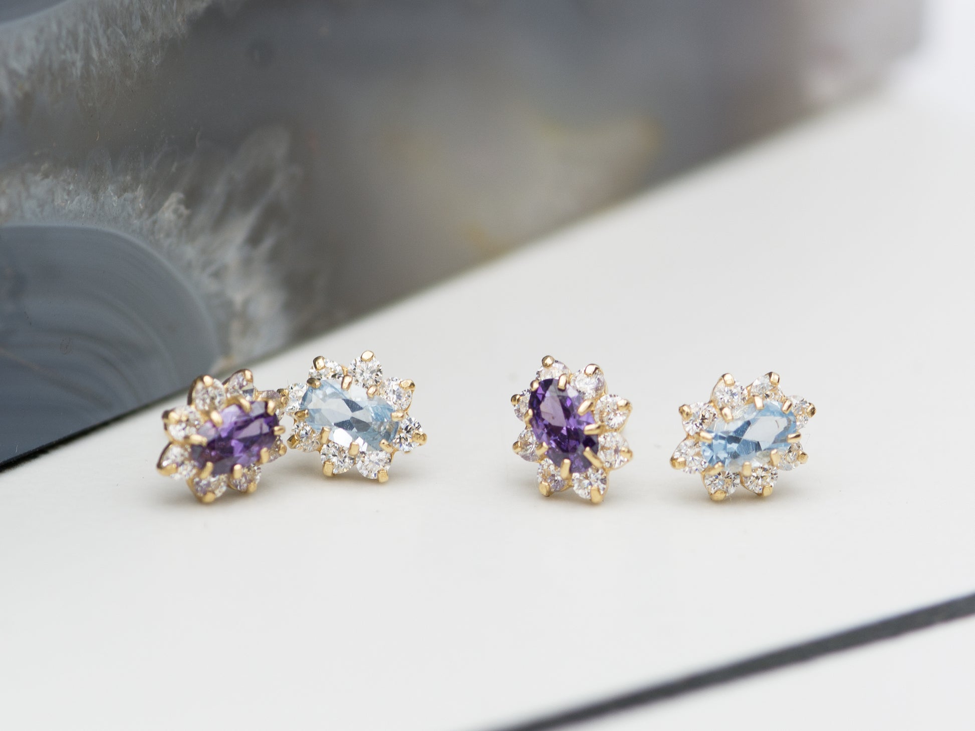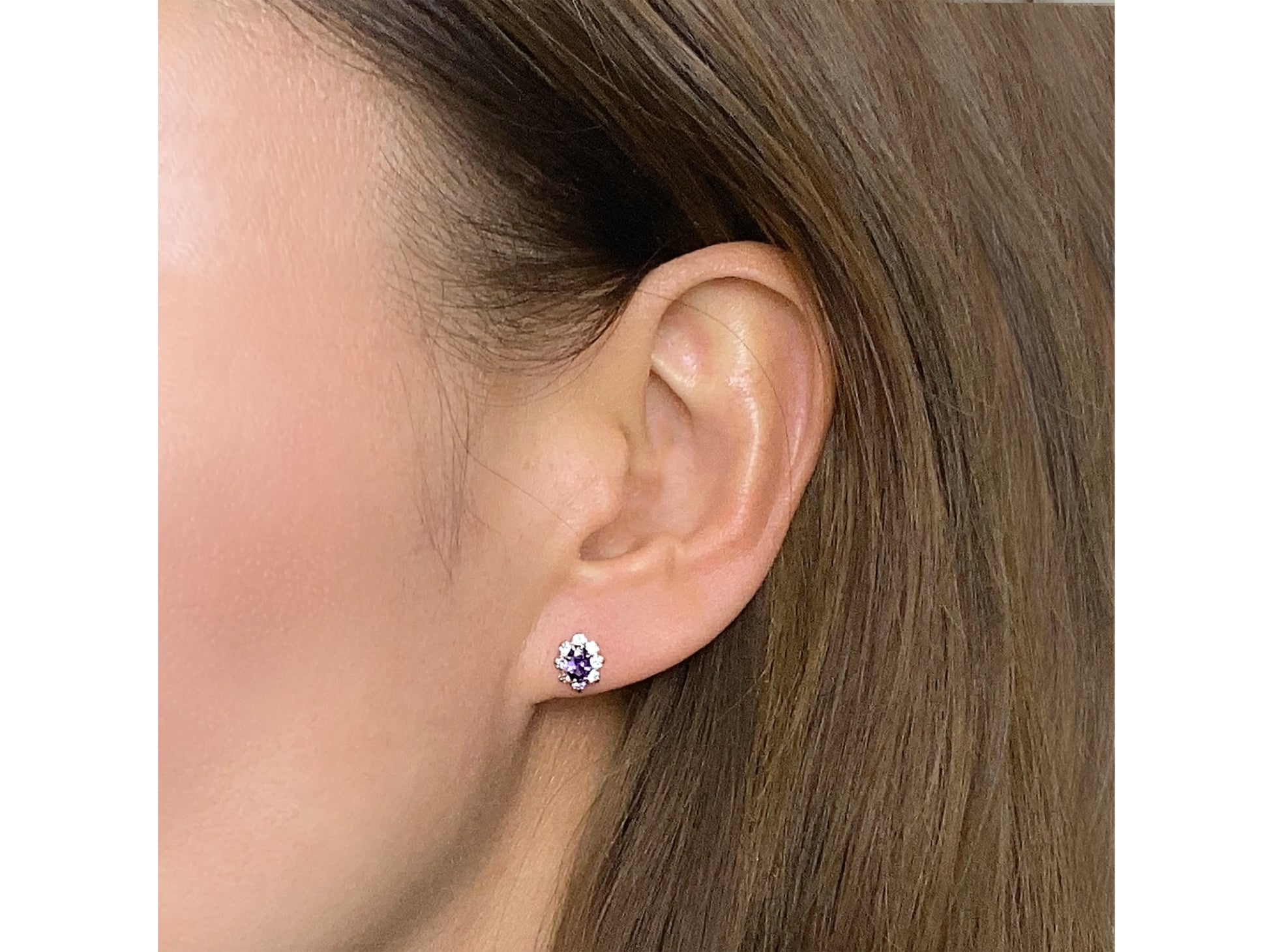 14K solid gold with Amethyst/synthetic Marquis shape surrounded by synthetic Diamond that coincide with each other harmoniously , resulting in brilliant shine that will catch your eyes and just fall in love with.