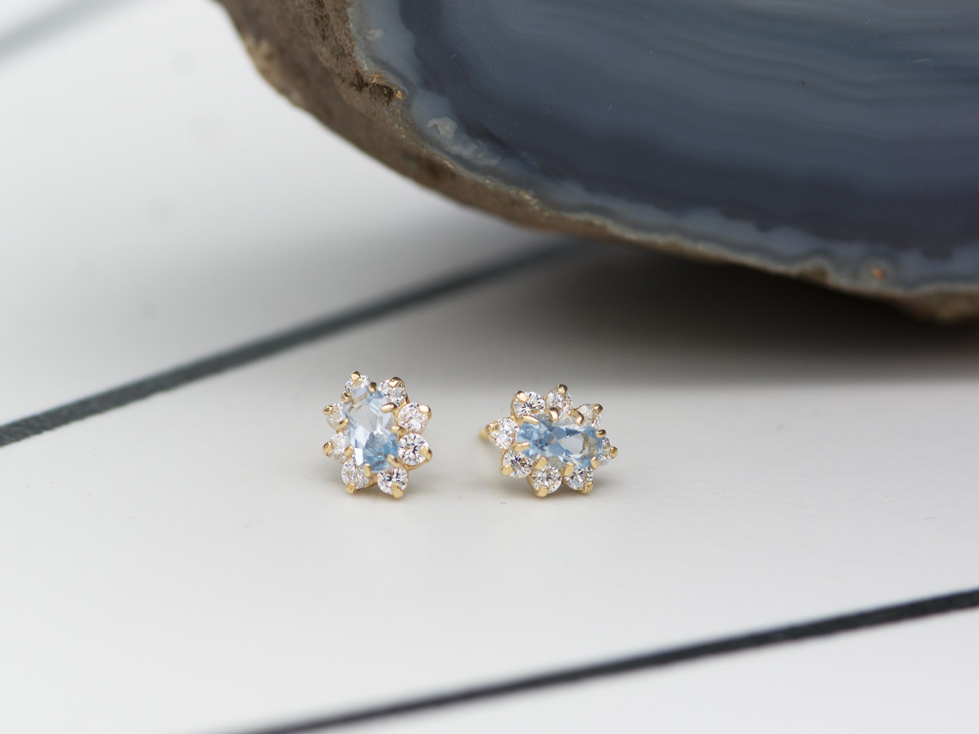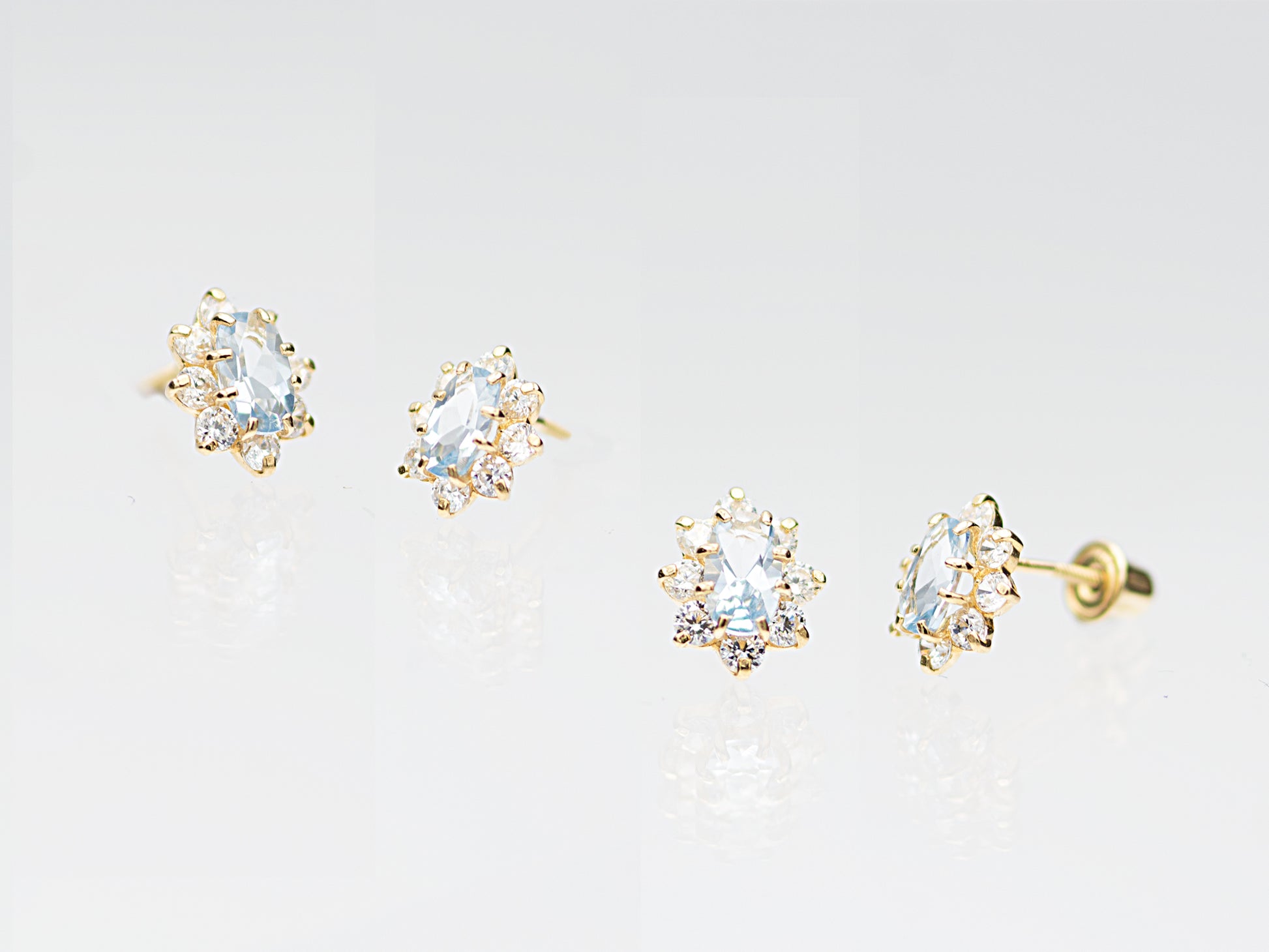 14K Solid Gold Marquis stud earring