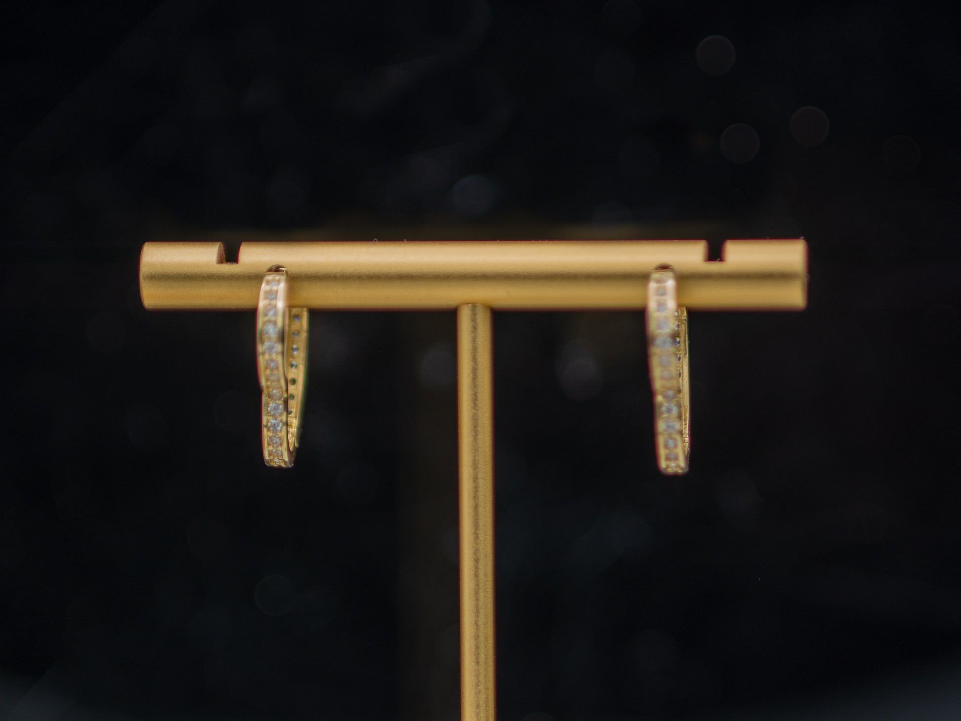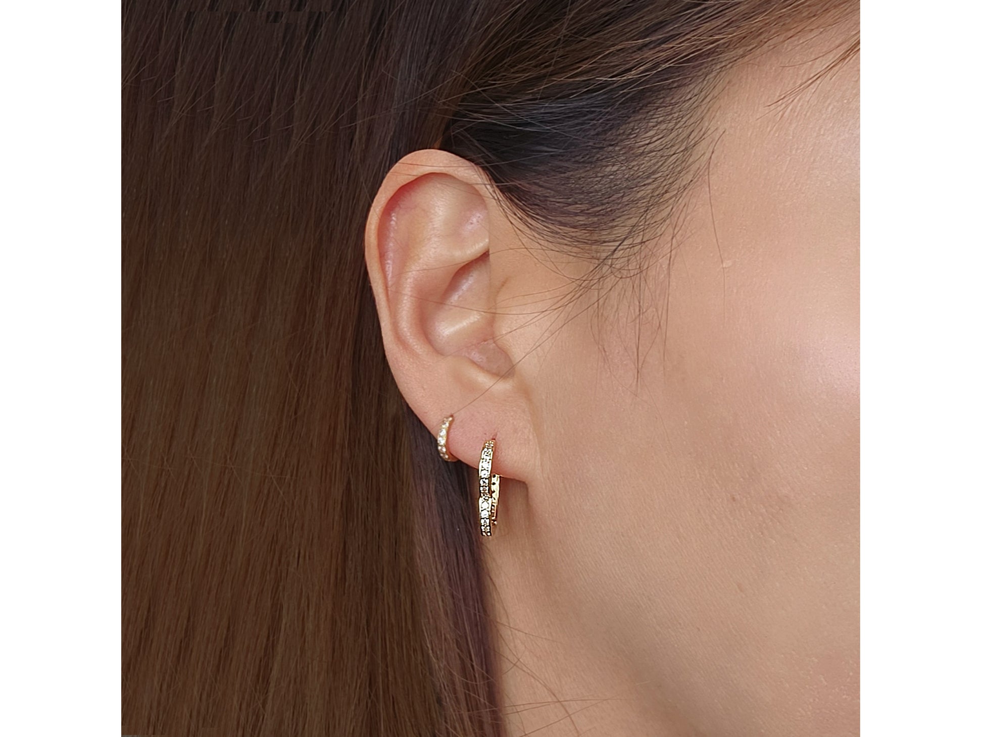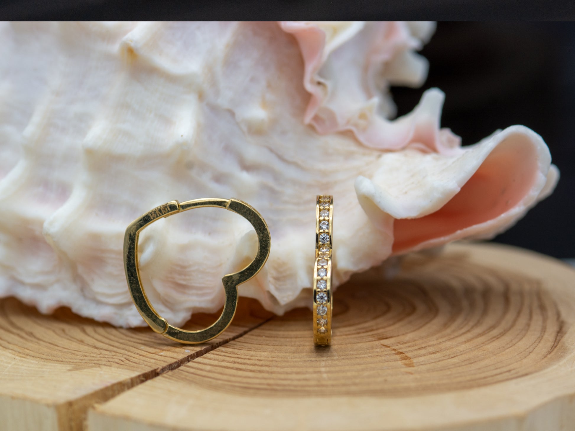 14K Solid Gold Heart Pave CZ Huggies Hoop earring