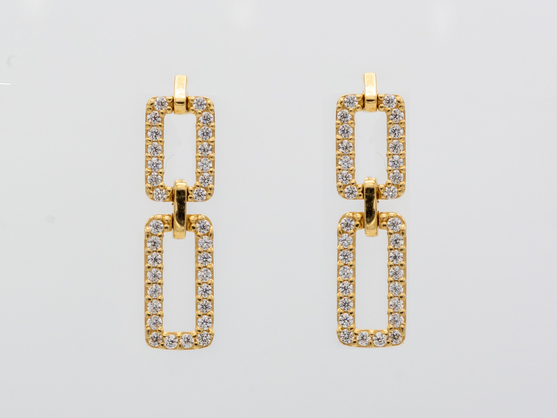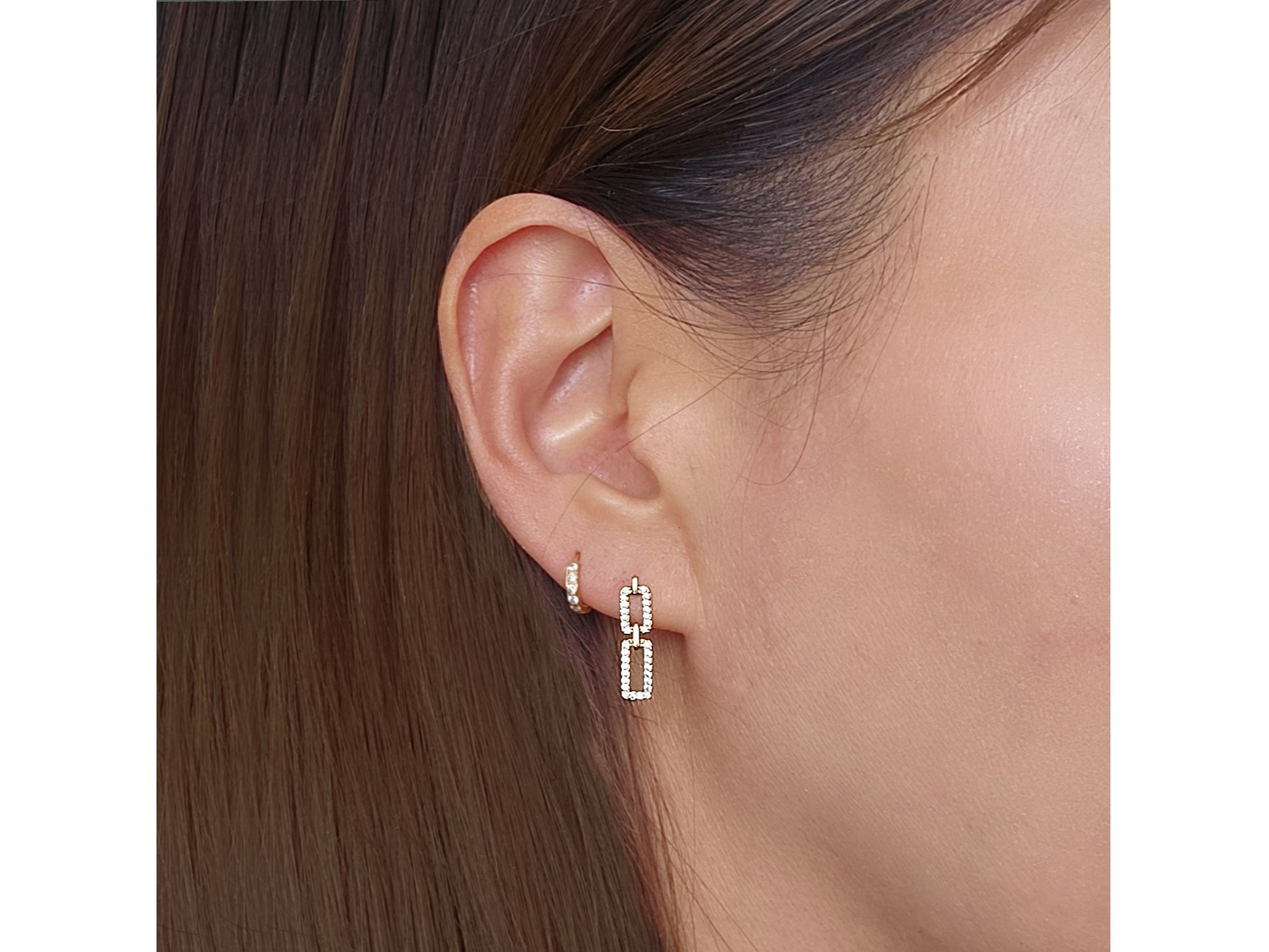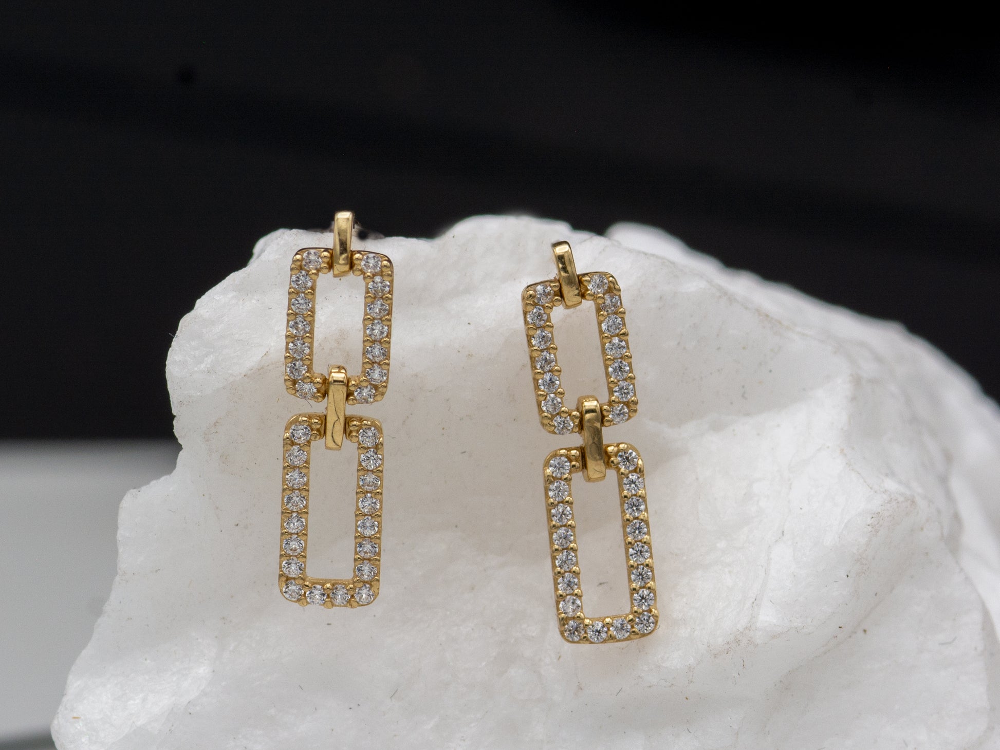 14k solid gold Pavé Simulated Diamond Paperclip Link Drop Earrings