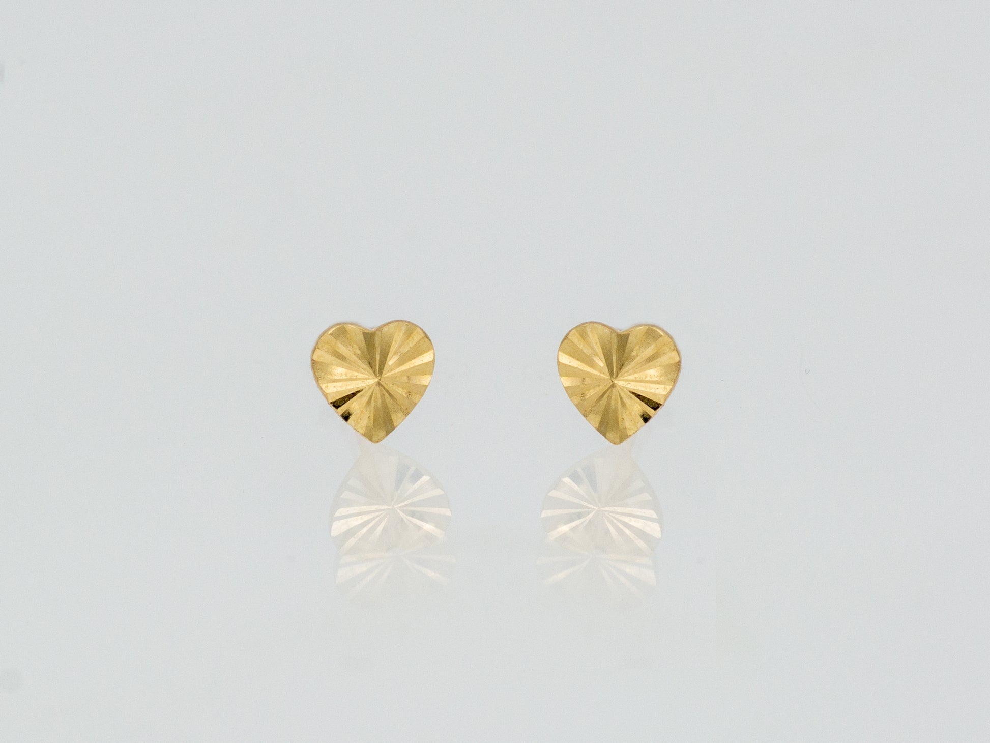 Show your love in style with these 14k solid gold diamond-cut heart stud earrings—featuring a modern, reflective touch and a stunning texture that sparkles with every movement thanks to the expert diamond-cut design.