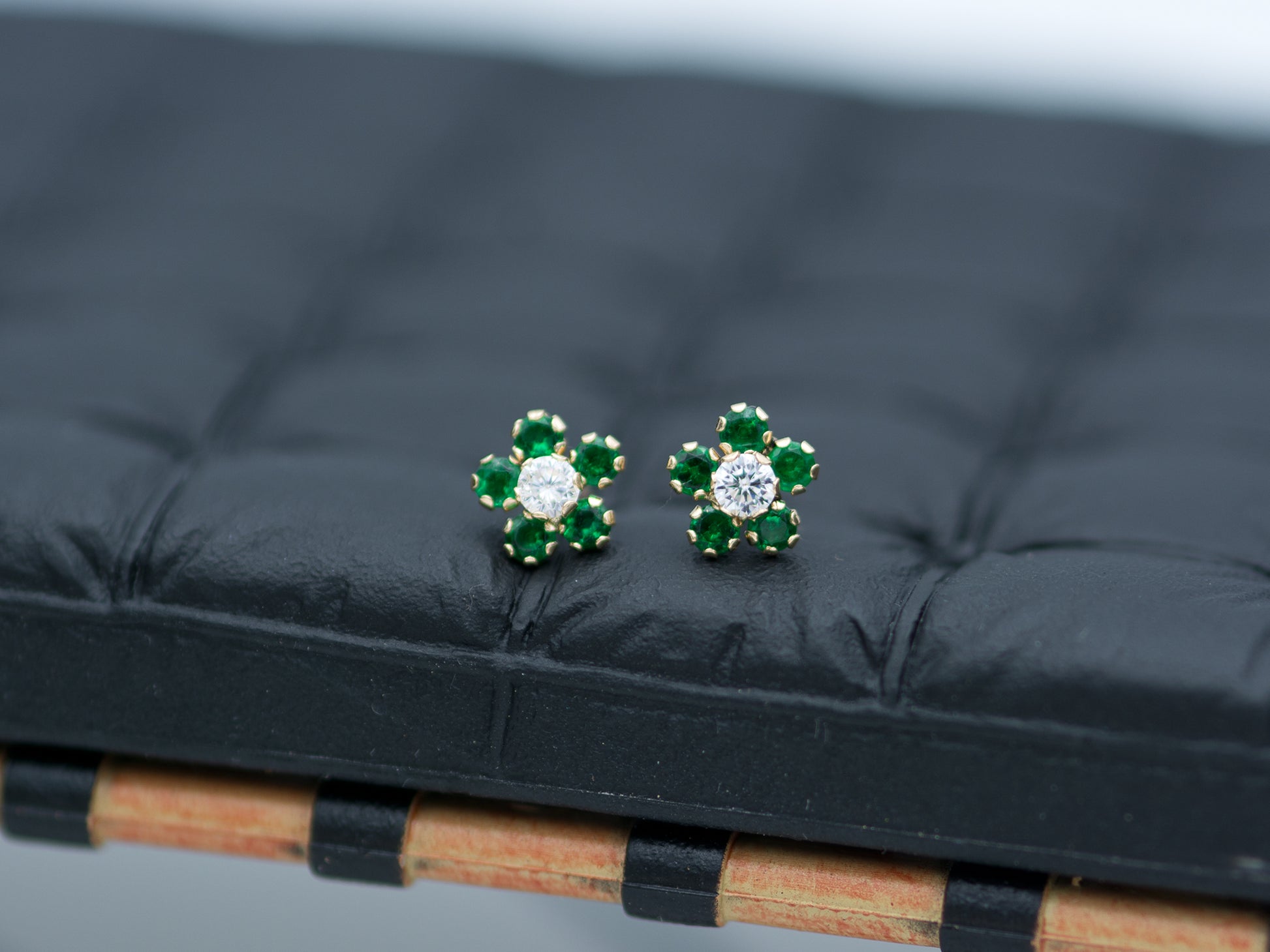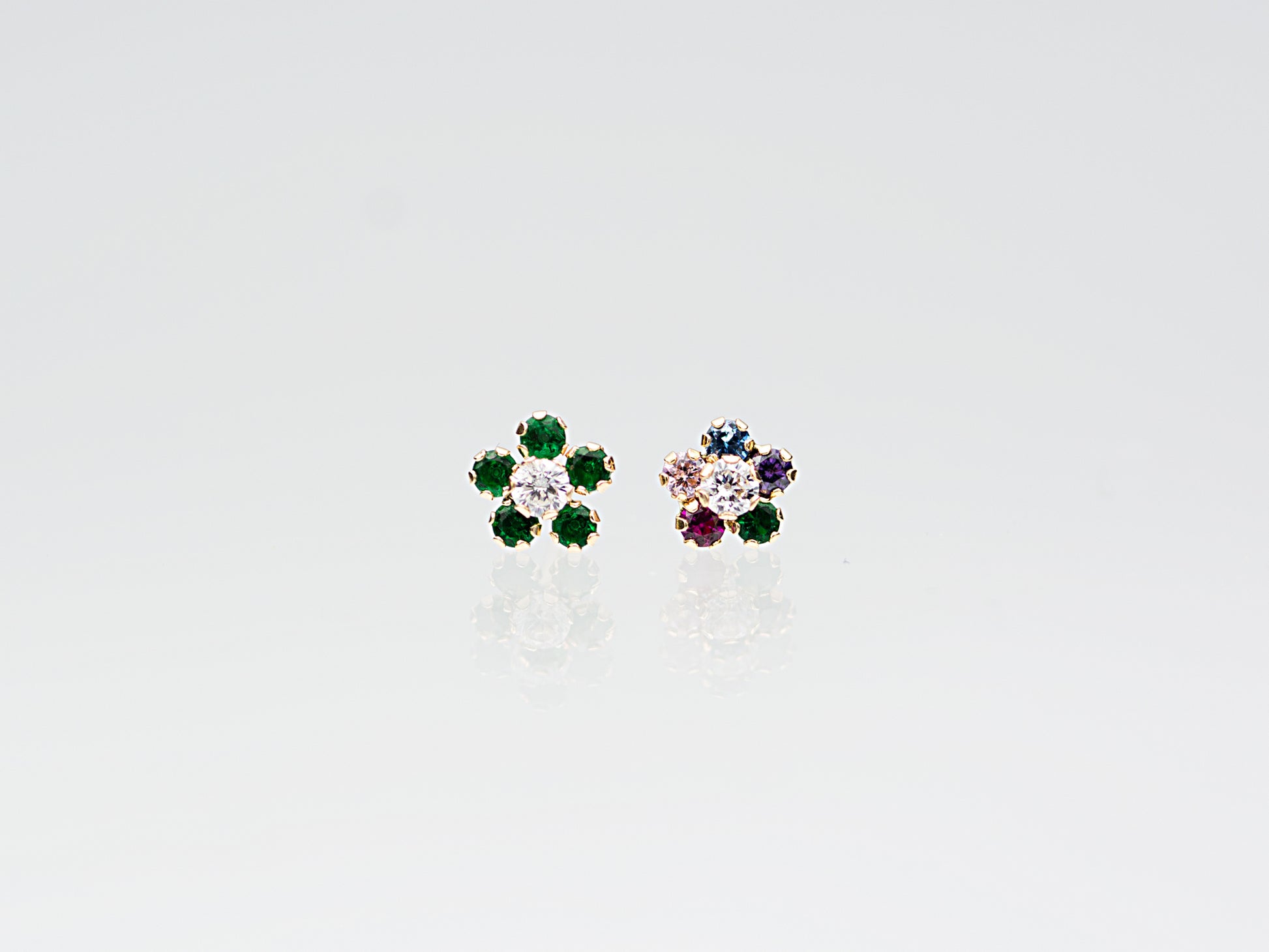 14K Solid Gold colorful Cubic zirconia flower stud earring