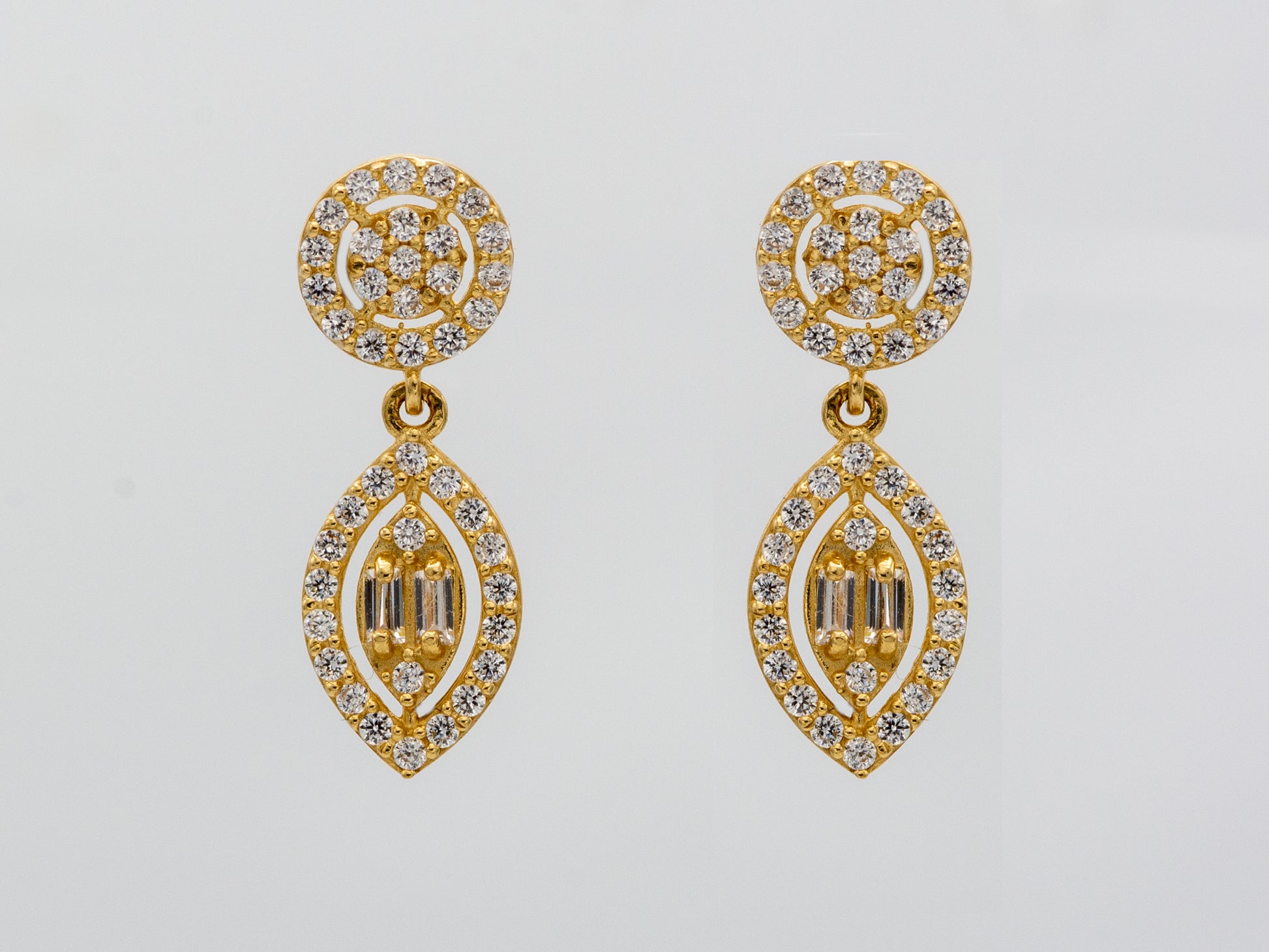 14k solid gold Baguette Simulated Diamond Teardrop Earrings