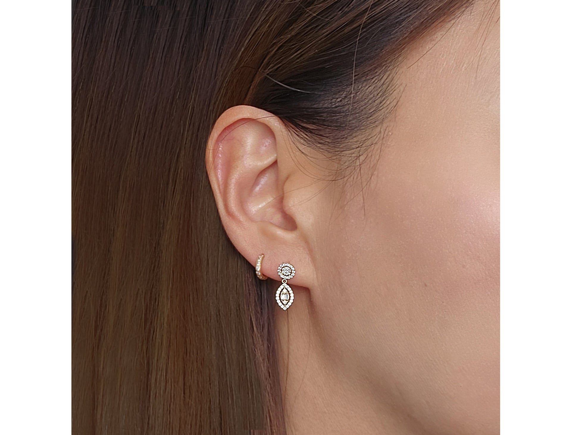 Elevate your elegance instantly with these 14K solid gold baguette simulated diamond teardrop earrings. Adorned with sparkling cubic zirconia and crafted with exquisite attention to detail, their sophisticated design makes them perfect for evening wear and special occasions.