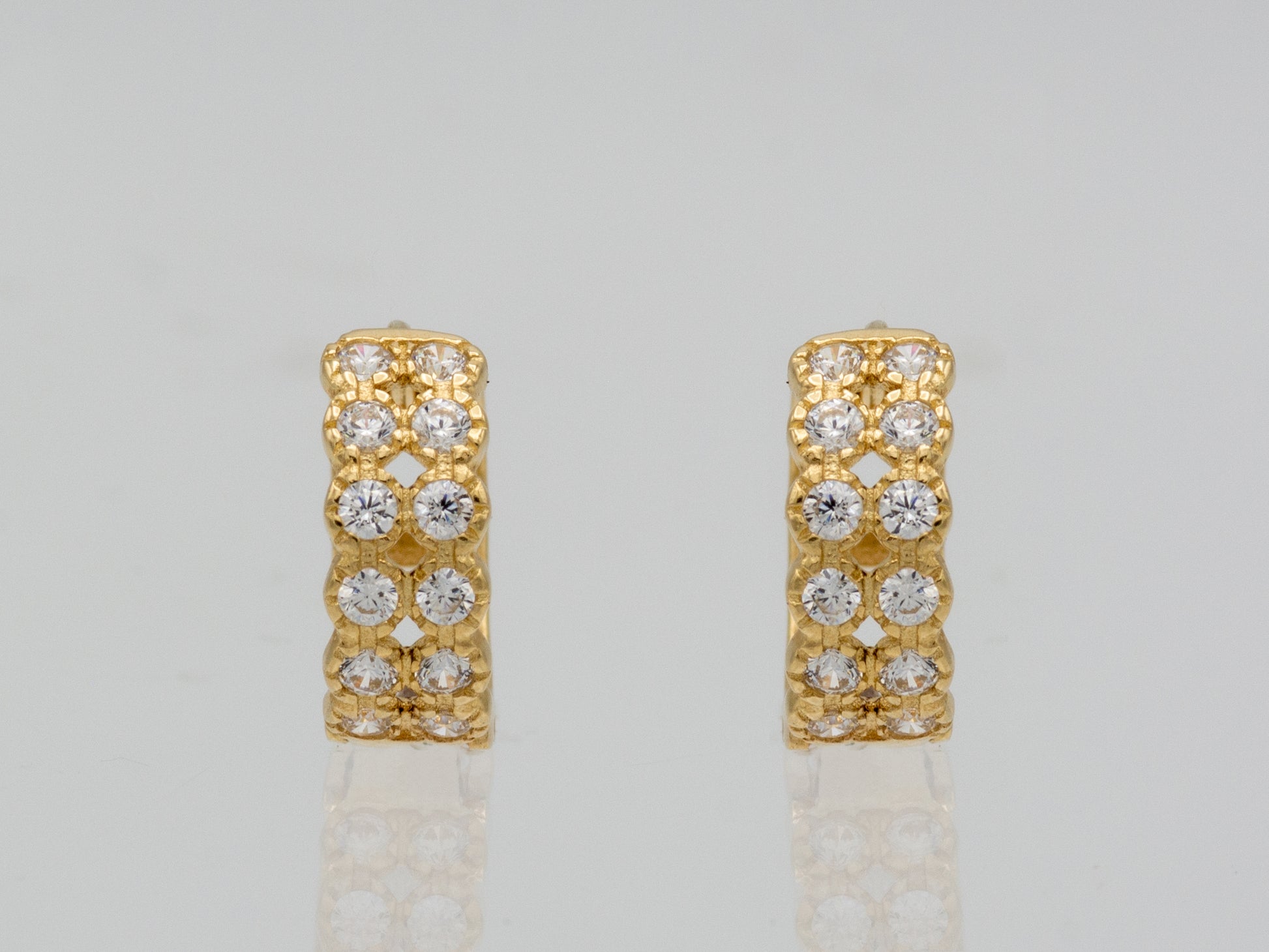 14k solid gold Two-Row Pavé Hoop Huggies earring