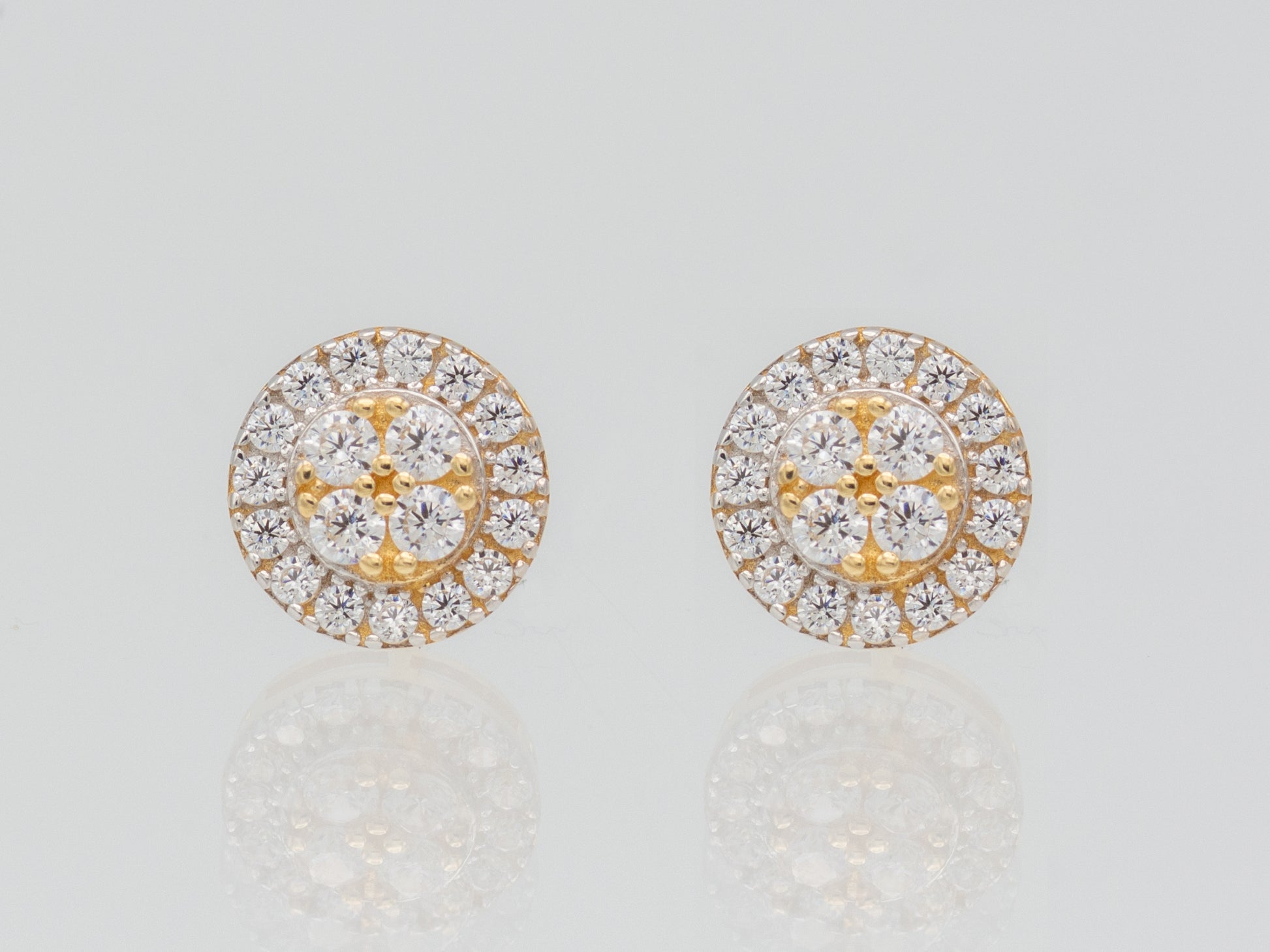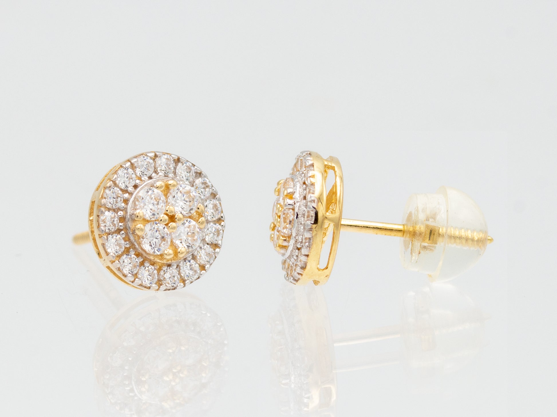 14k solid gold Round Cluster Simulated Diamond Unisex Stud Earring