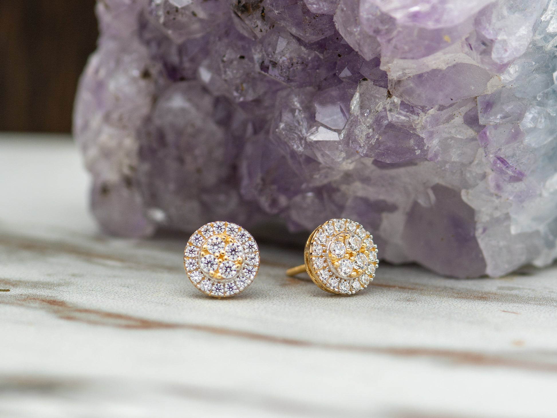 Exuding timeless sophistication, these Round Brilliant Diamond Cluster Stud Earrings in 14K solid yellow gold are a refined choice for both formal occasions and everyday elegance—making them a must-have addition to any jewelry collection for men and women.