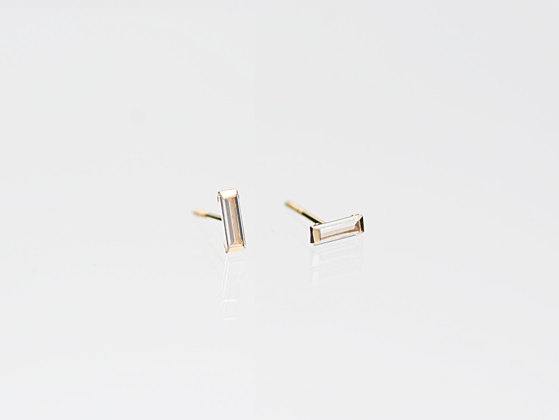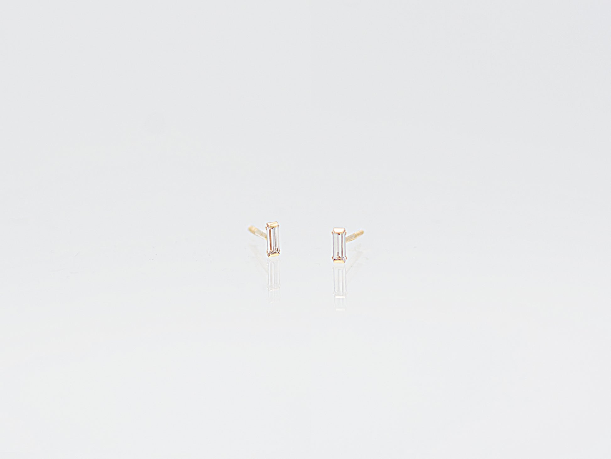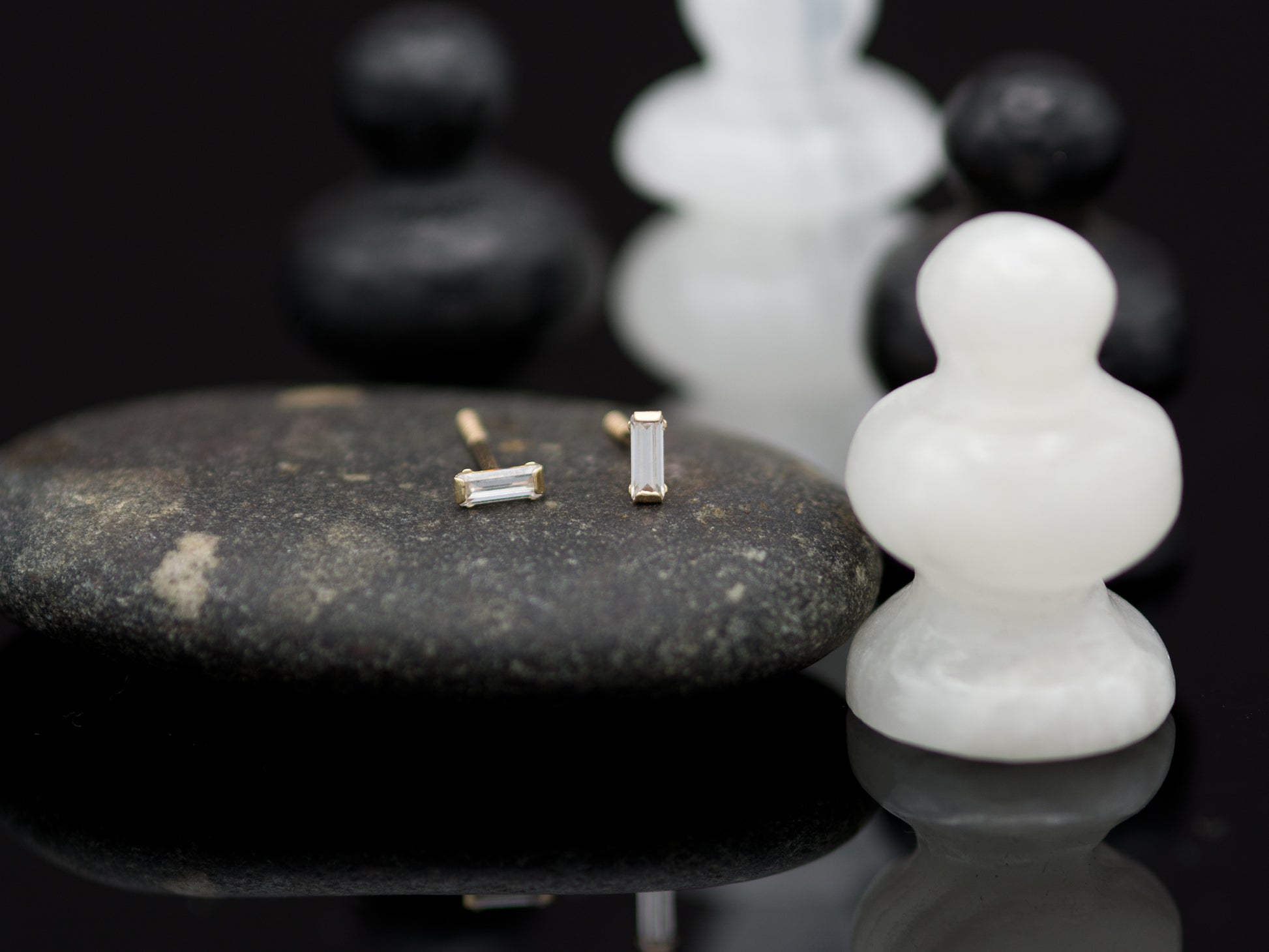 Minimalist gold bar studs with simulated emerald cut diamond that are perfect with any outfit! Wear these studs from a day at work to a night out with the girls they seriously go with everything. Their simple design makes them easy to pair with other studs if you have more than one piercing. Wear them horizontal or vertical.