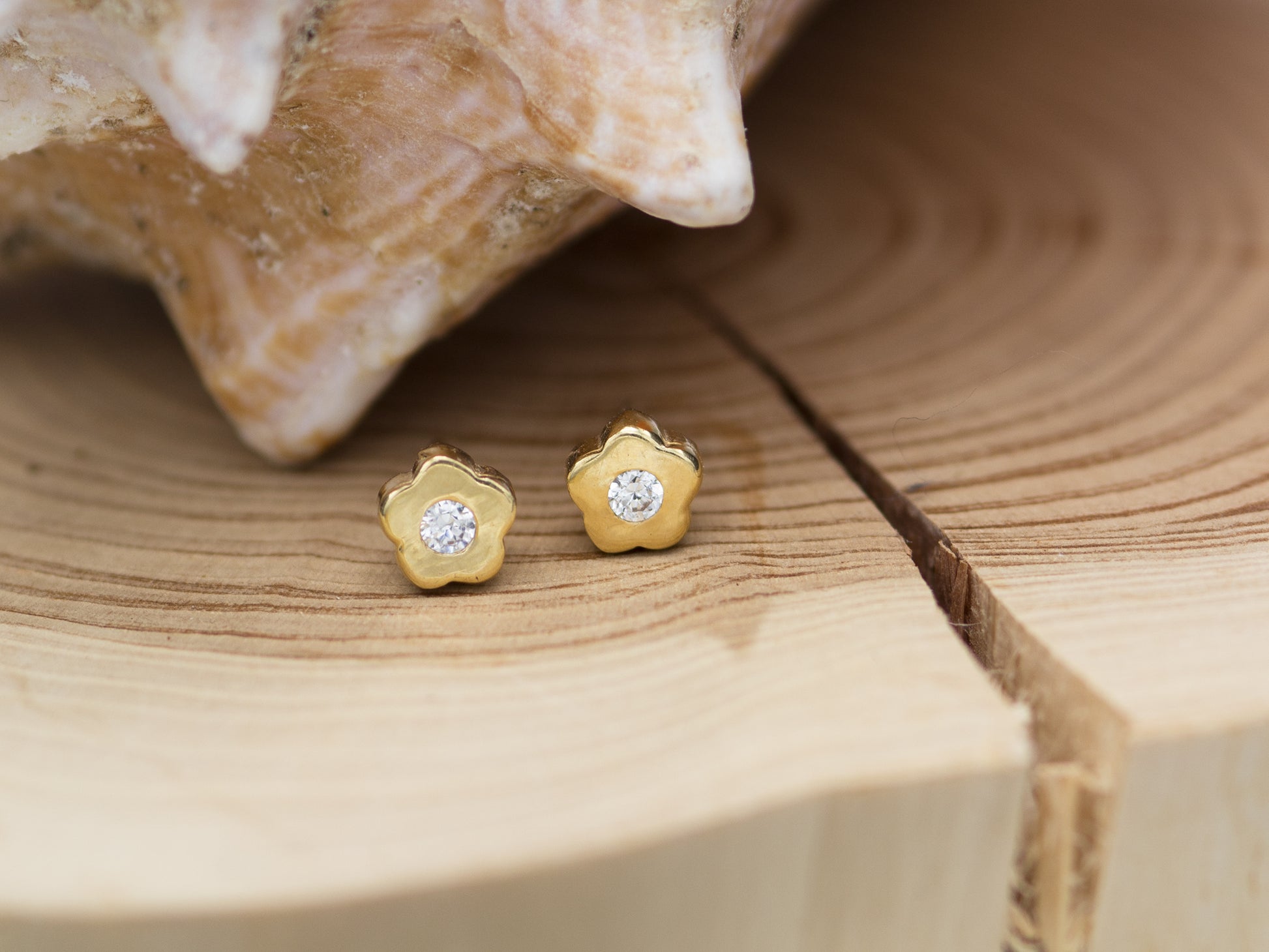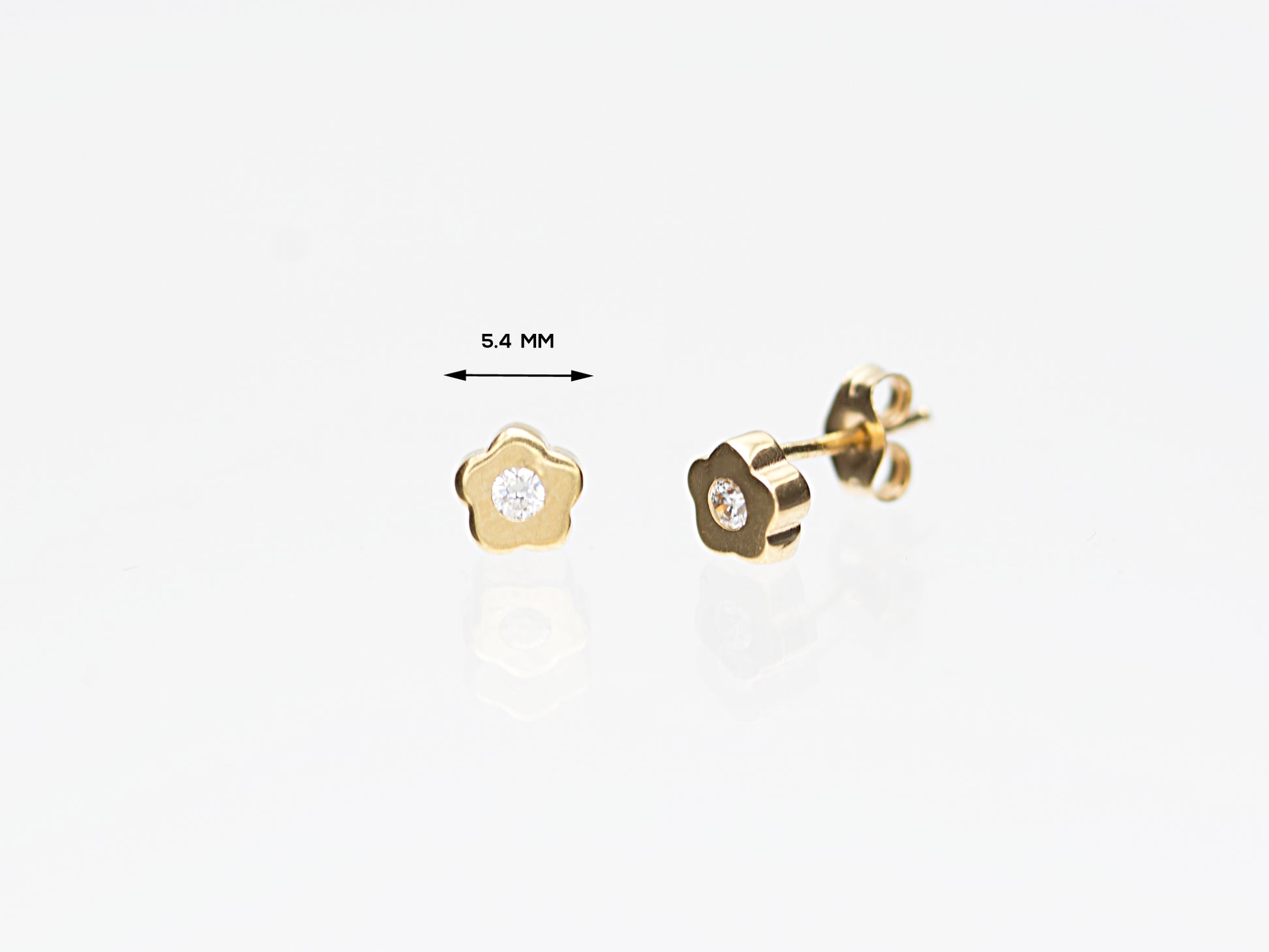 14K Solid Gold Flower earrings, Tiny Stud earrings with simulated diamond , Minimalist Dainty Gift for Holiday
