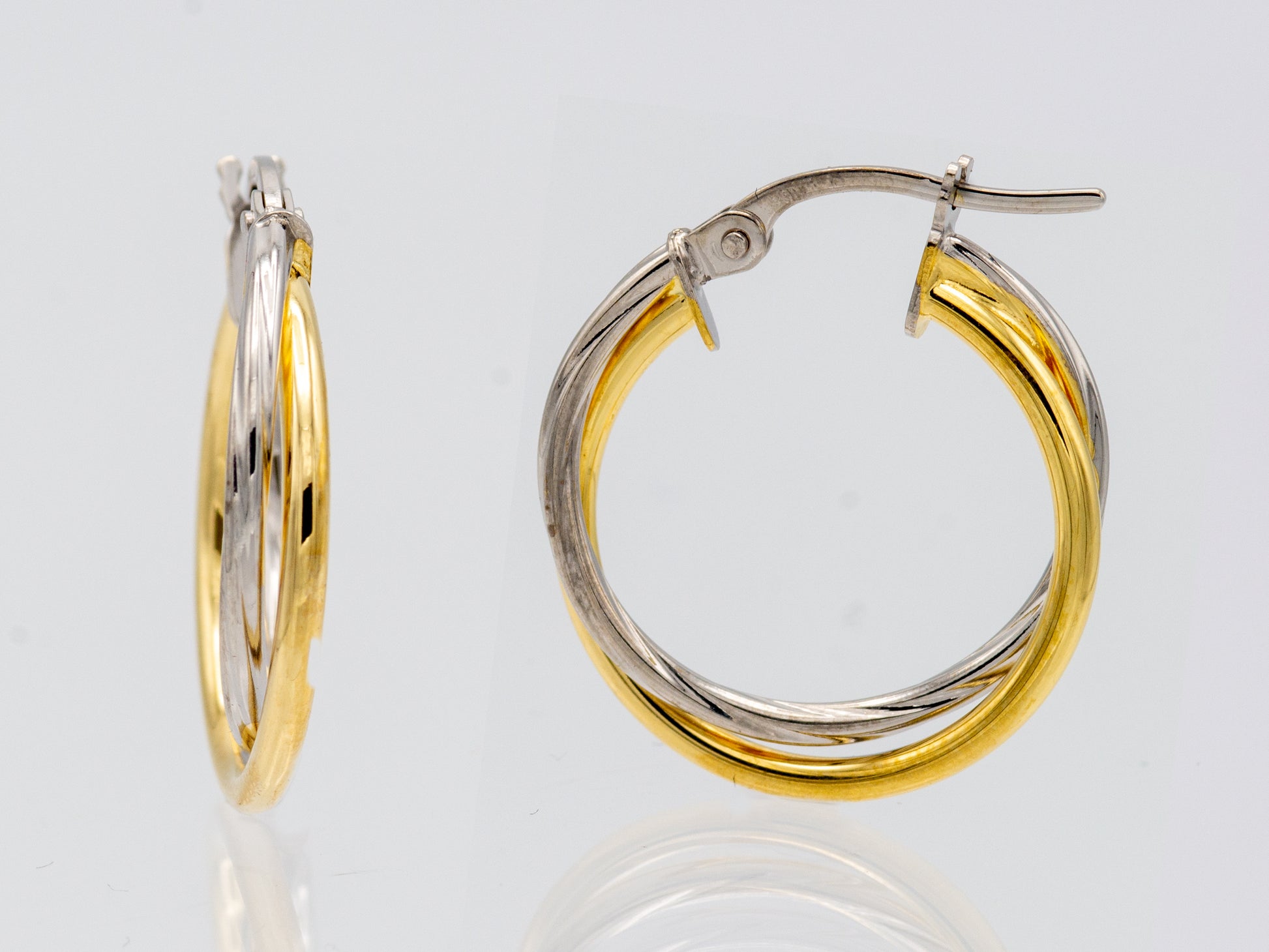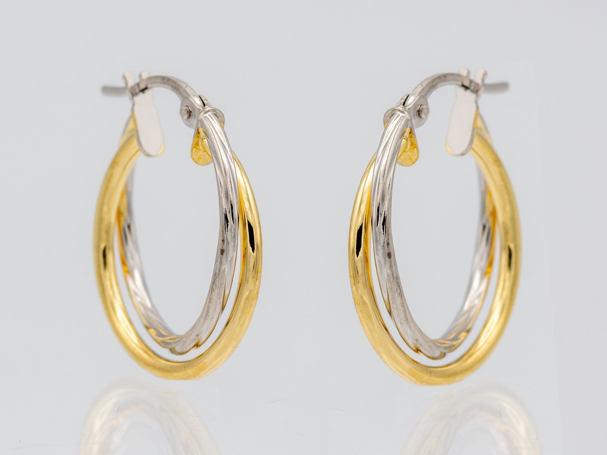 14K Solid Gold Two-Tone Double Hoop Earrings