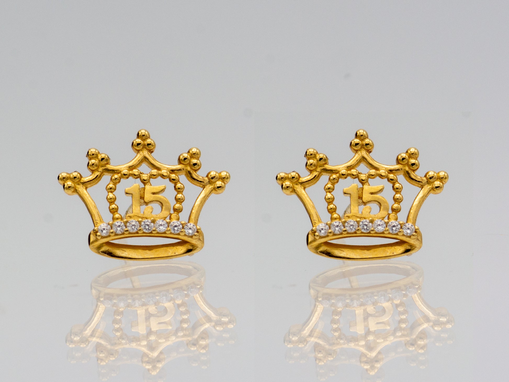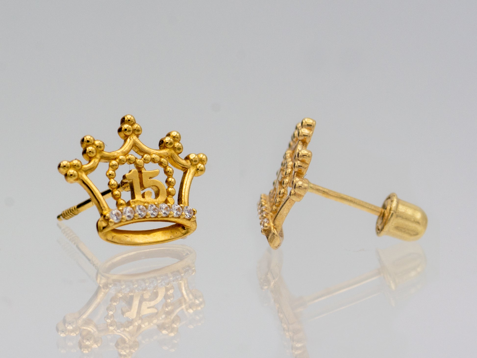 14k solid gold Años Sweet 15 Quinceanera Crown Queen stud earrings