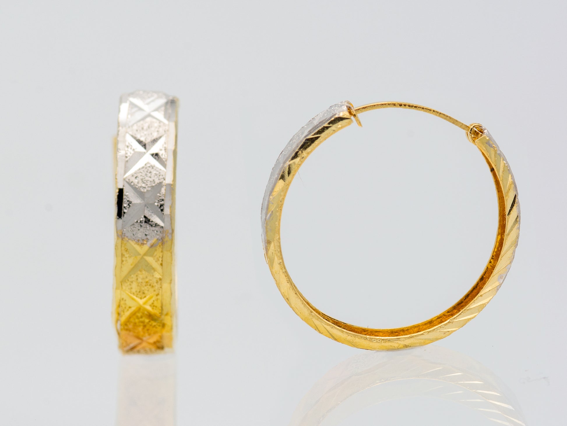 14K Solid Gold Tri color Diamond Cut Textured Hoop Earrings