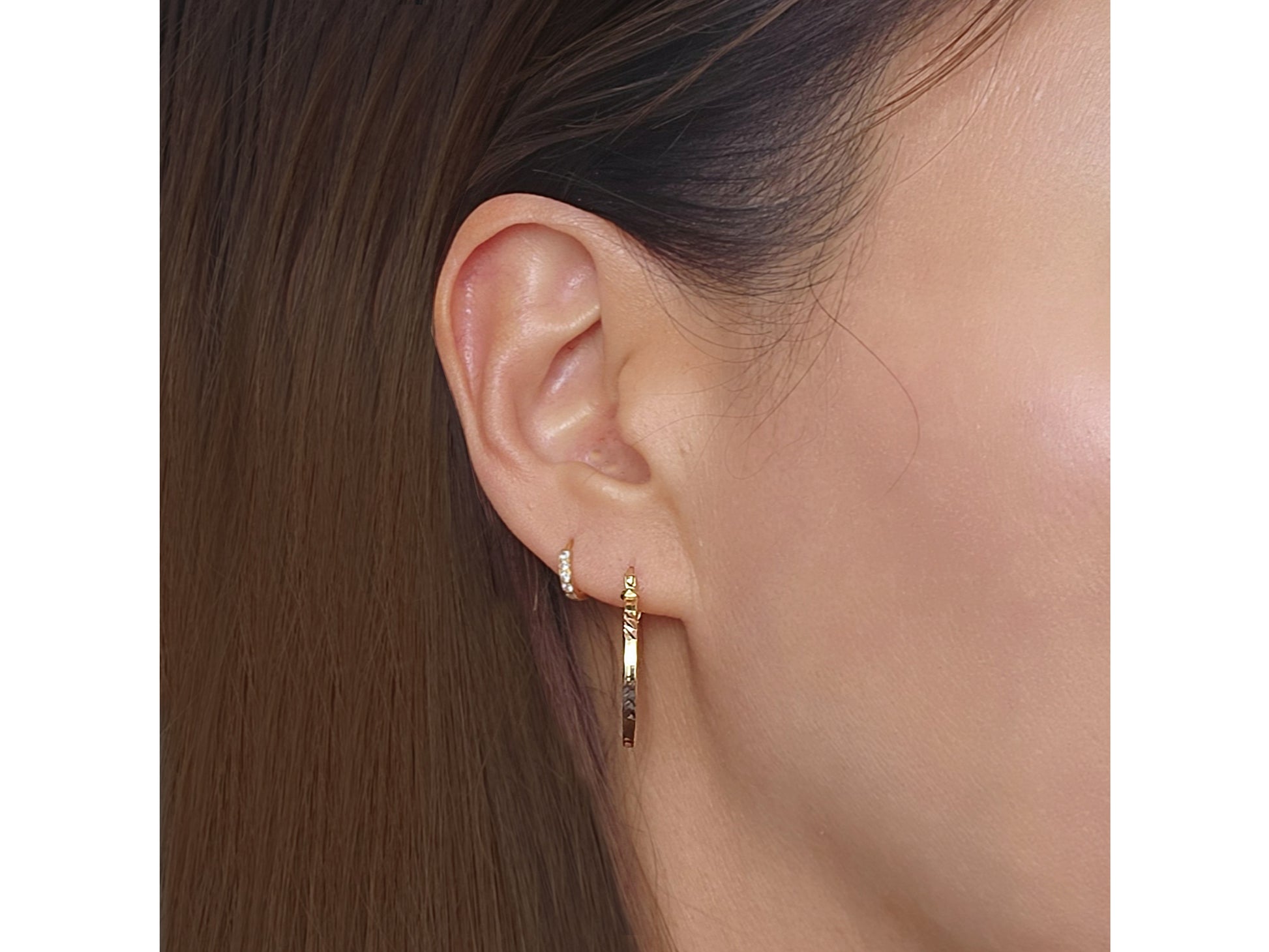 Triple the glam, triple the fun—these 14K solid gold hollow diamond-cut tri-color hoop earrings blend yellow, white, and rose gold in a high-polished finish for a radiant shine. Versatile and trendy, they’re perfect for everyday wear and a stylish choice for both women and men, taking any outfit up a notch.