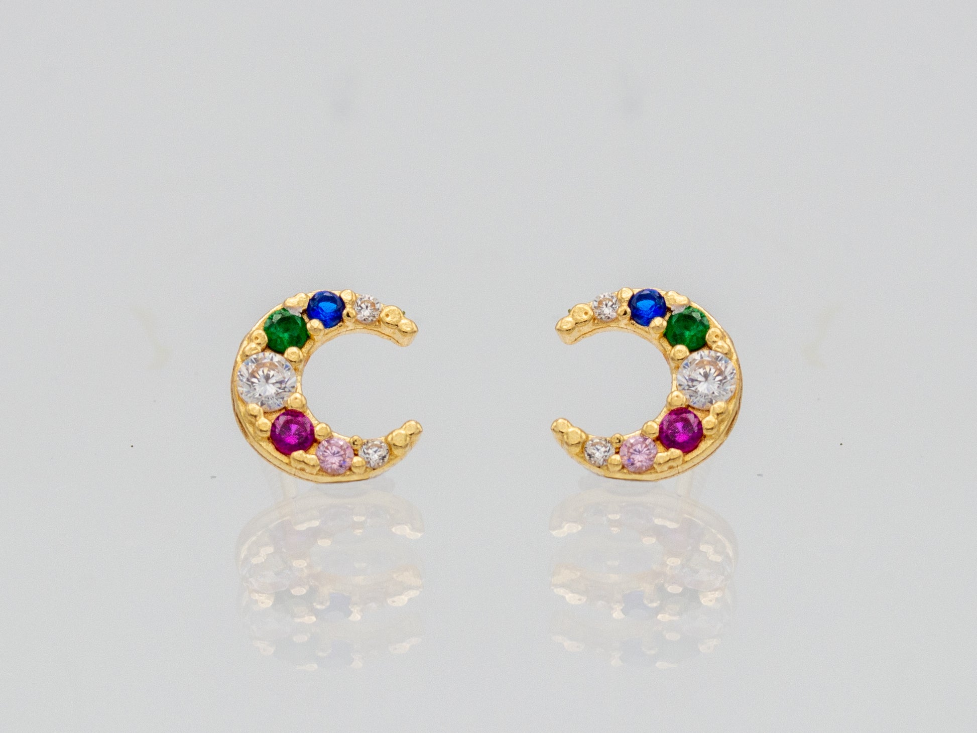 These 14k solid gold earrings feature a stylish crescent moon shape adorned with vibrant rainbow stones, symbolizing new beginnings, a fresh start, and rebirth. With secure screw back closures, they make a meaningful and elegant gift for any occasion—whether it’s a birthday, Valentine’s Day, engagement, promise, or holiday like Christmas.