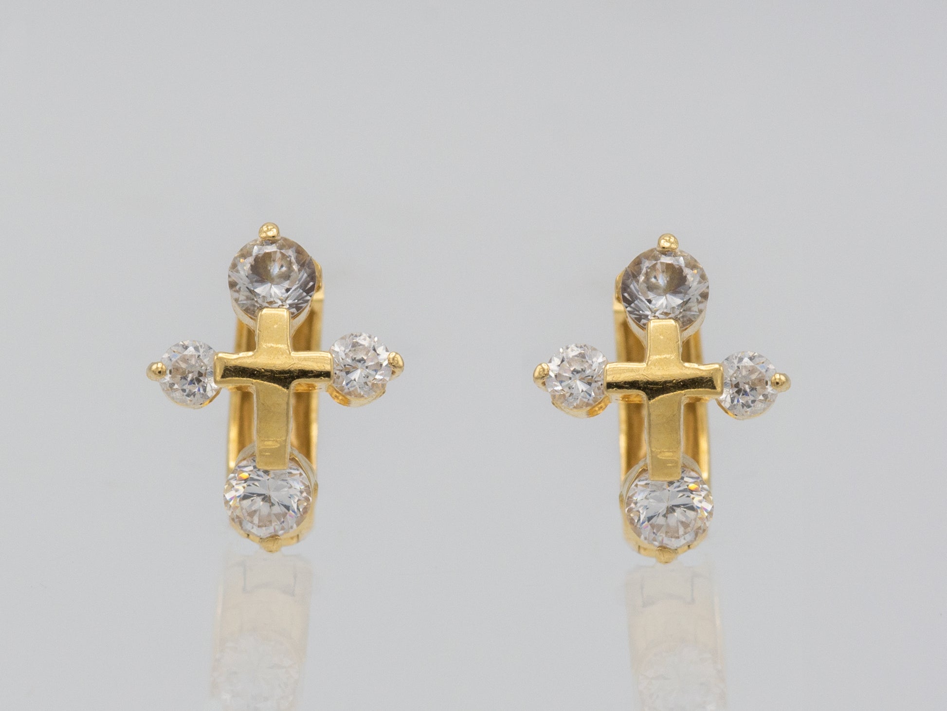 Crafted in 14K solid gold, these dainty cross-shaped huggie hoop earrings feature four sparkling cubic zirconia stones, combining subtle shine with meaningful style. Their minimalist design adds a touch of faith-inspired elegance, making them a standout piece despite their delicate size. A timeless fusion of two beloved styles—cross and huggie hoops—these earrings are a perfect gift for anyone who values faith with a modern edge.
