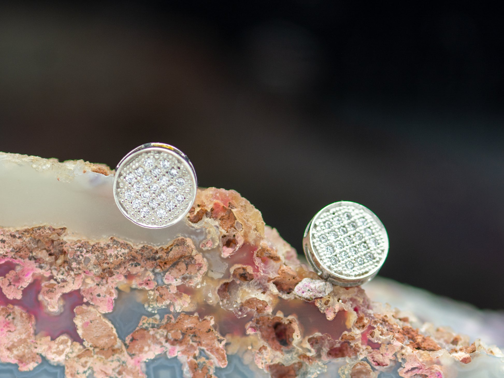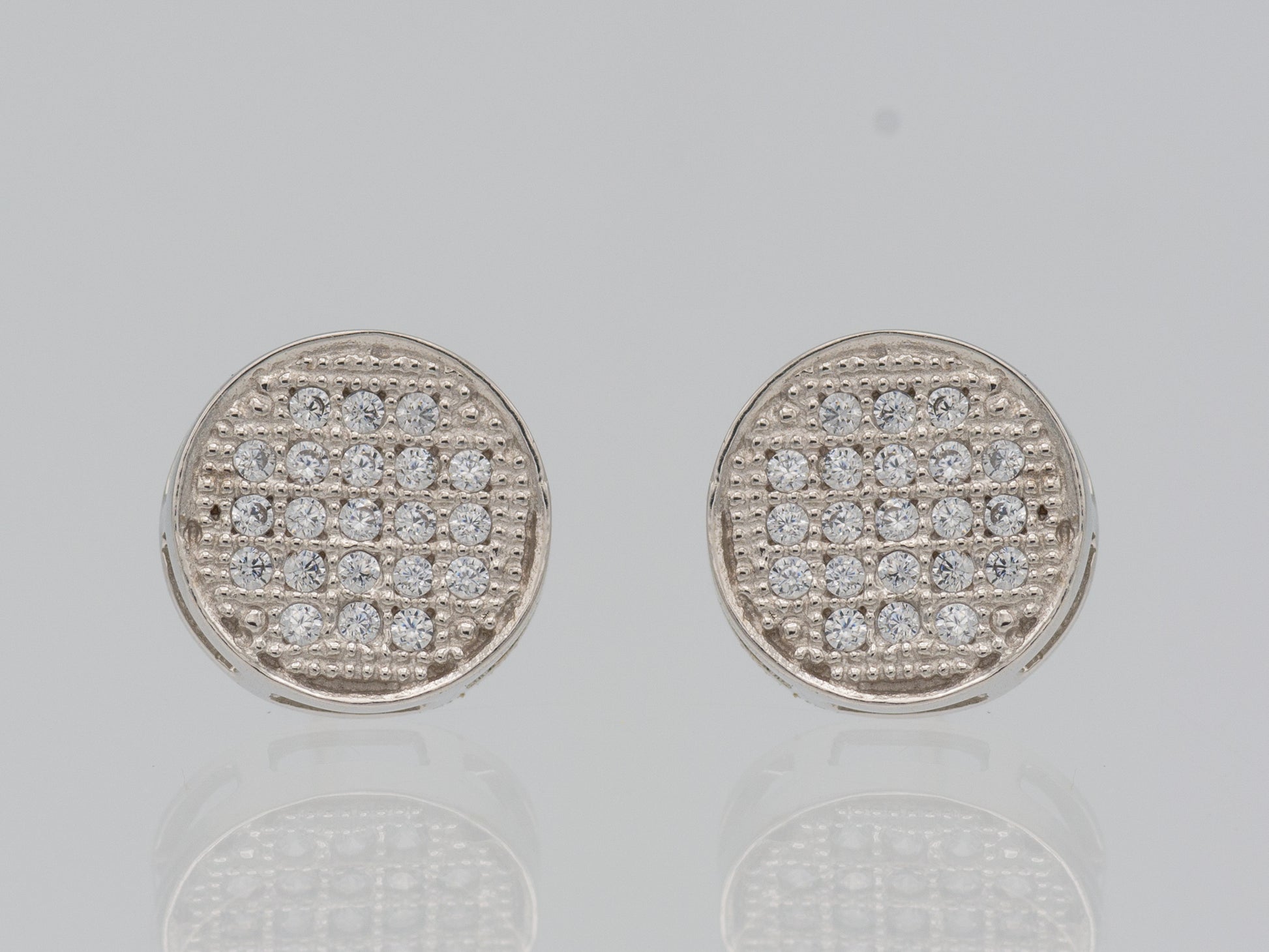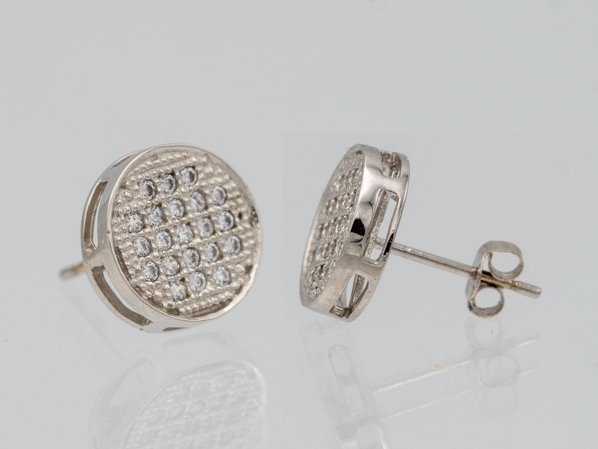 14k solid White gold Round simulated Diamond Circle Shape Iced Stud Earring