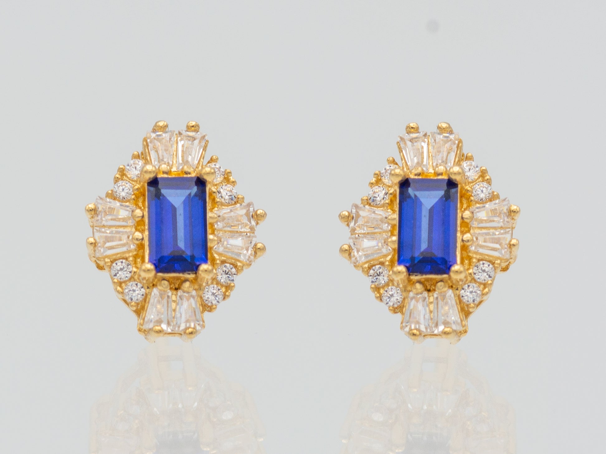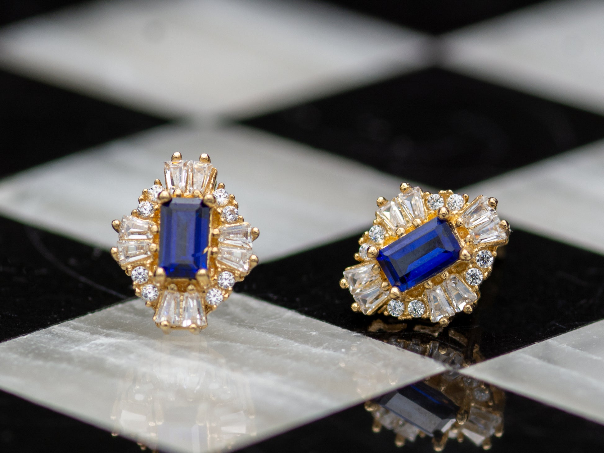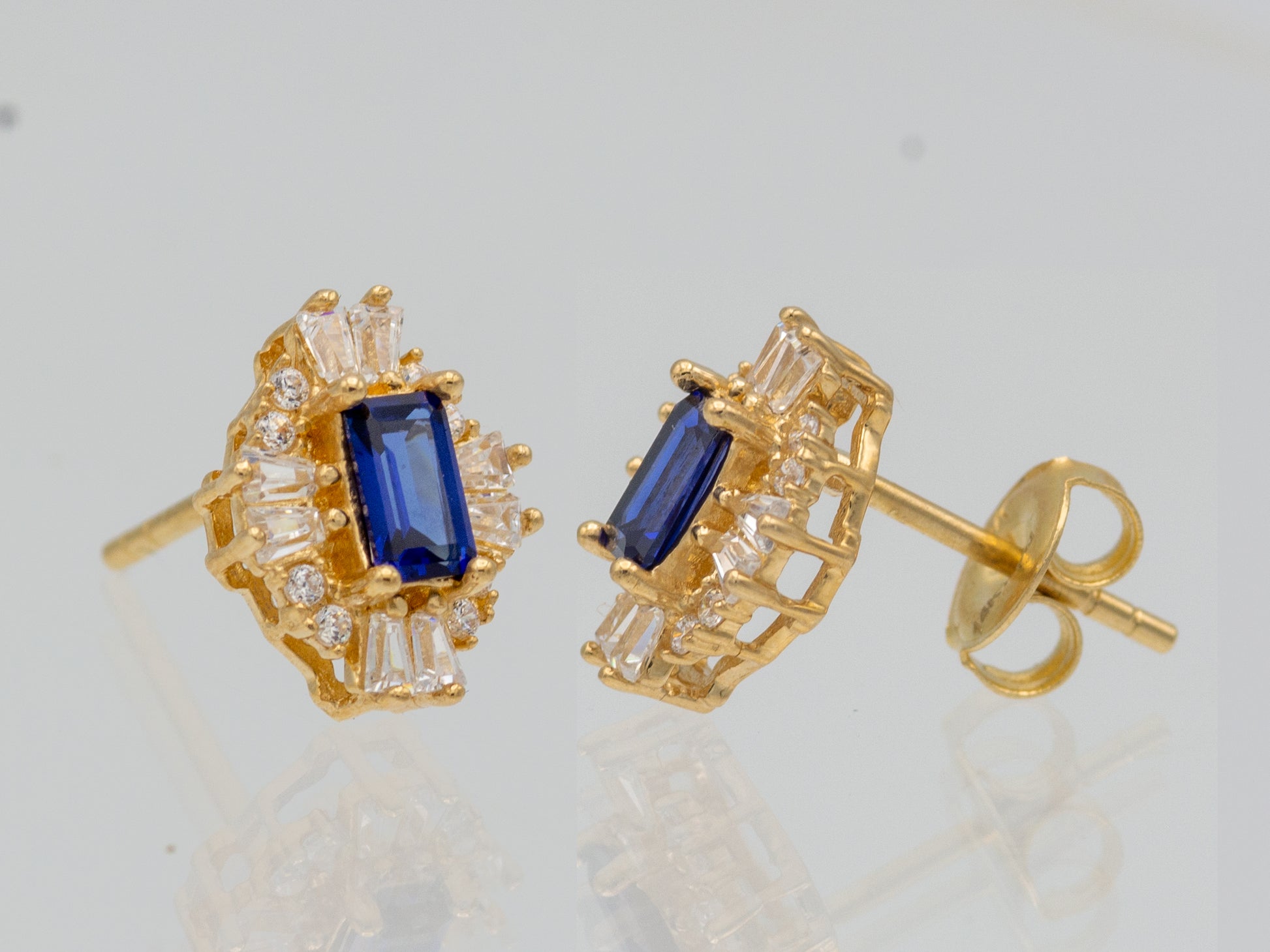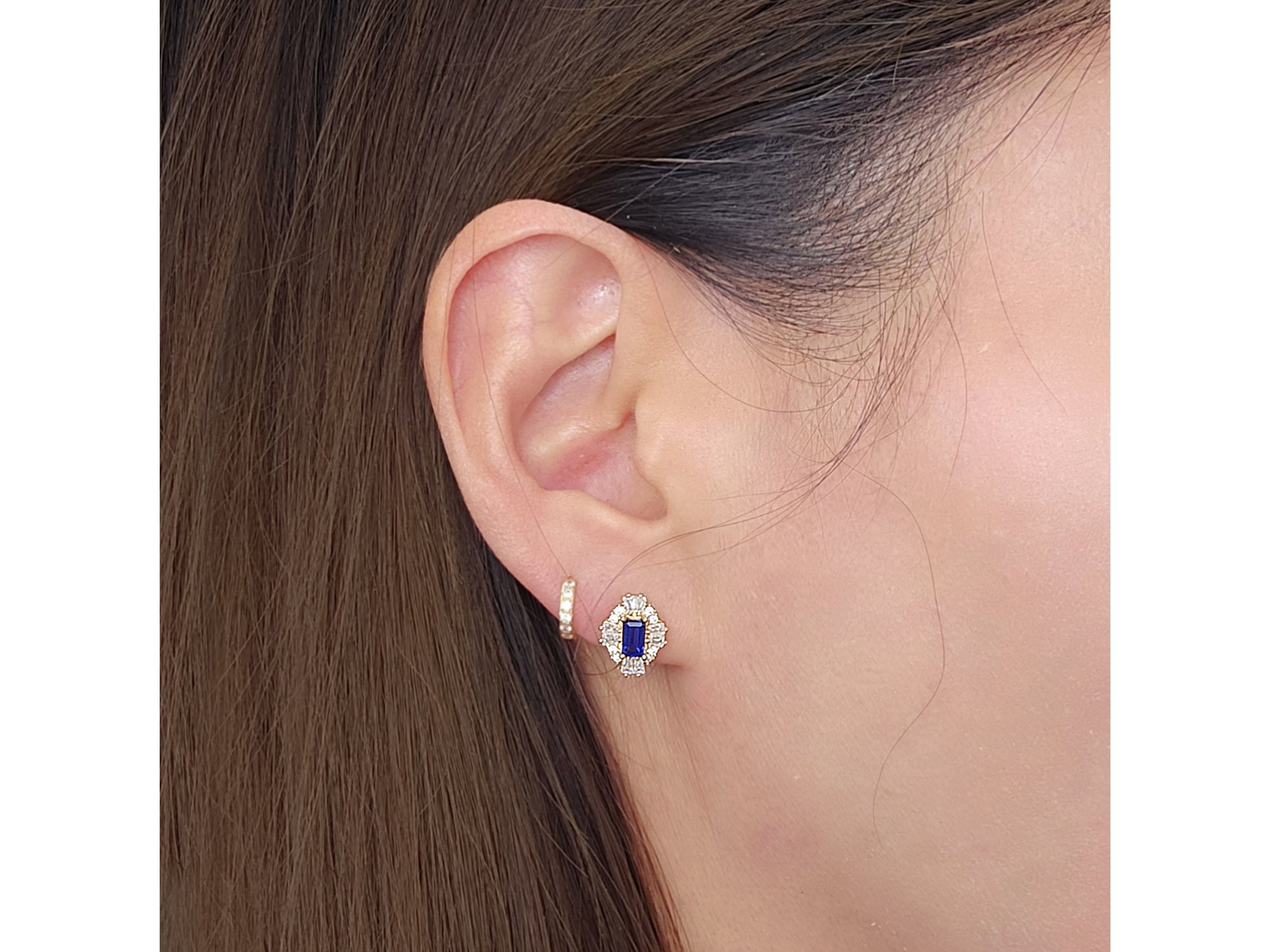 Crafted from 14kt solid yellow gold and featuring a stunning synthetic sapphire surrounded by crystal-clear cubic zirconia—delivering sparkling beauty and a timeless touch of personal elegance. Perfect gift for her, Express your love and affection with these glamorous entourage earrings.