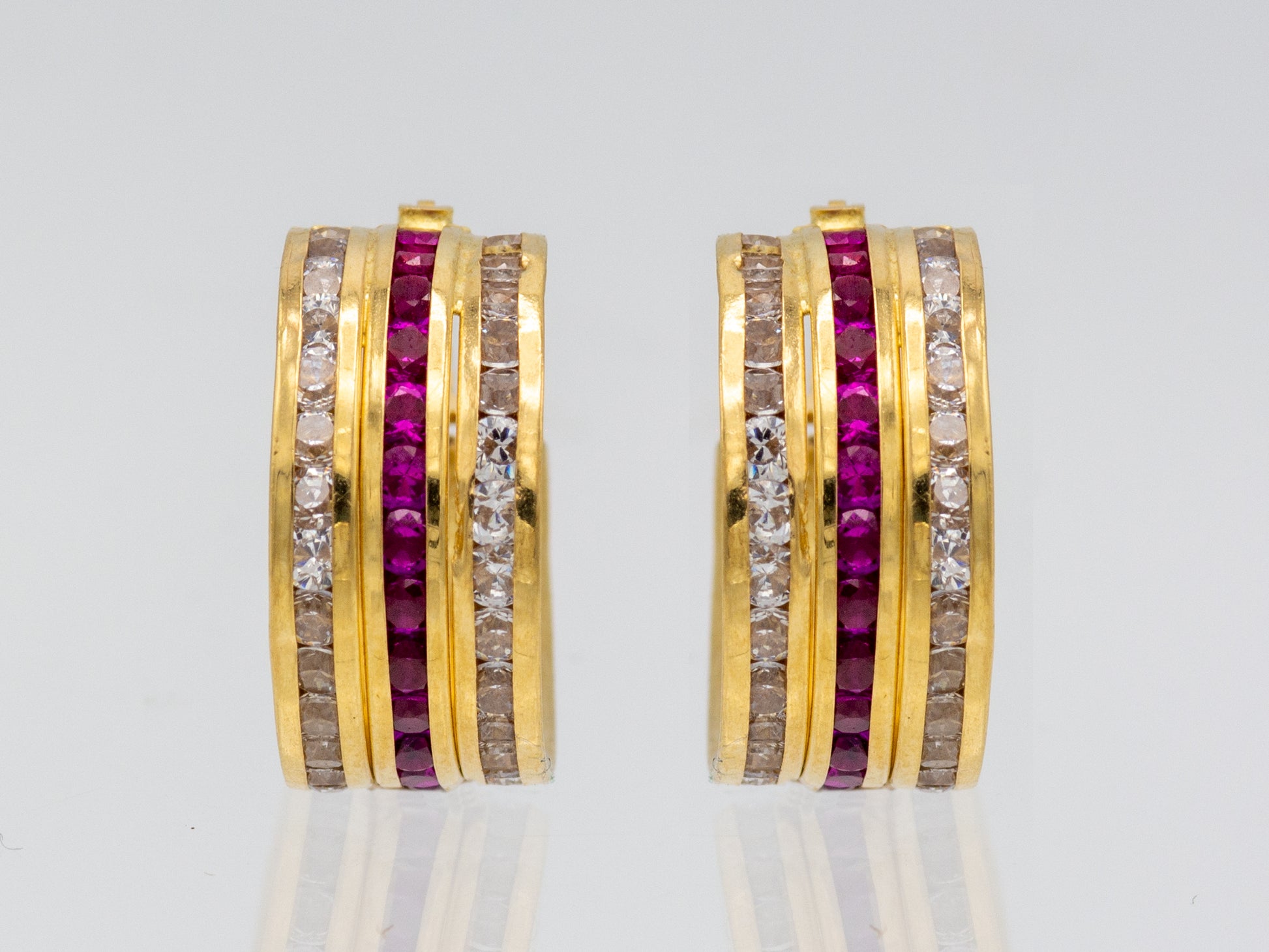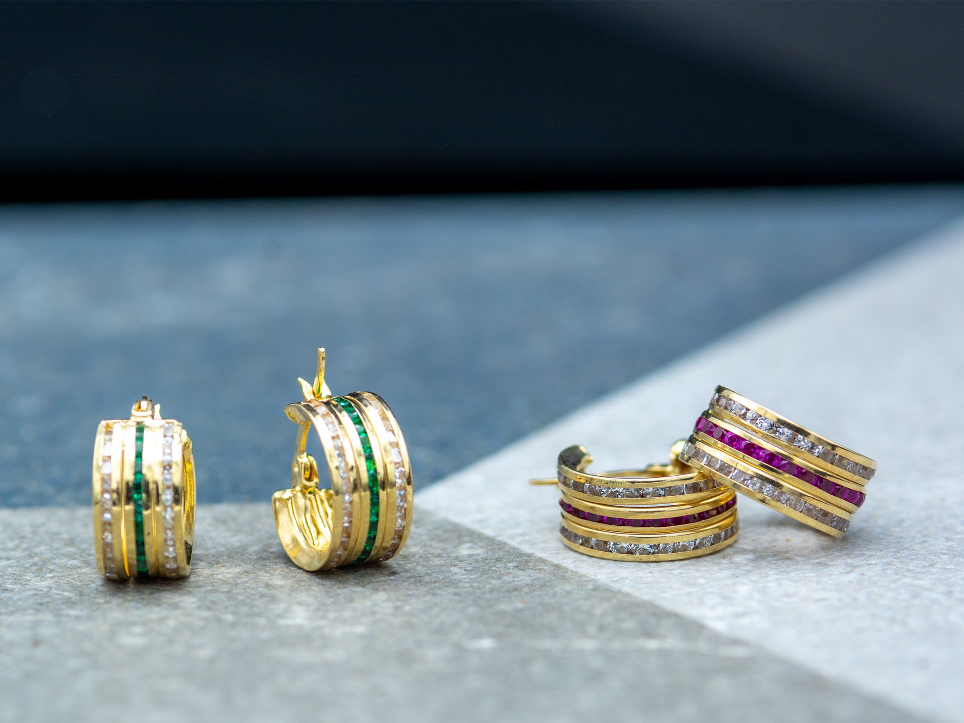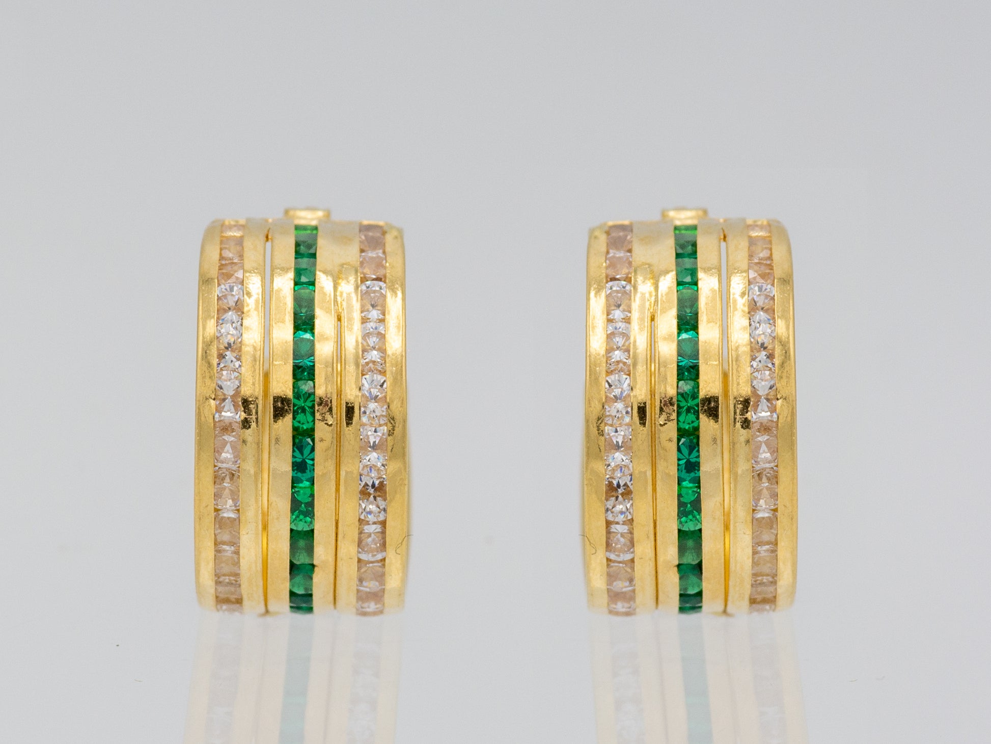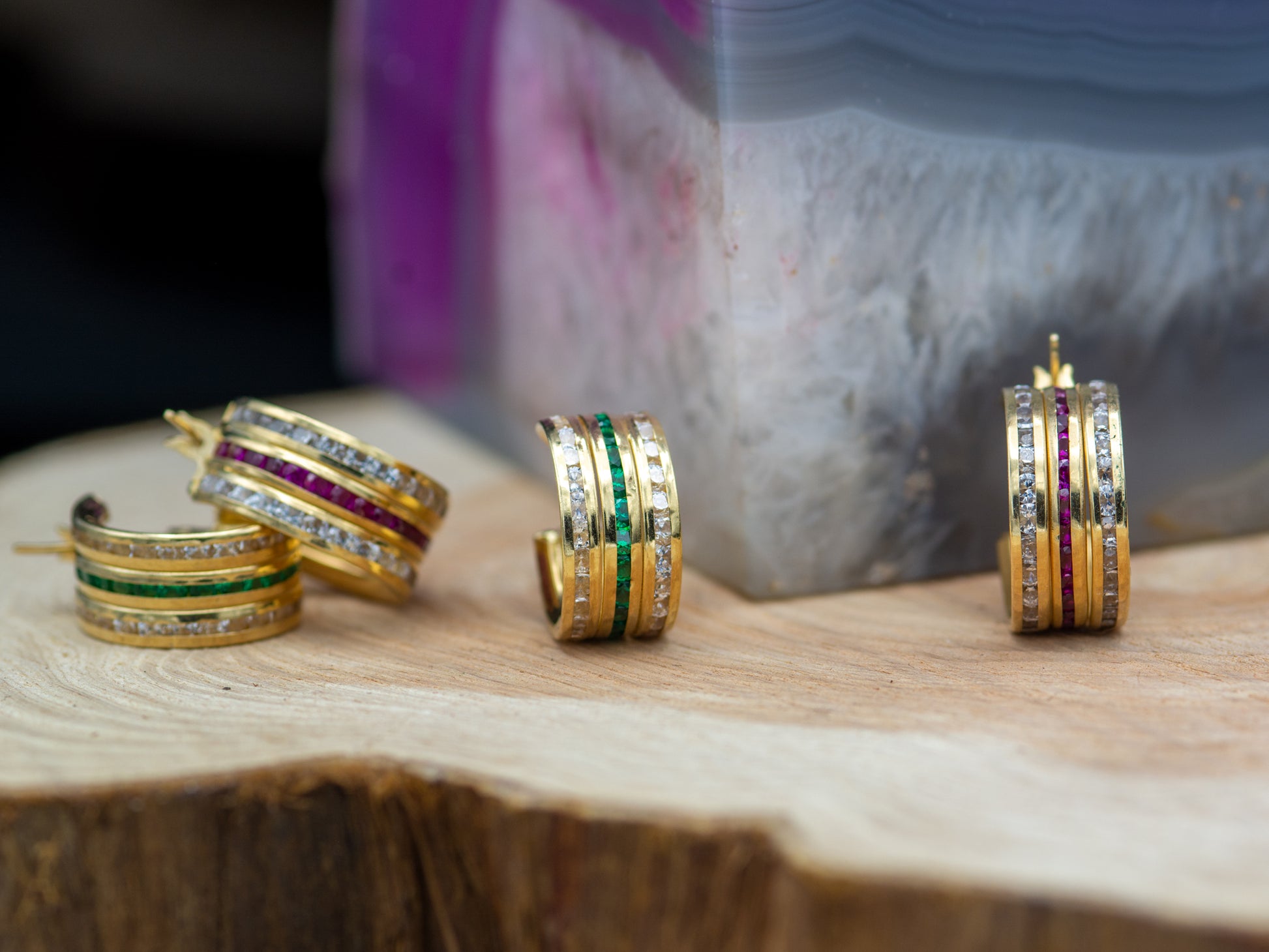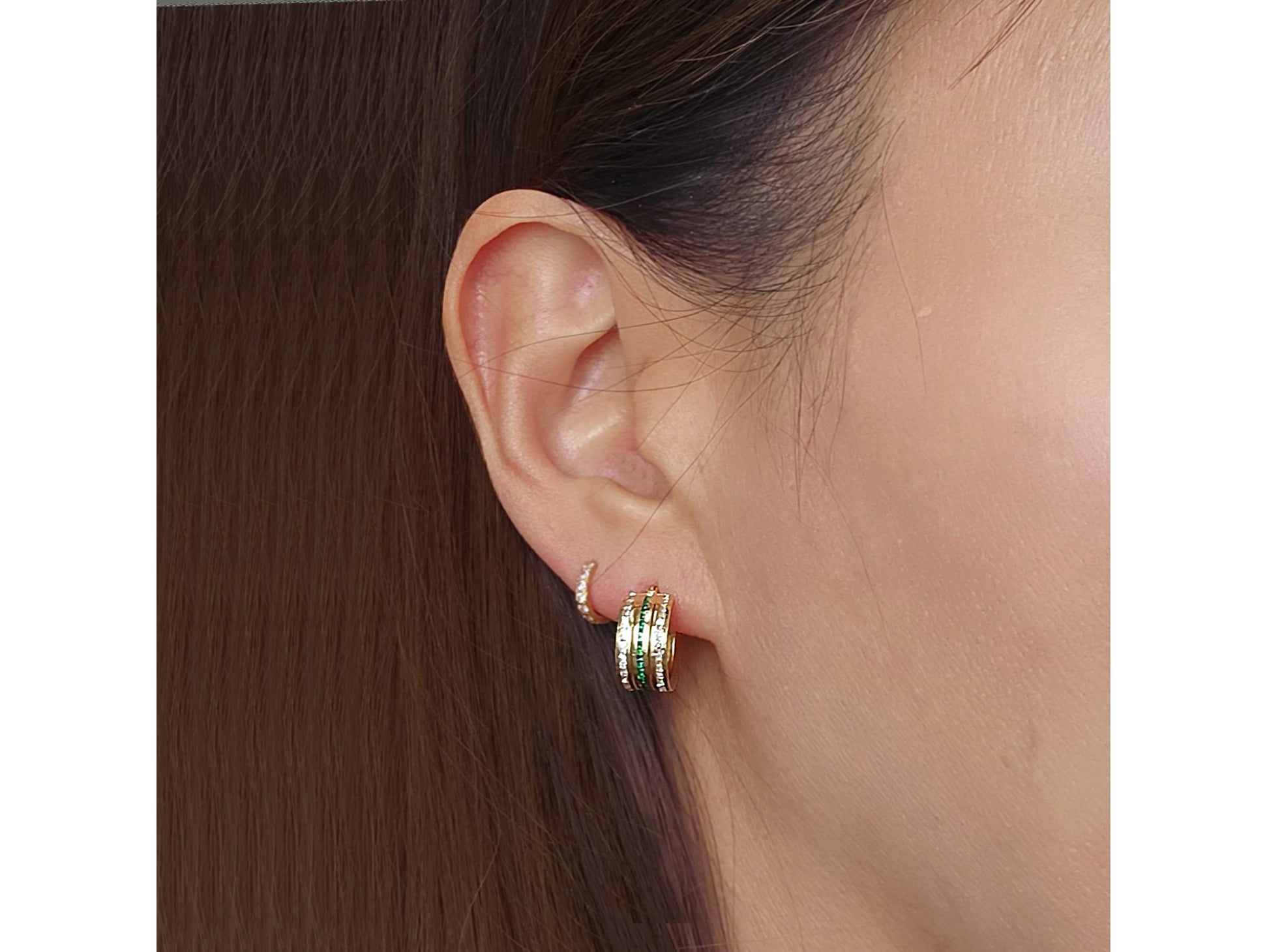 14k solid gold simulated Emerald Ruby Diamond Huggies earring