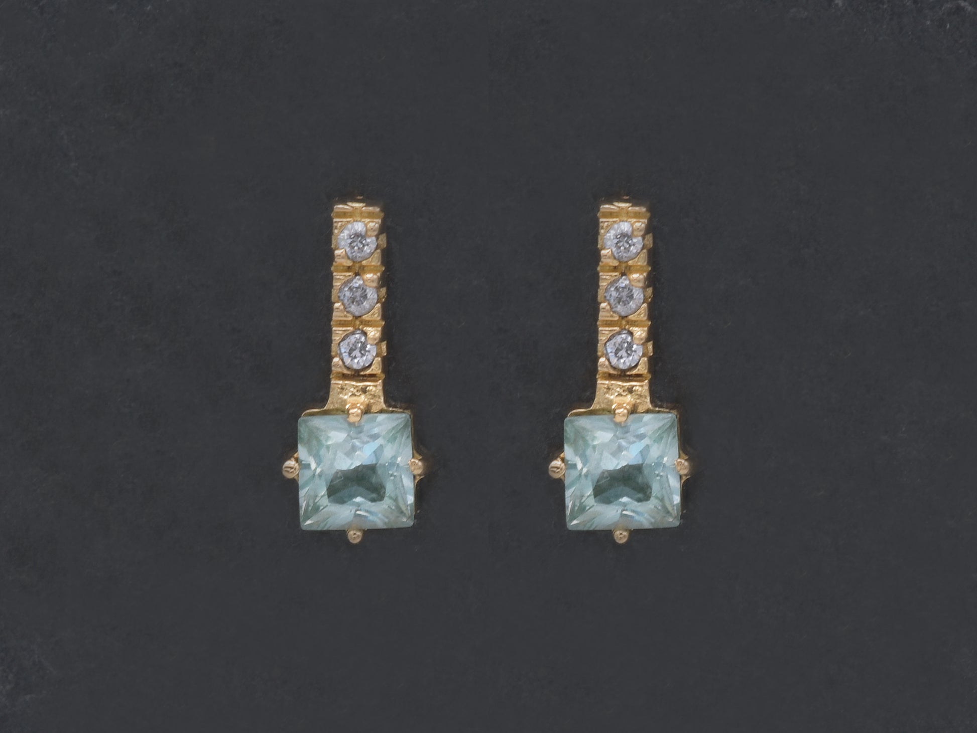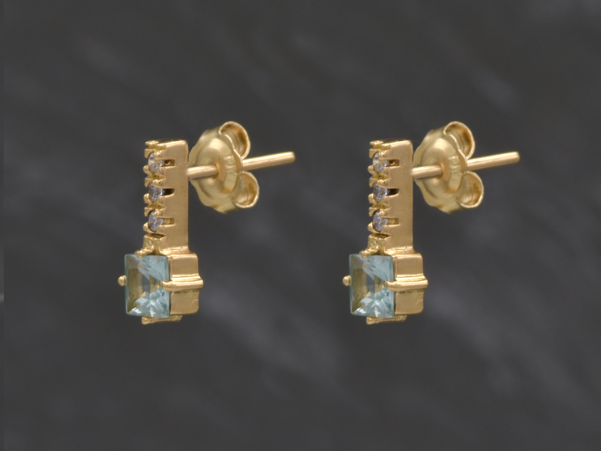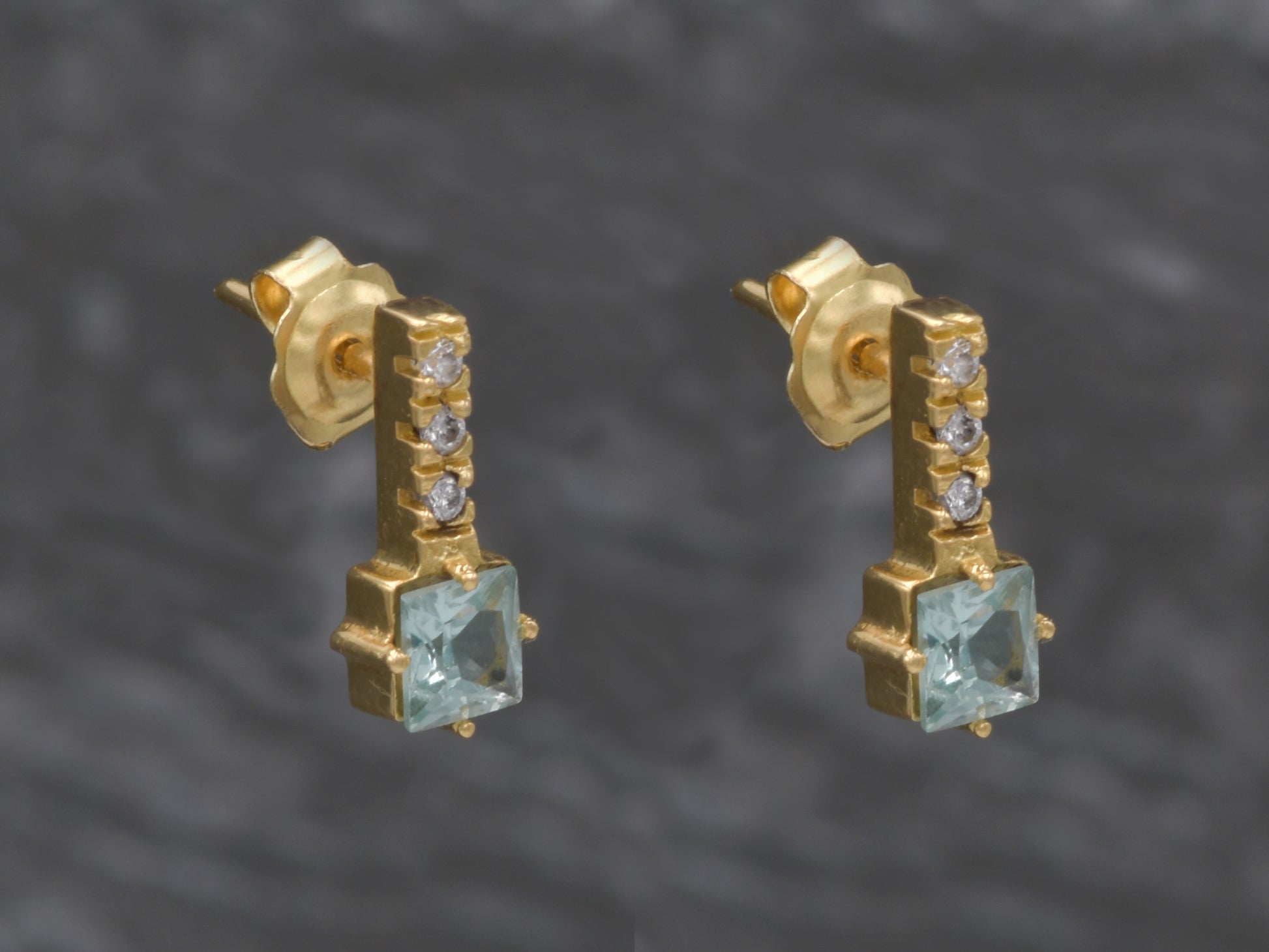 4k solid gold post drop earring with Aquamarine gemstone1