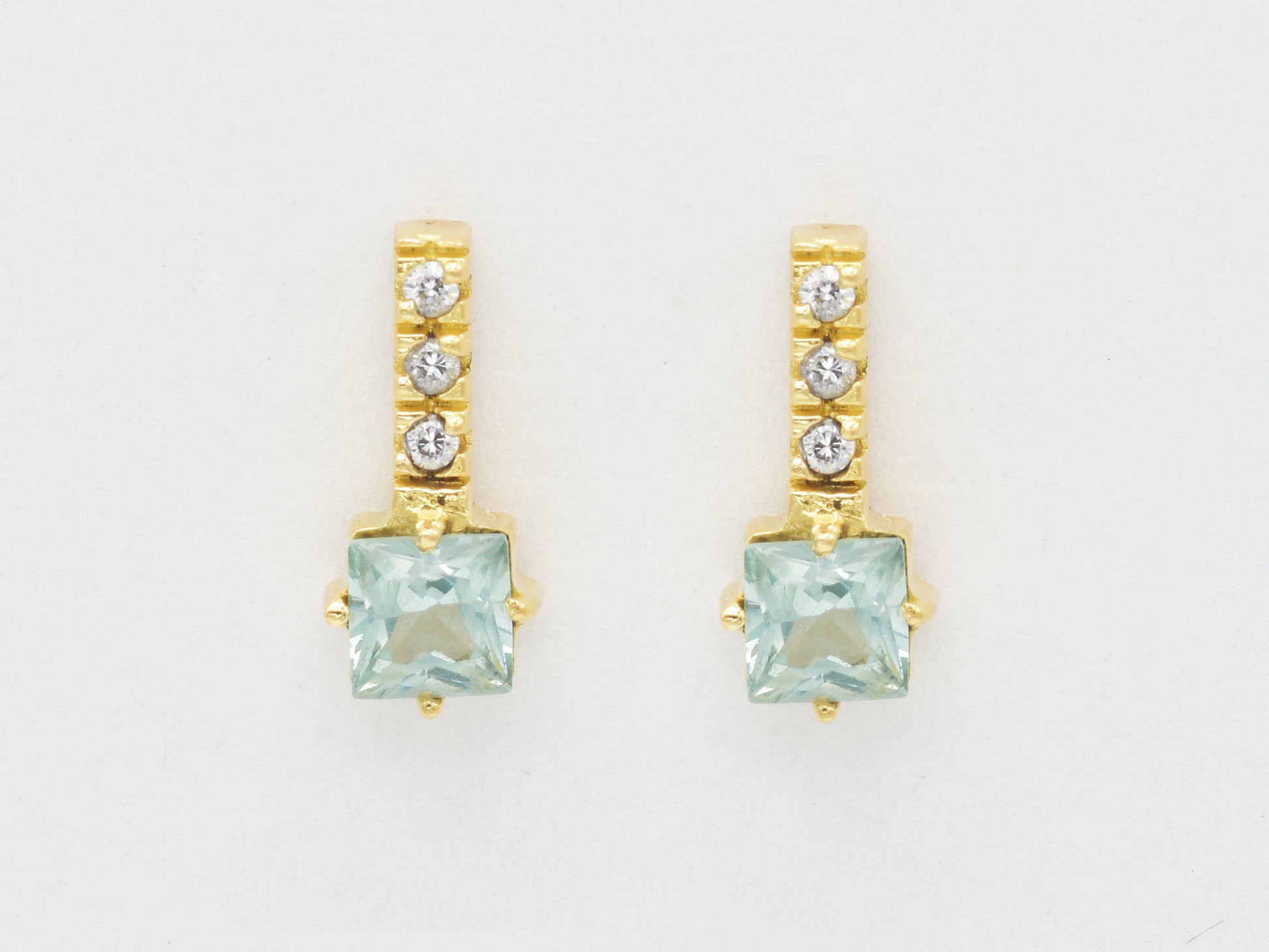 14k solid gold post drop earring with Aquamarine with White Cubic Zirconia gemstone, Beautiful and meaningful Gift for All Occasion