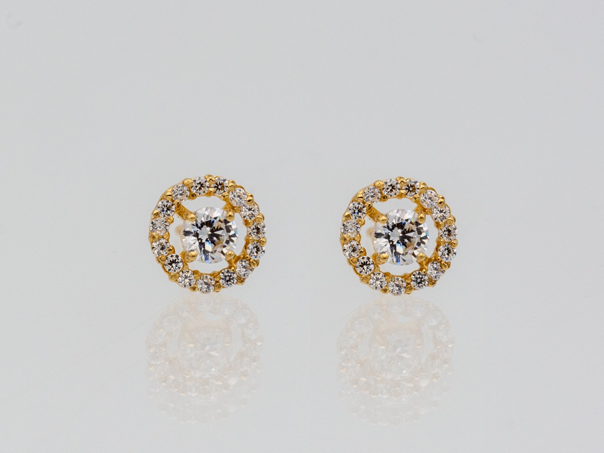 14k solid gold round halo CZ stud earrings