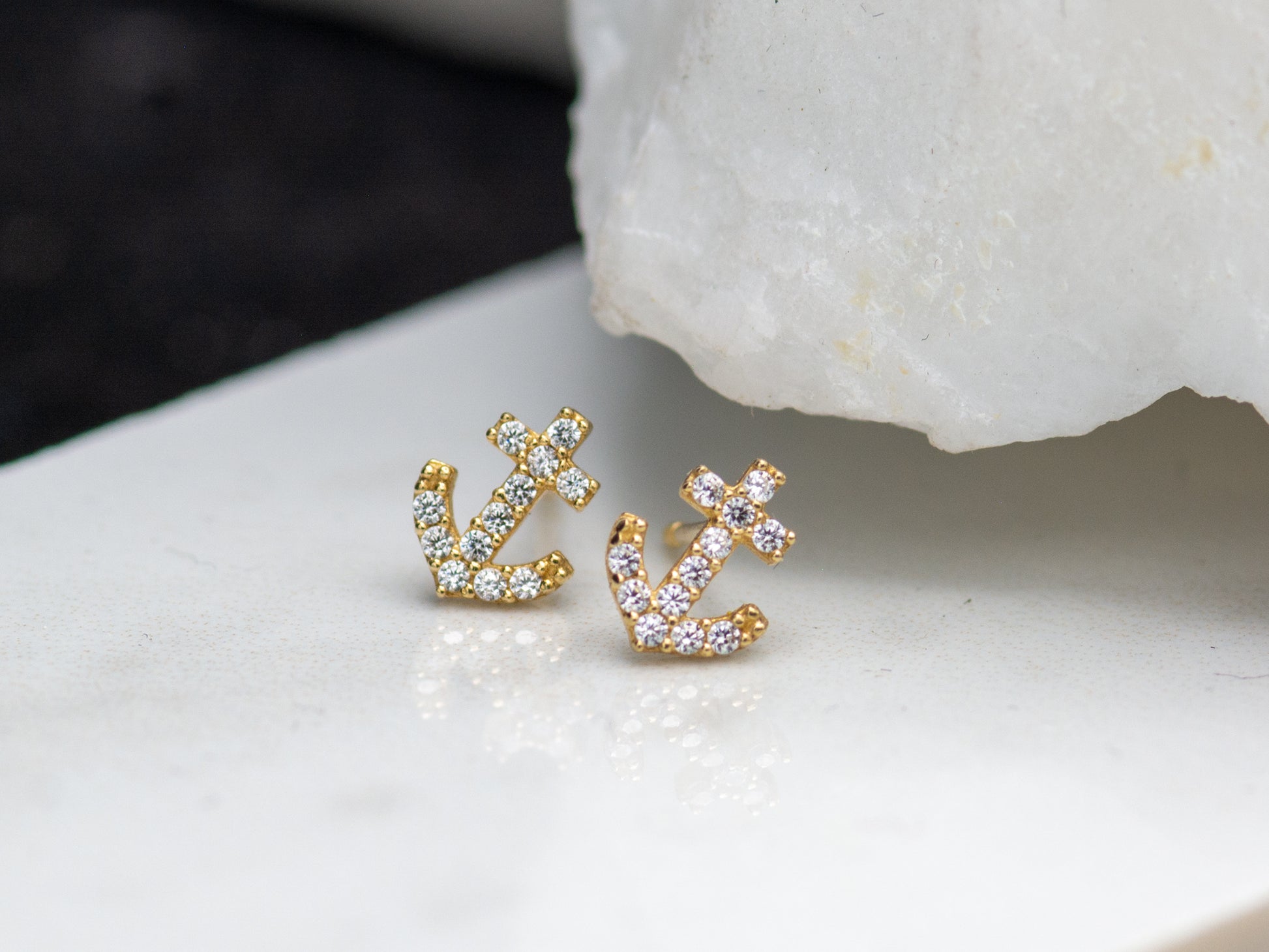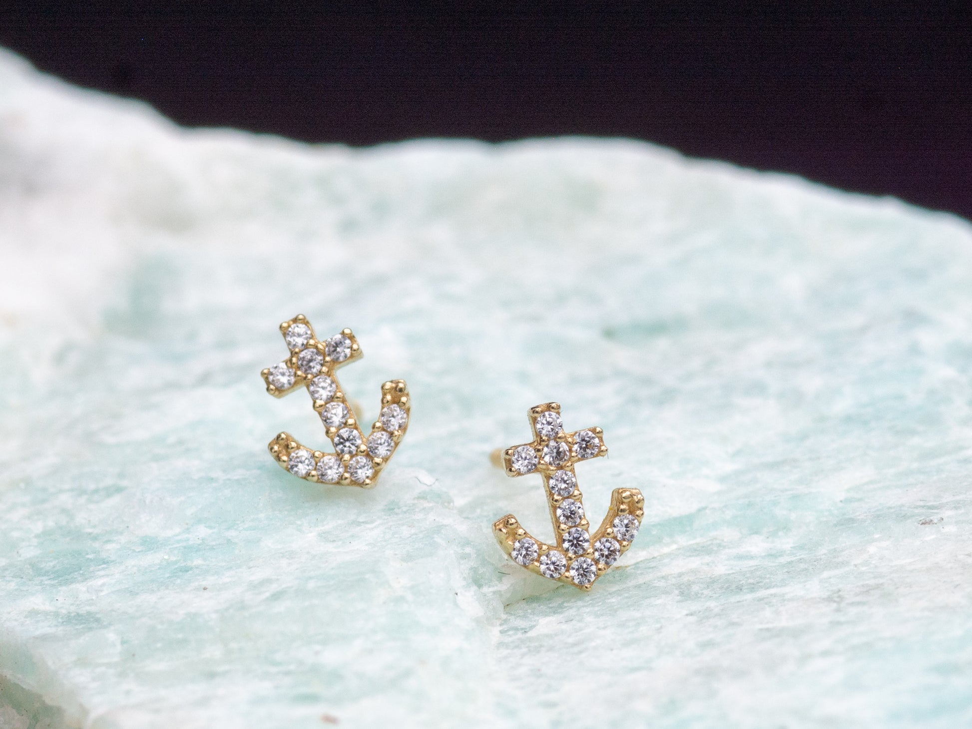 Crafted in 14k solid gold, these anchor stud earrings are the perfect accessory for any ocean lover—ideal for beach vacations, honeymoons, or simply adding a dash of nautical charm to any outfit with their simple, screw-back design