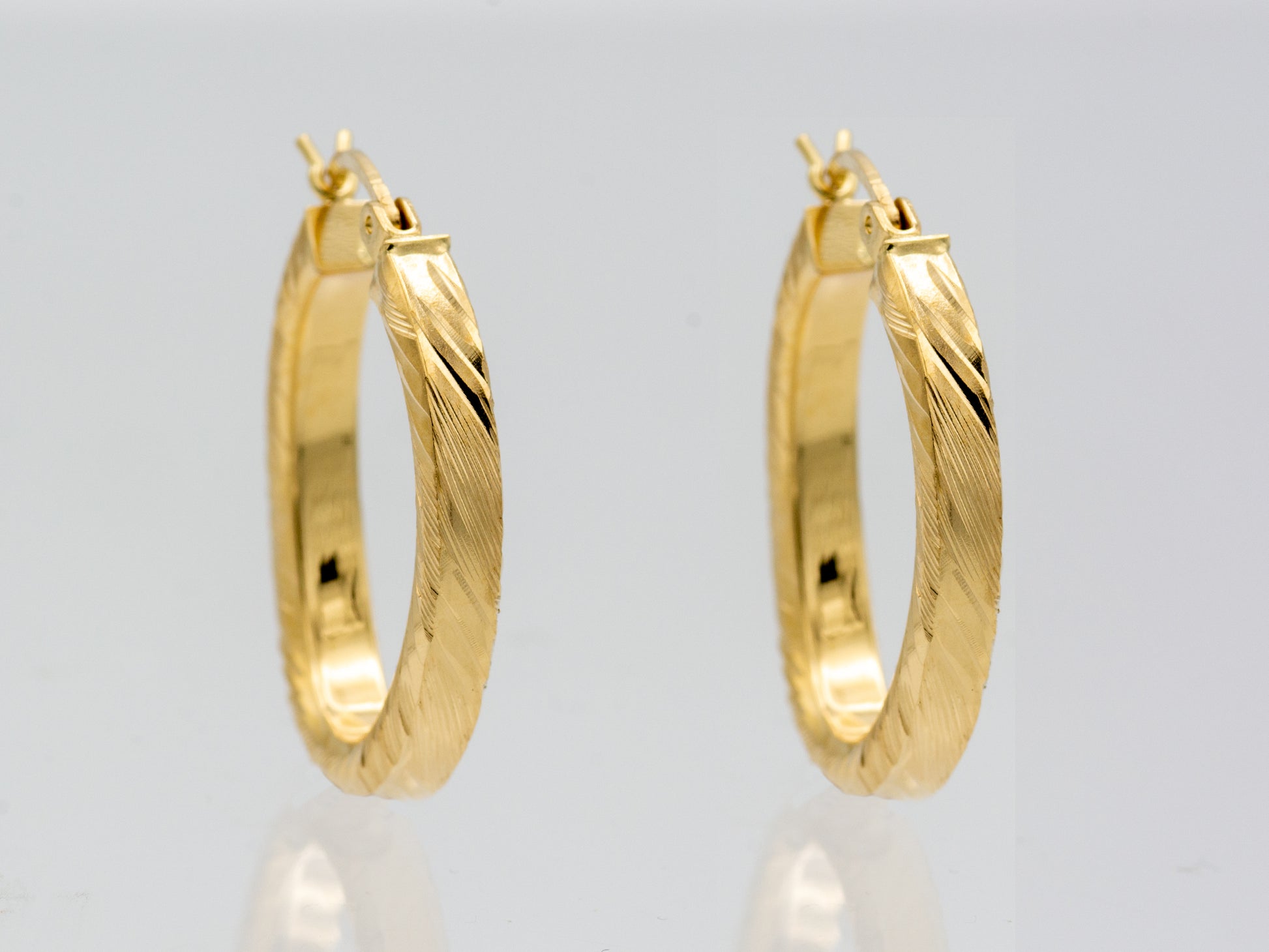 14K Solid Gold Hollow Textured Oval Hoops earrings