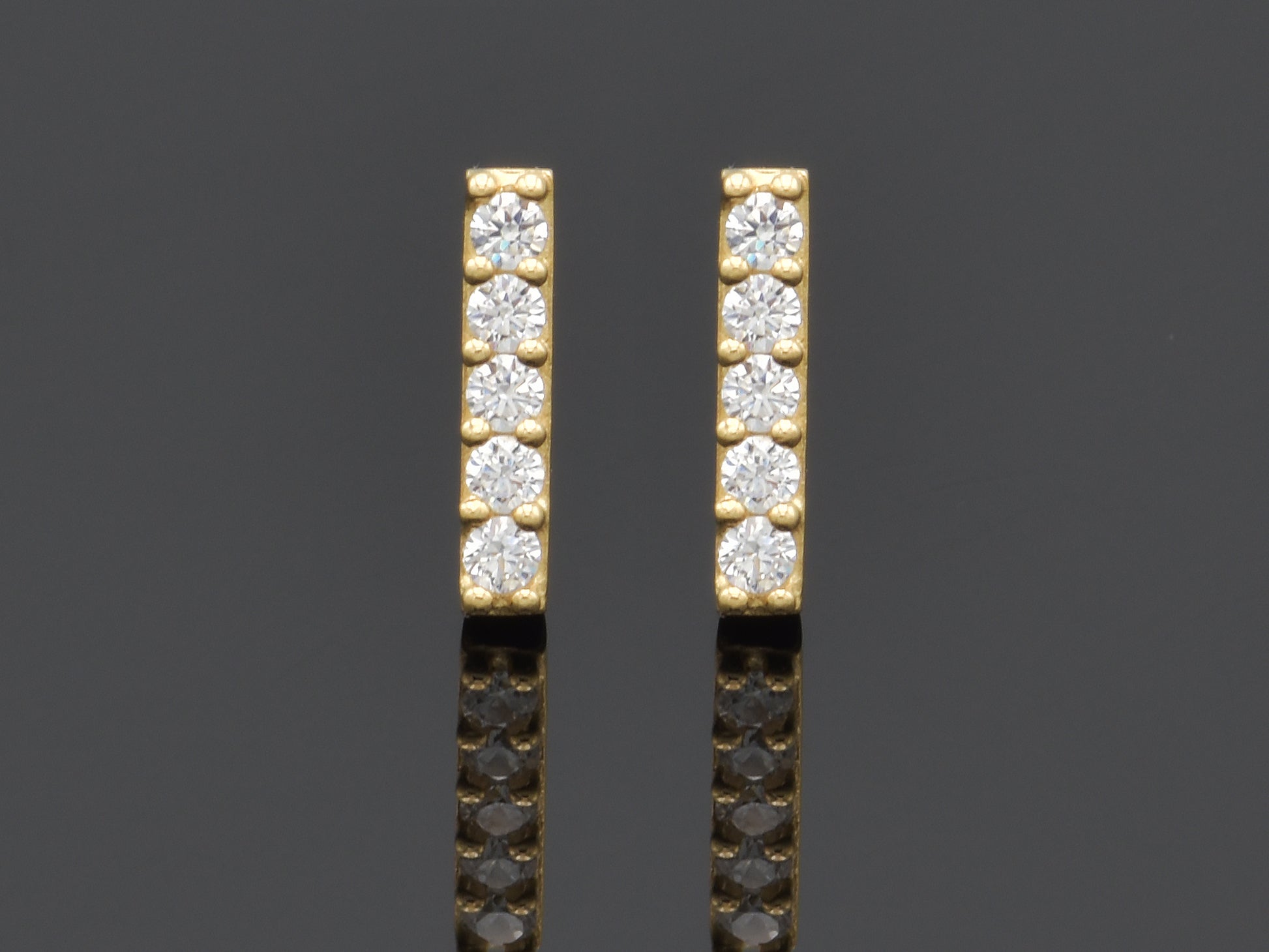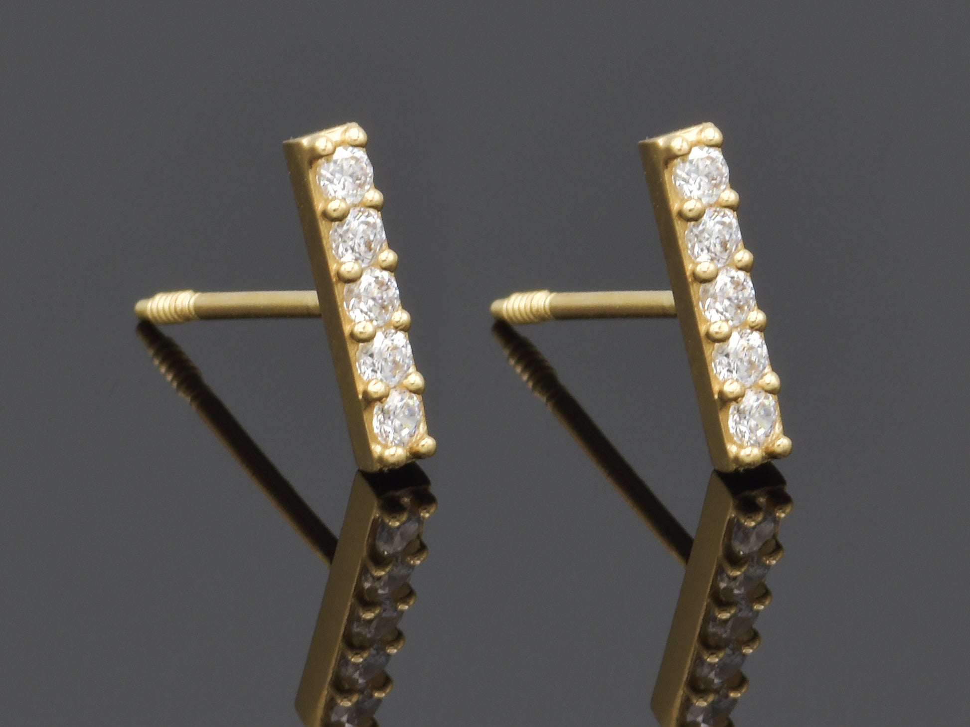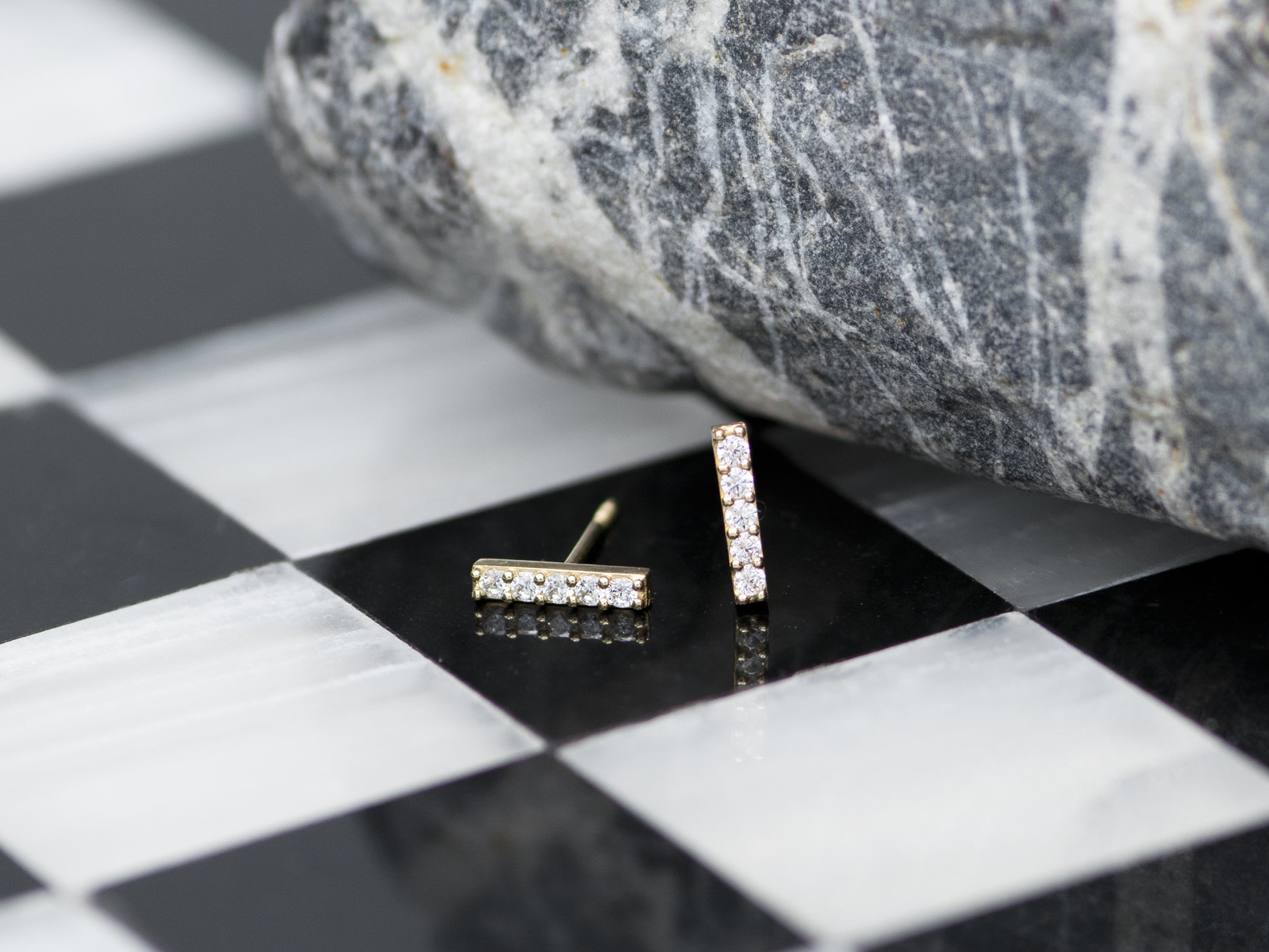 Minimalist gold bar studs with simulated diamond gives you that extra sparkle that are perfect with any outfit! Wear these studs from a day at work to a night out with the girls they seriously go with everything.