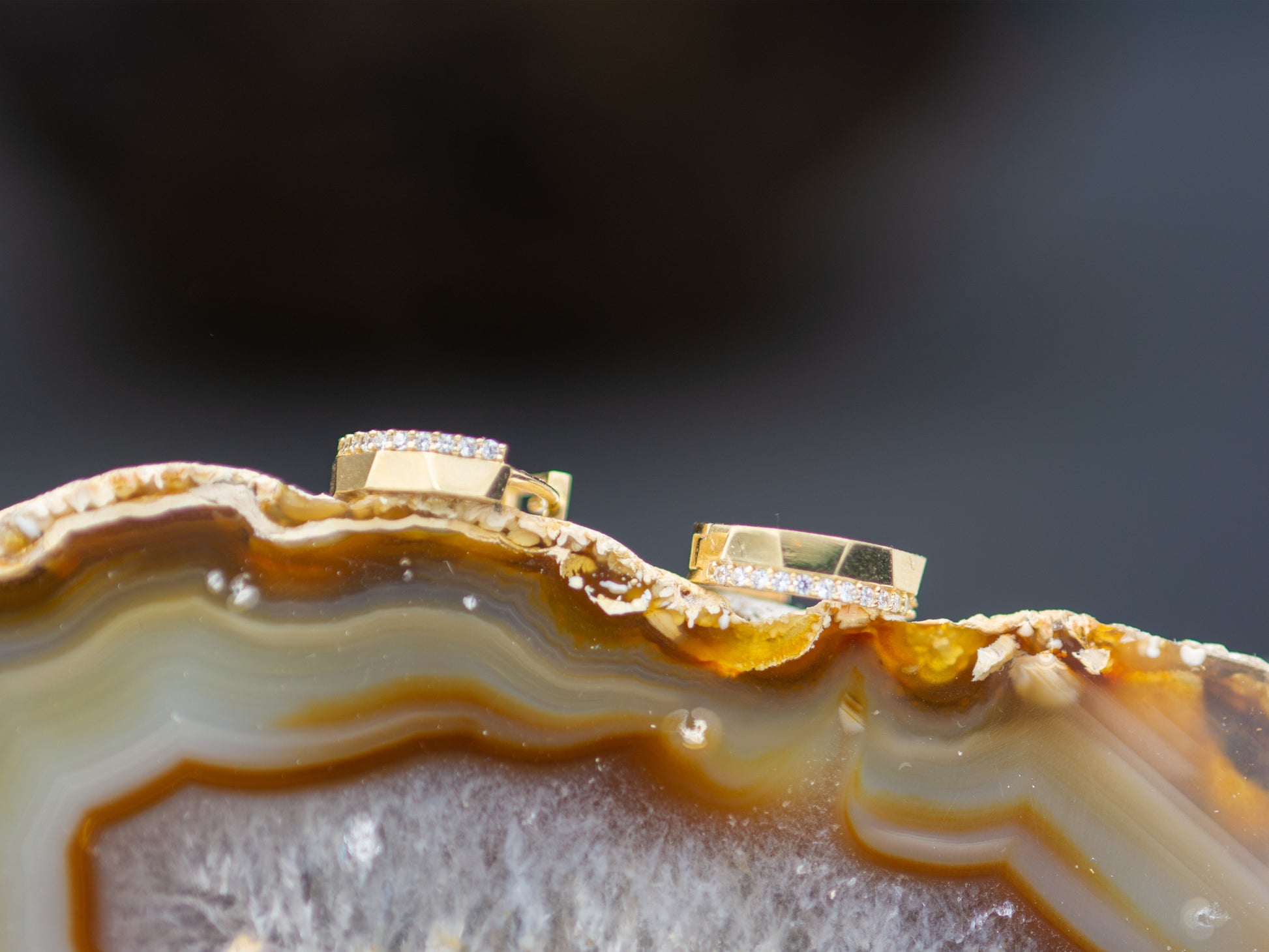 14K Solid Gold Pavé Hoop Huggies Earrings