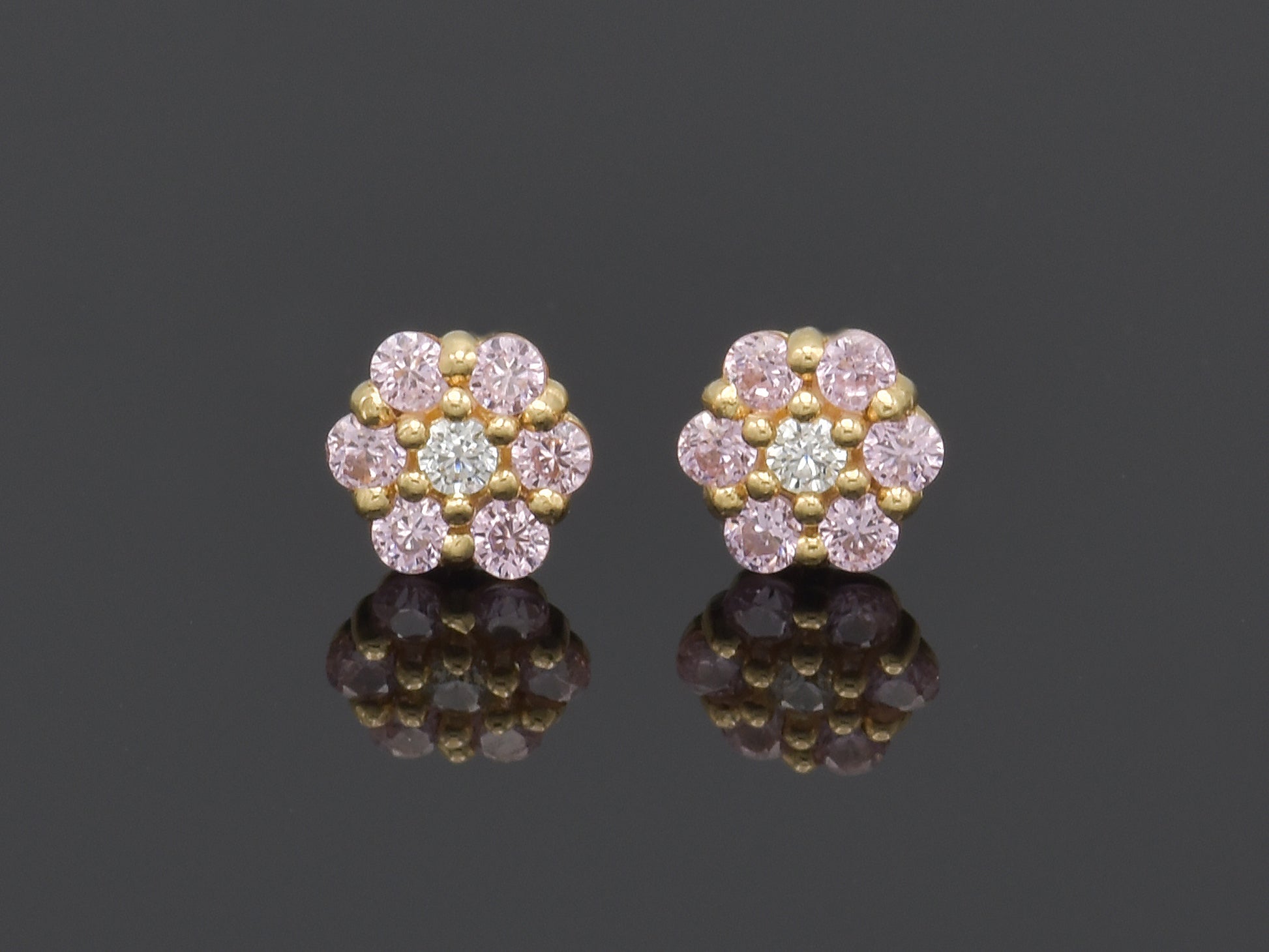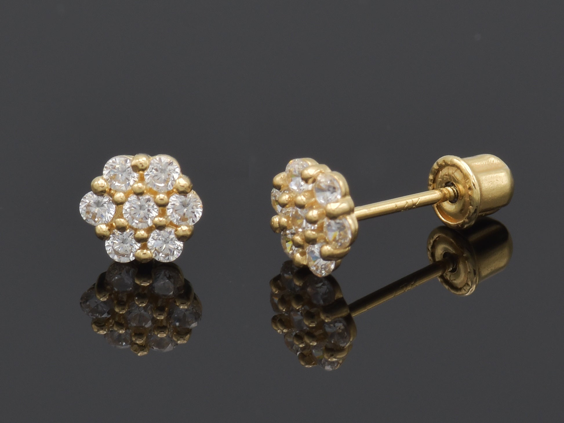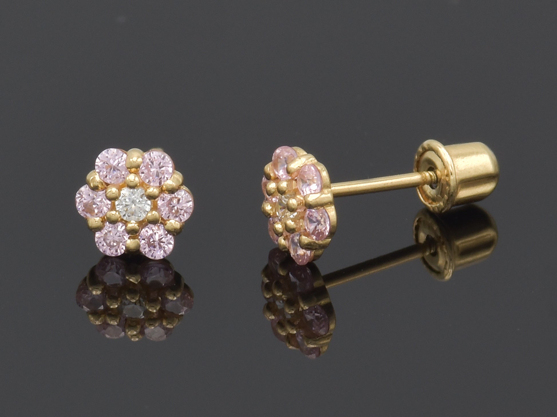 Tiny Floral post earring with screw back for extra security is consist of 14K solid gold with synthetic RUBY and DIAMOND.