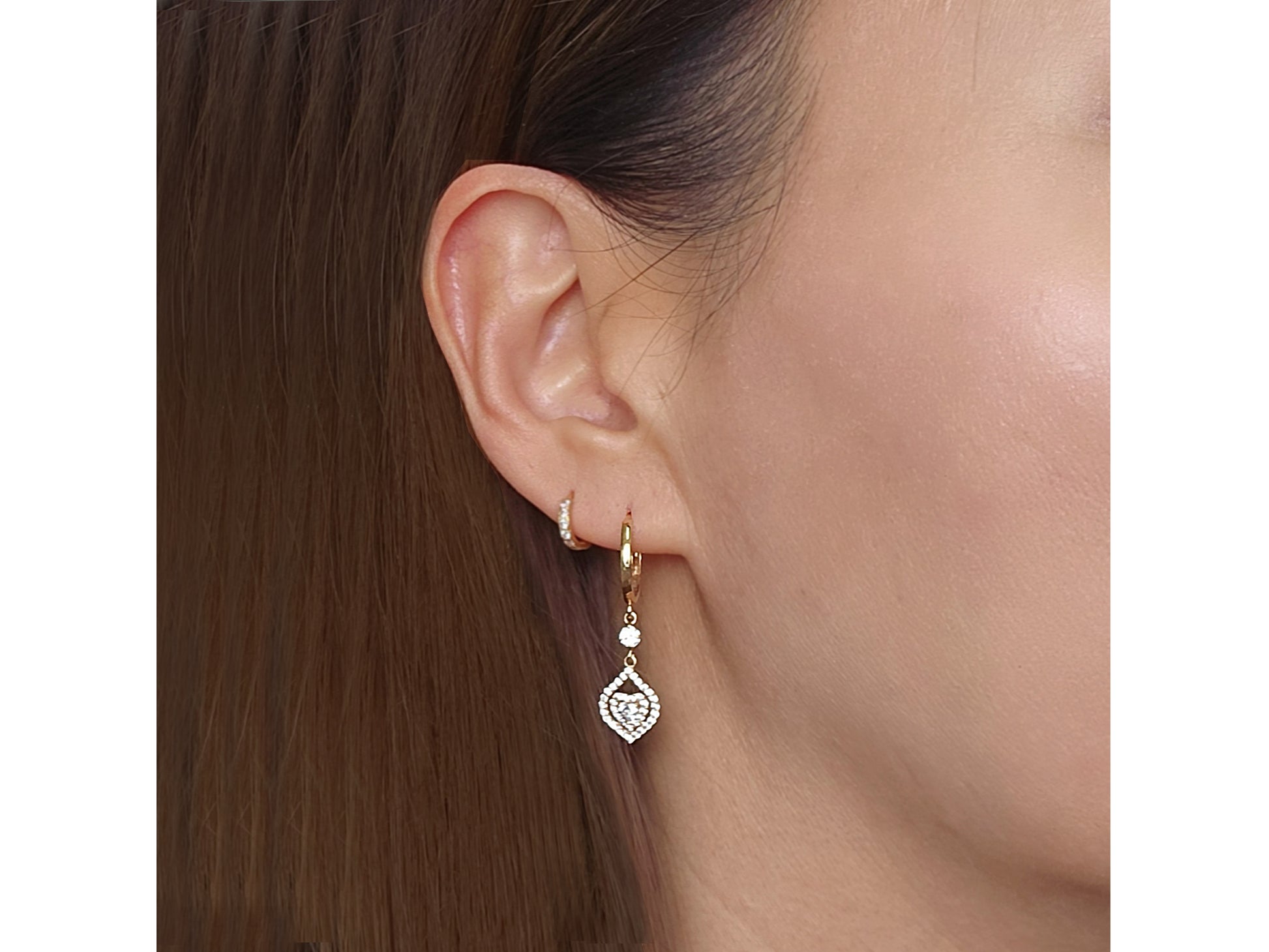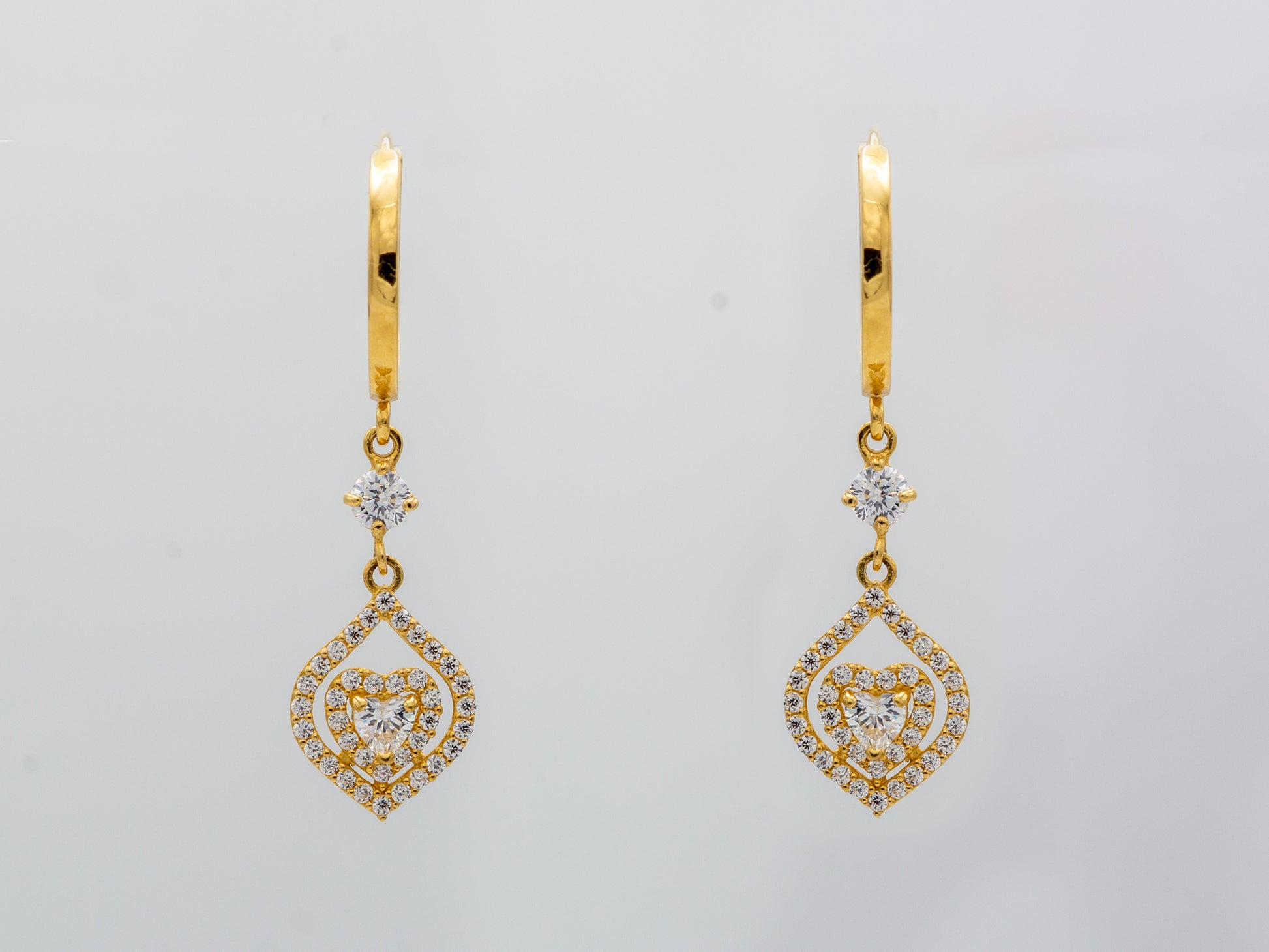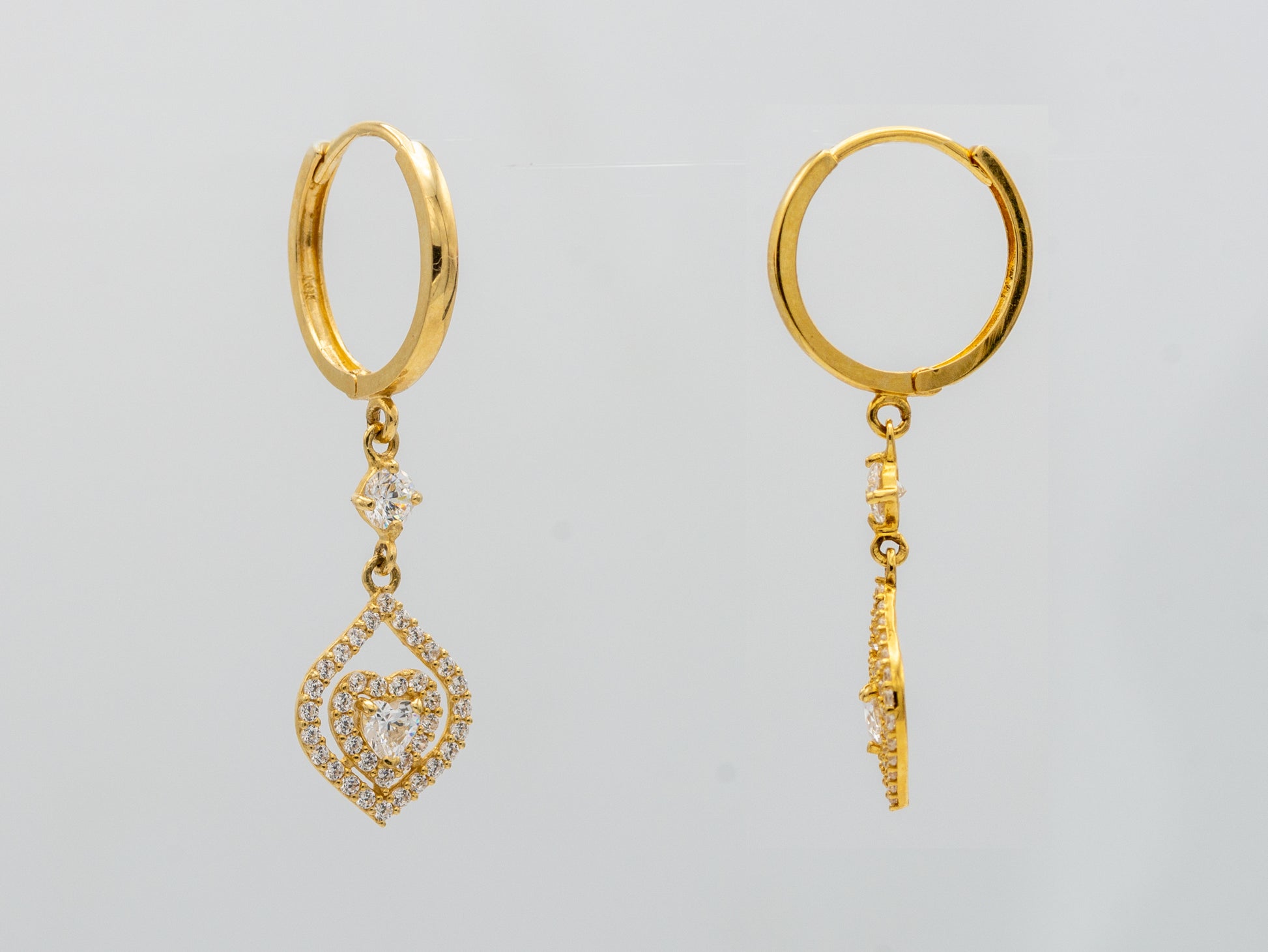 Exquisite and timeless, these 14K solid gold drop earrings feature enchanting cubic zirconia hearts that embody elegance and sophistication. Meticulously crafted for the modern woman, they add a radiant touch of luxury to everything from casual days to glamorous nights.