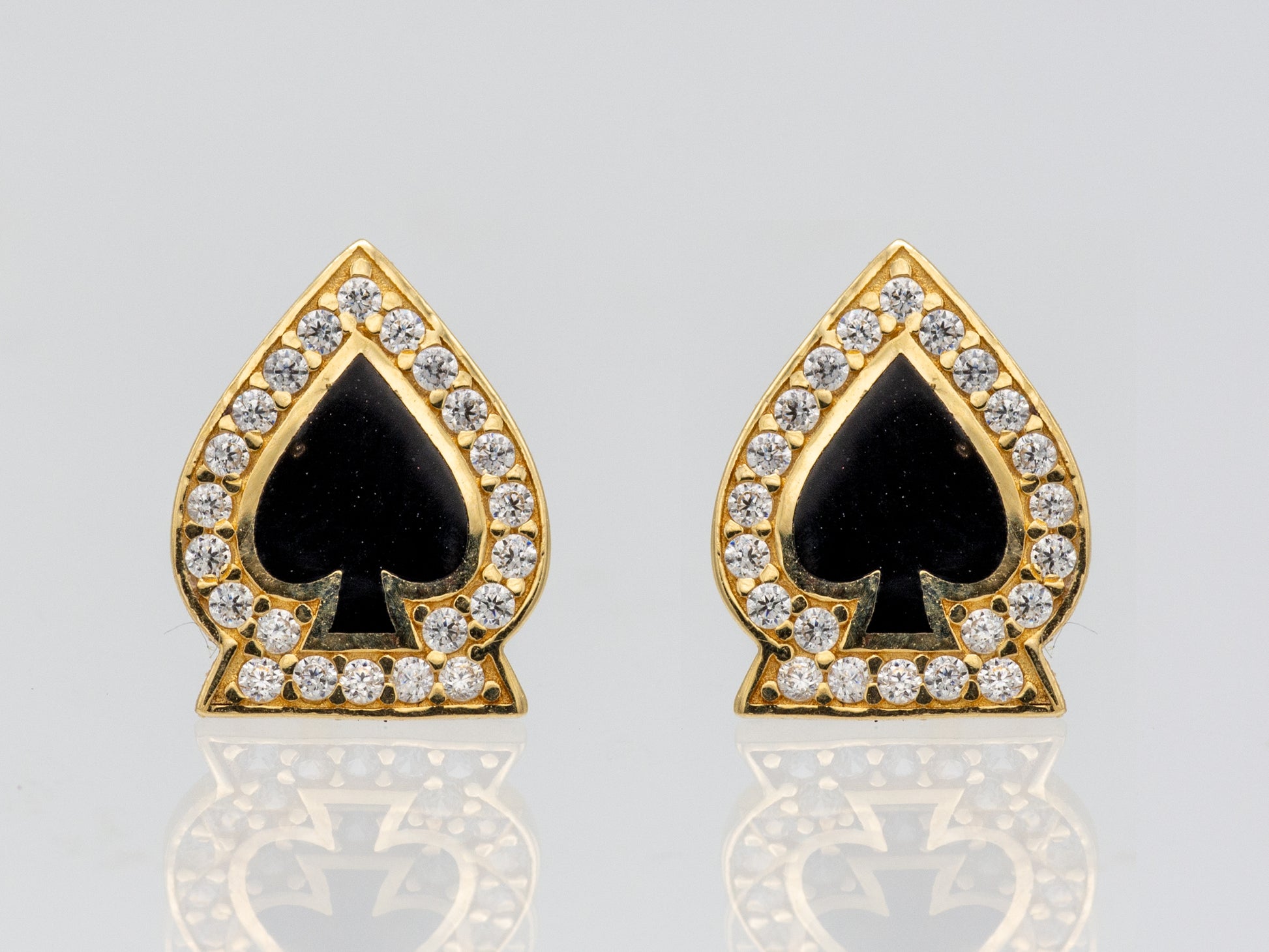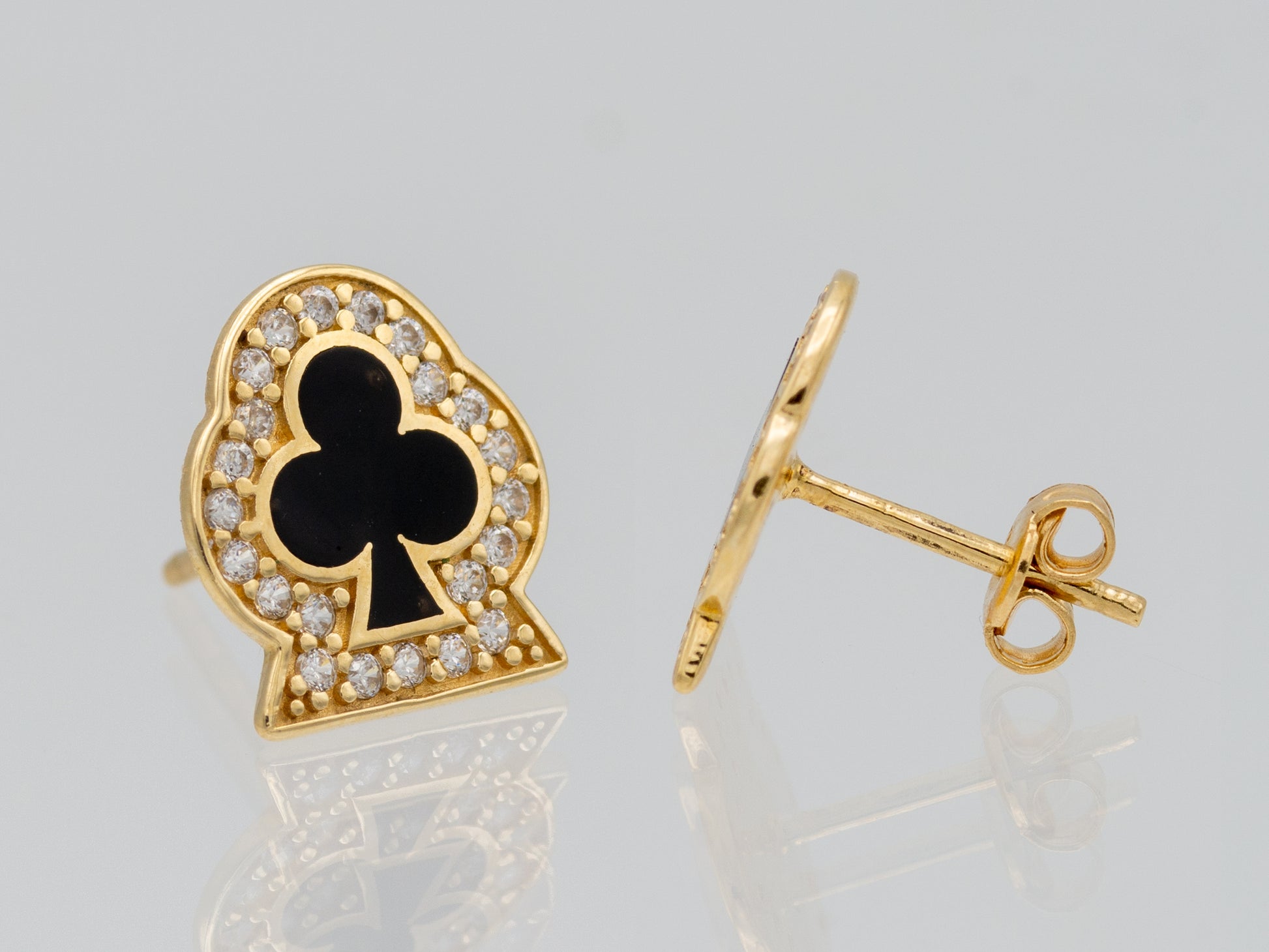 14k solid gold Poker Card Player - Spade Club Heart - Stud Earring