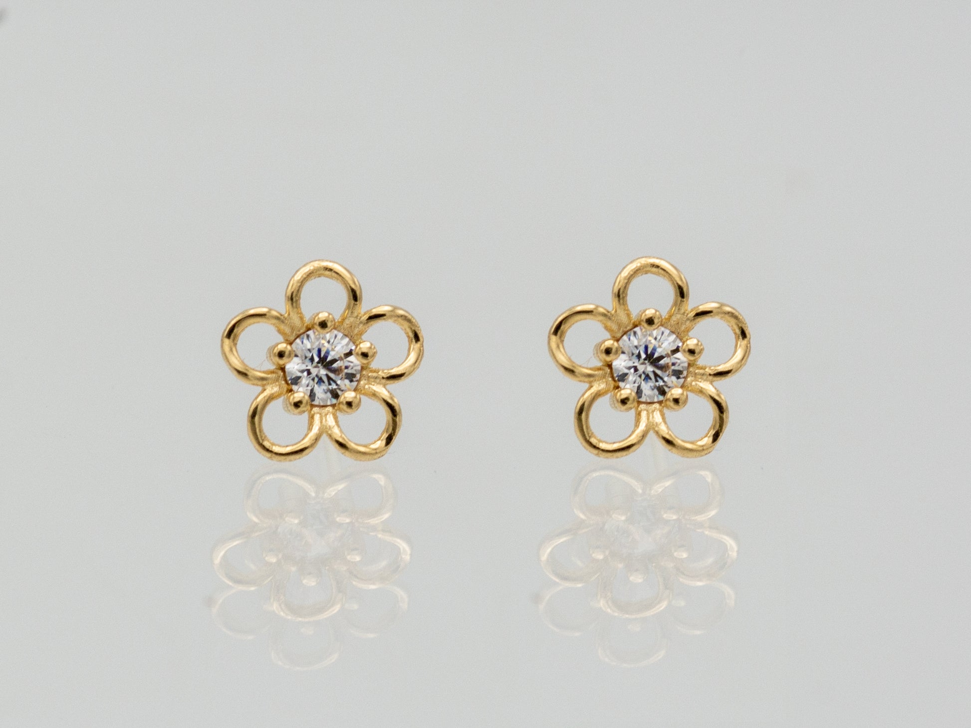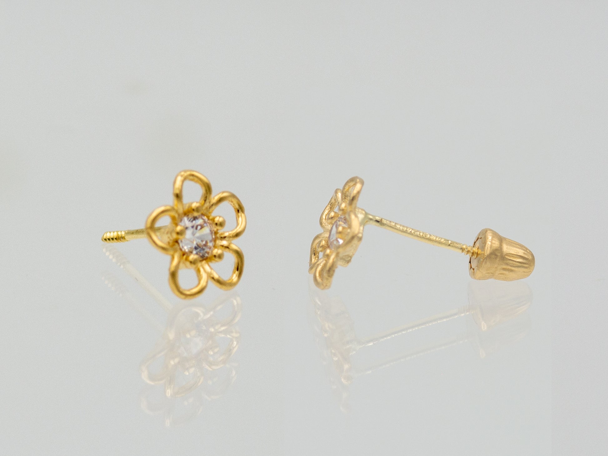 Crafted from 14k solid gold, these Alamanda flower petal stud earrings feature a sparkling center cubic zirconia and secure screw backs—perfect for adding a touch of elegance to your everyday style or gifting to any flower lover to glam up any look.