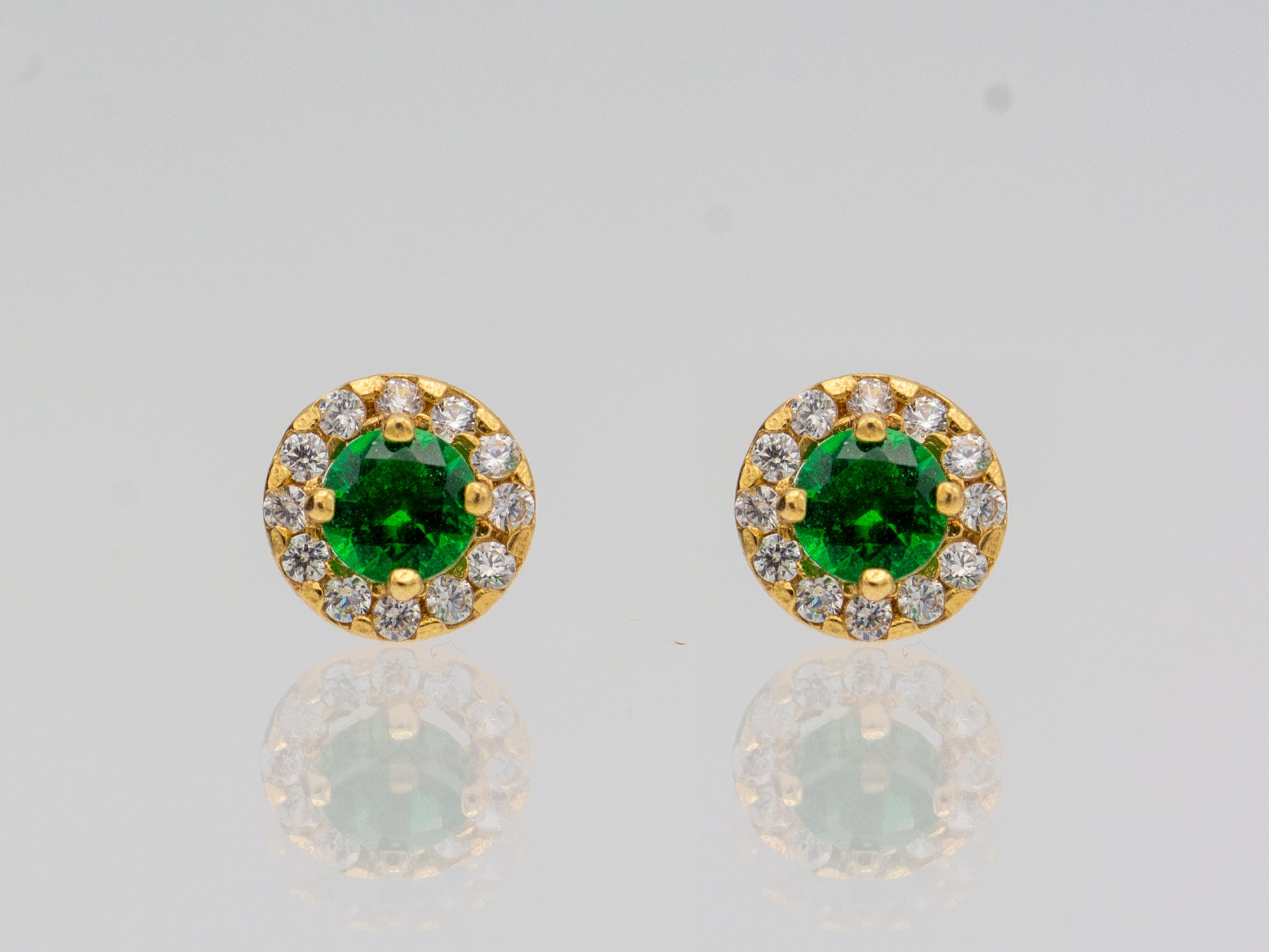 14k Solid Gold Synthetic Emerald and Blue Topaz round Stud Earrings