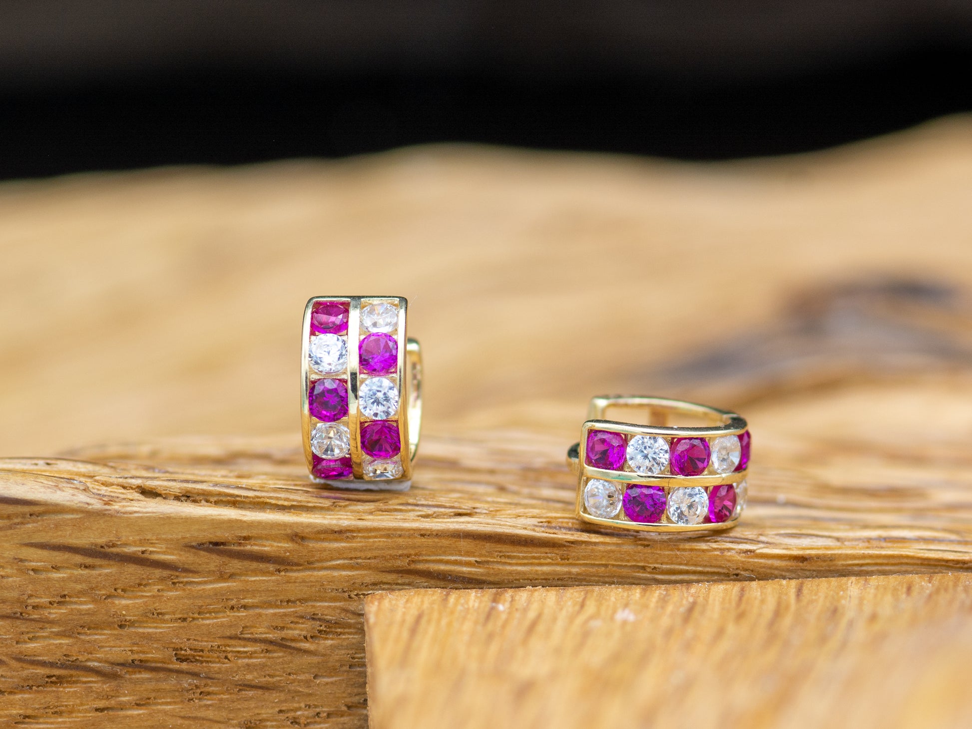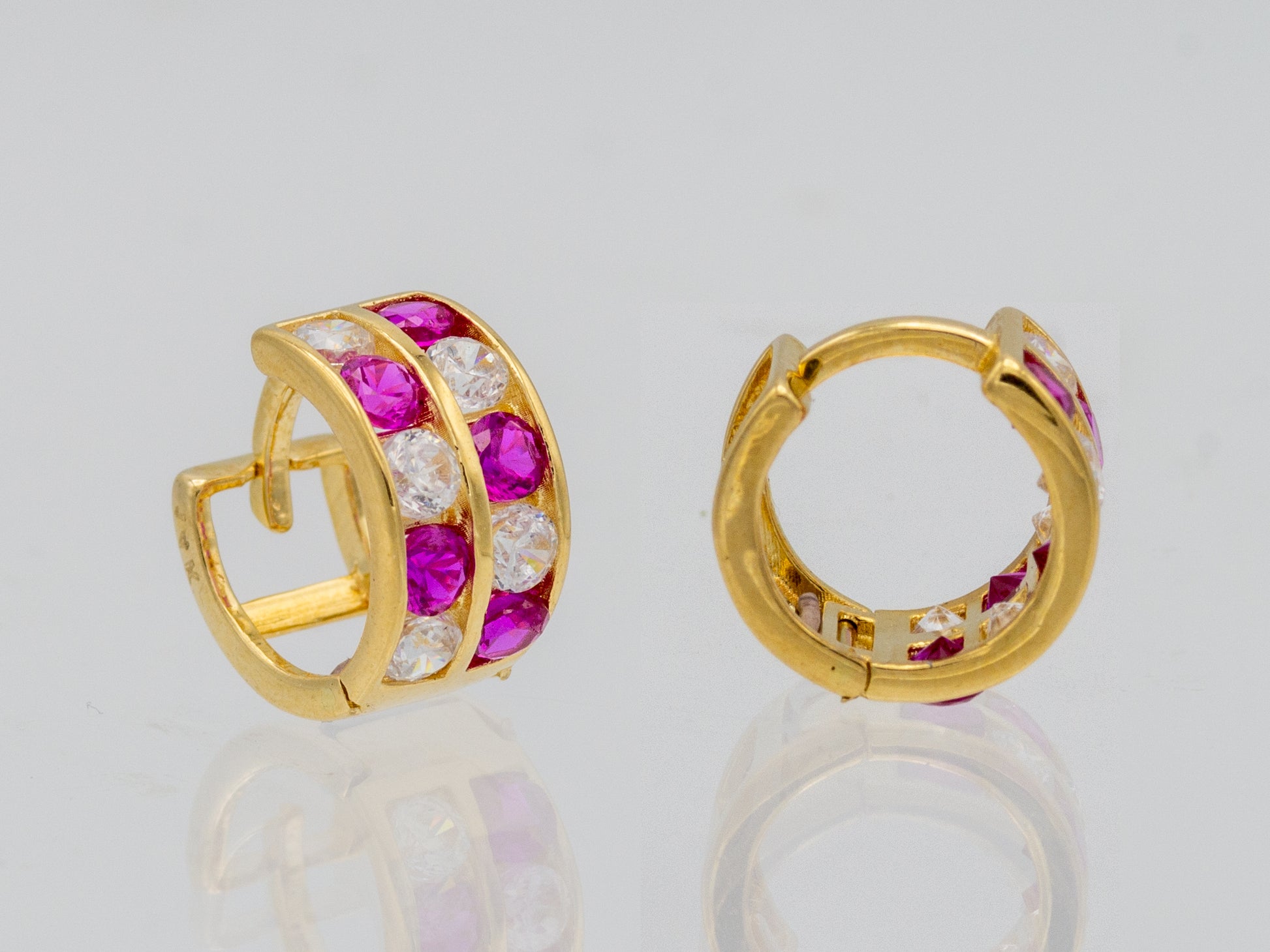 14k solid gold Sparkling Synthetic Ruby Pave Set Huggies earring