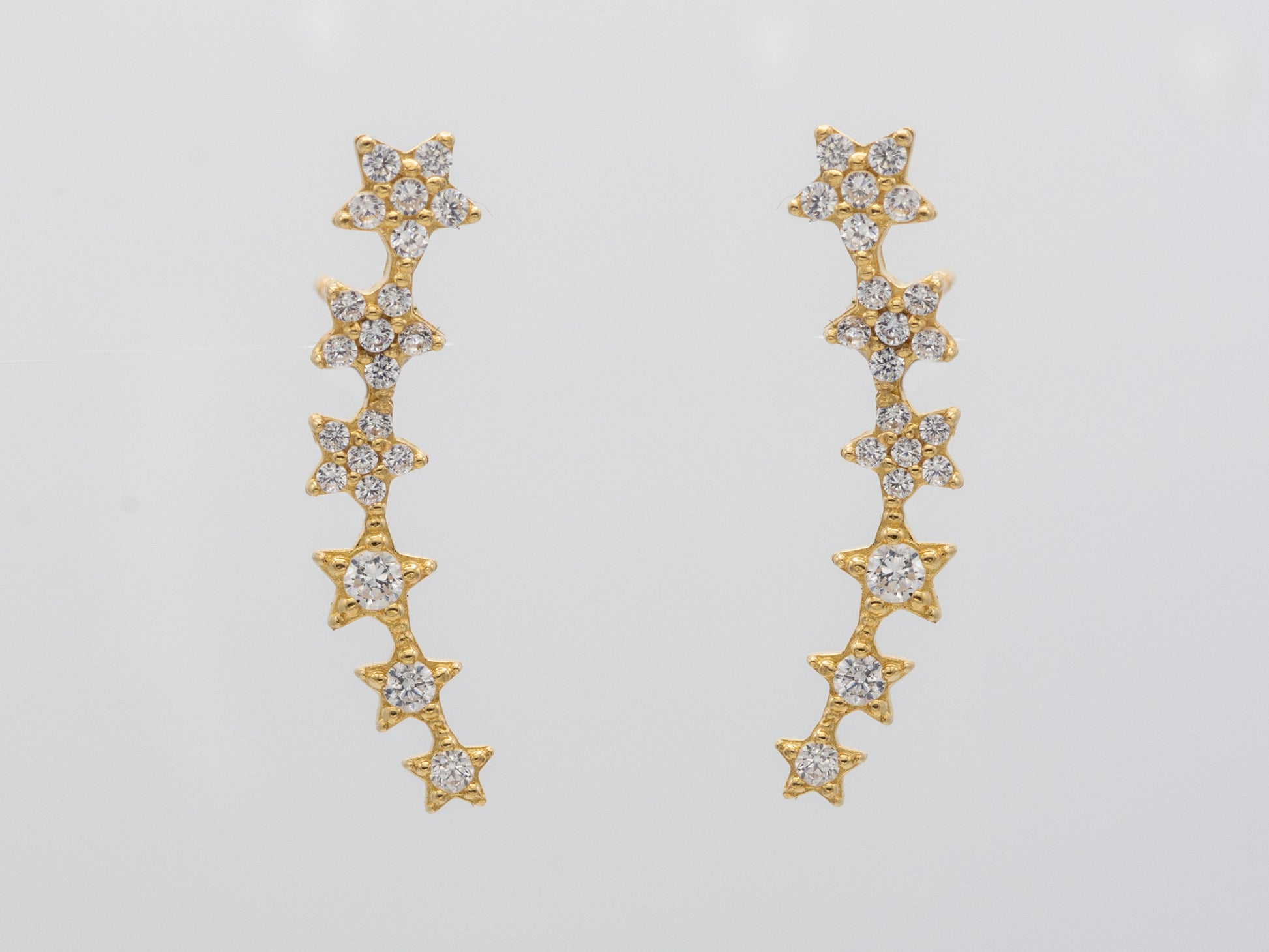 Bring celestial sparkle to your style with these 14K solid gold graduated star linear drop earrings, adorned with shimmering cubic zirconia for a twinkling, elegant finish that shines day or night.