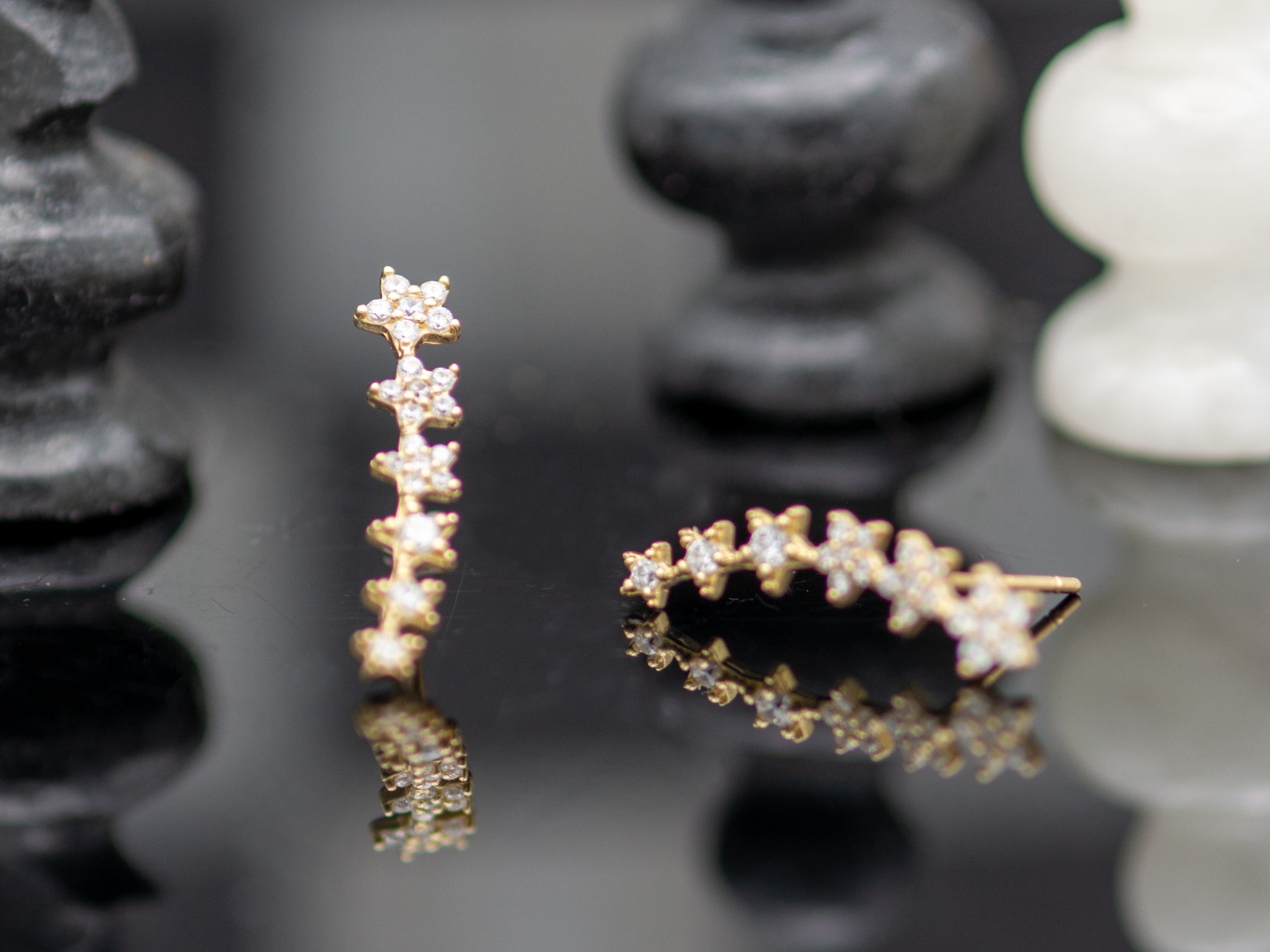 14k solid gold Cubic Zirconia Graduated Star Linear Drop Earrings