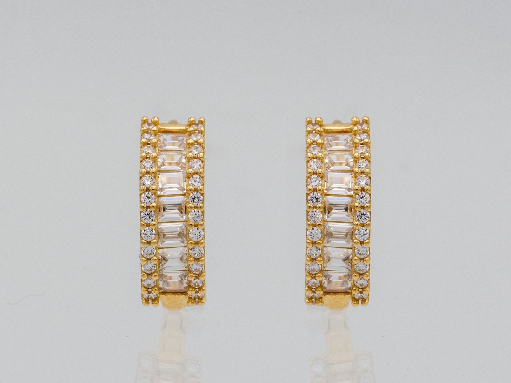 14k solid gold Trendy Baguette Hoop Huggies earring