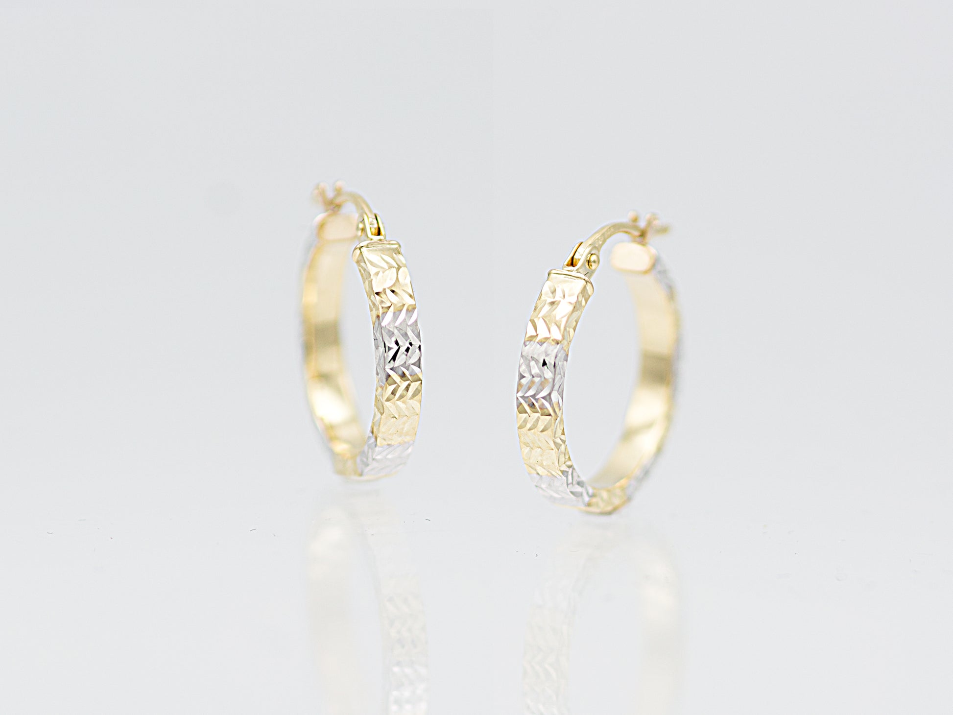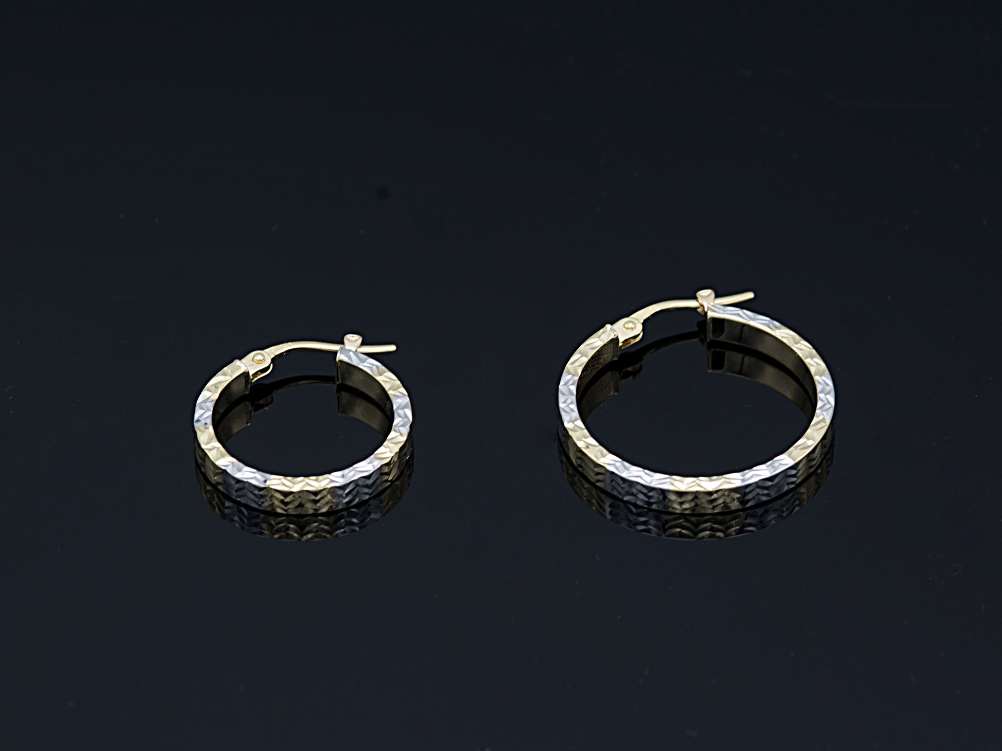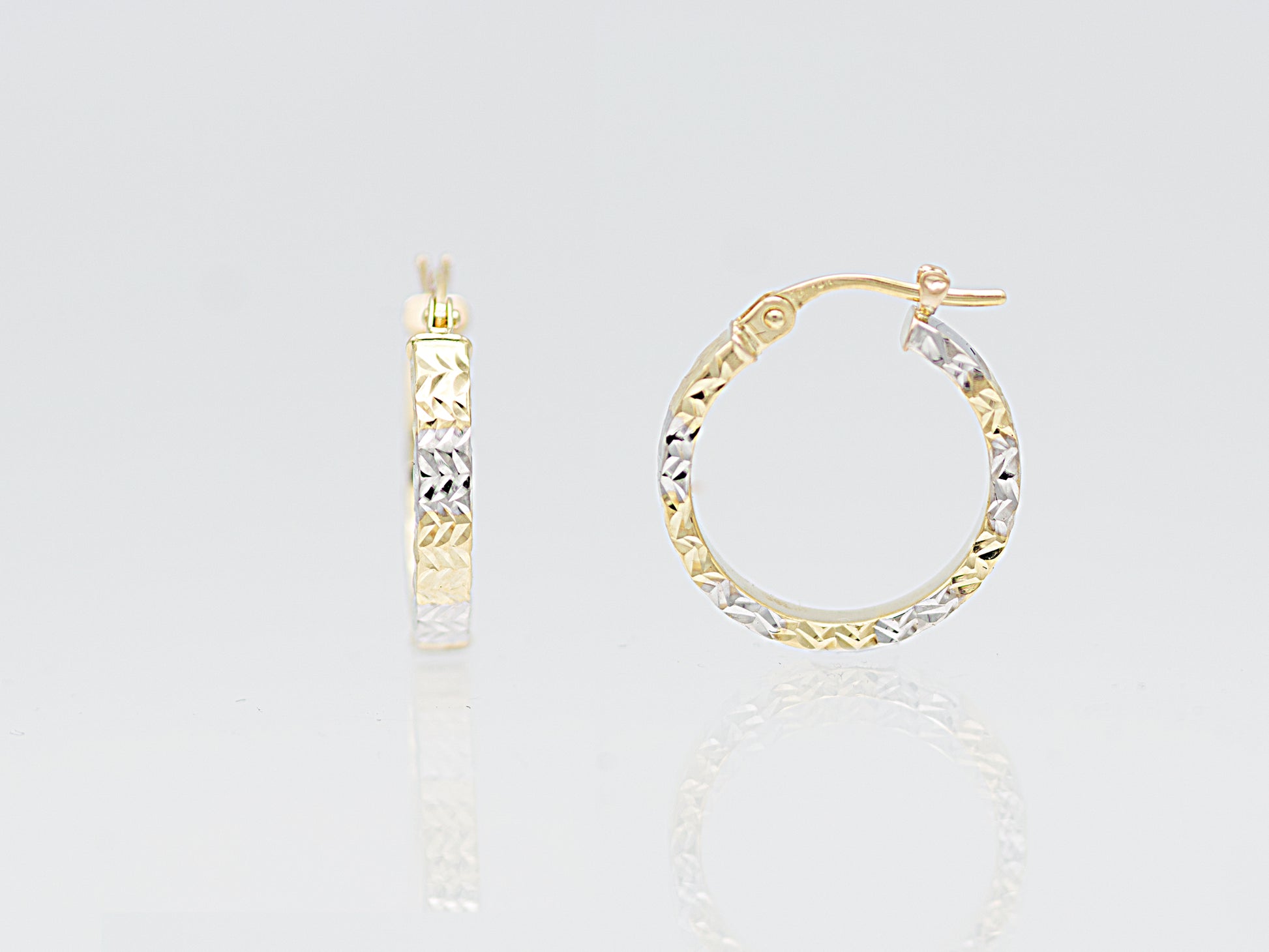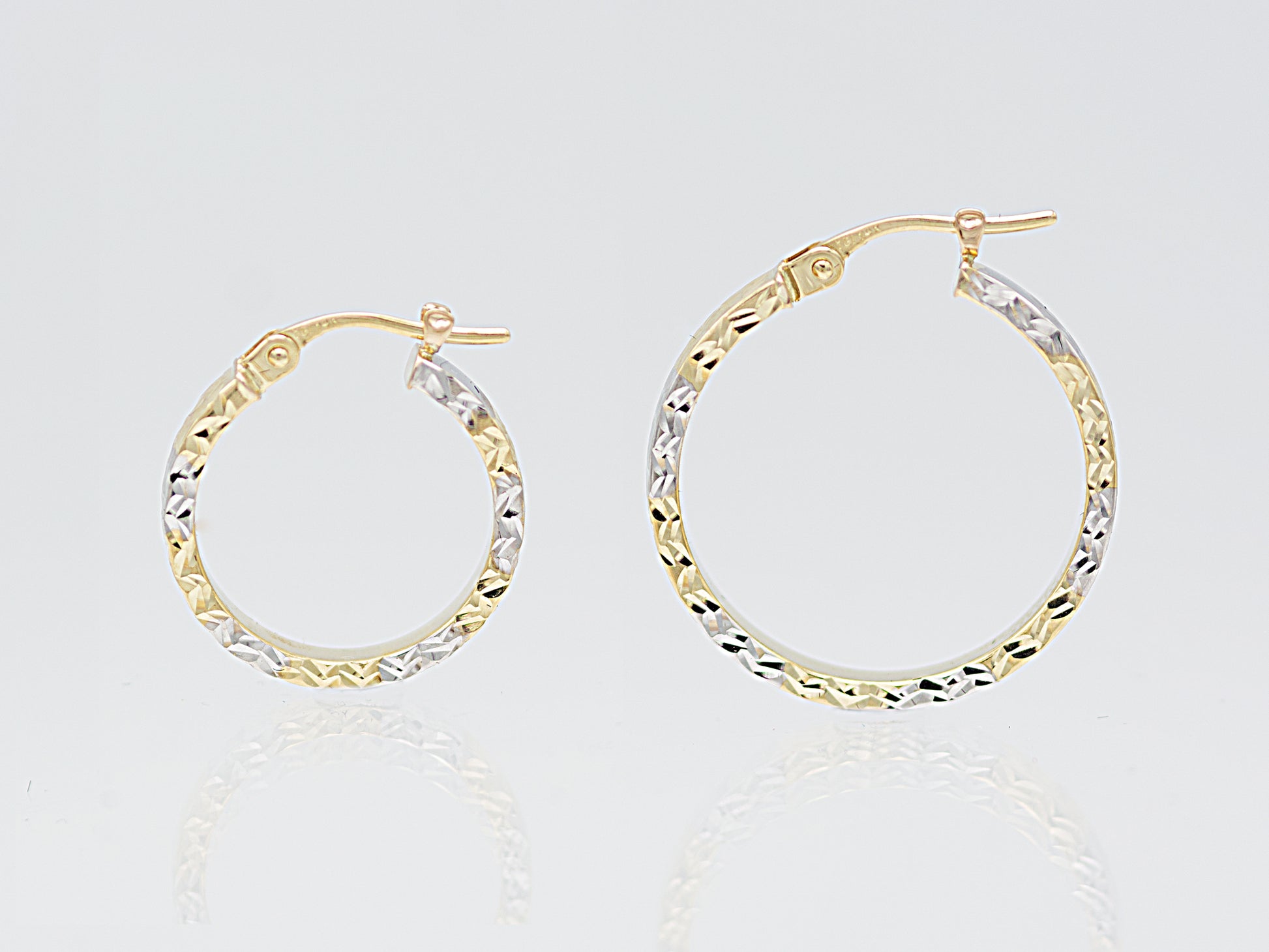 14K Solid Gold Two tone Color Diamond Cut Flat Hoop Earrings