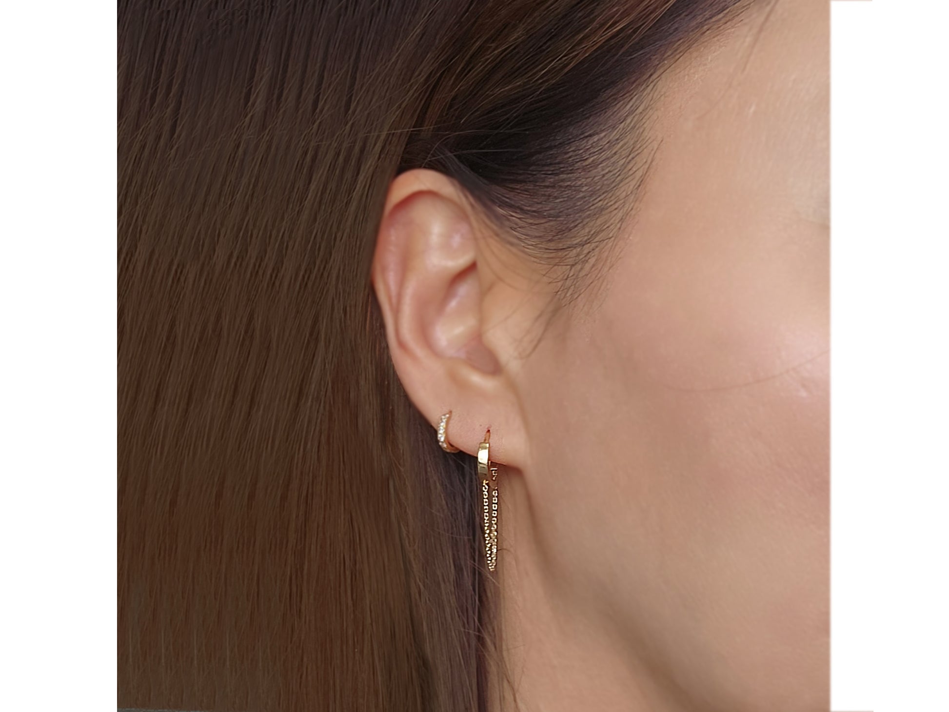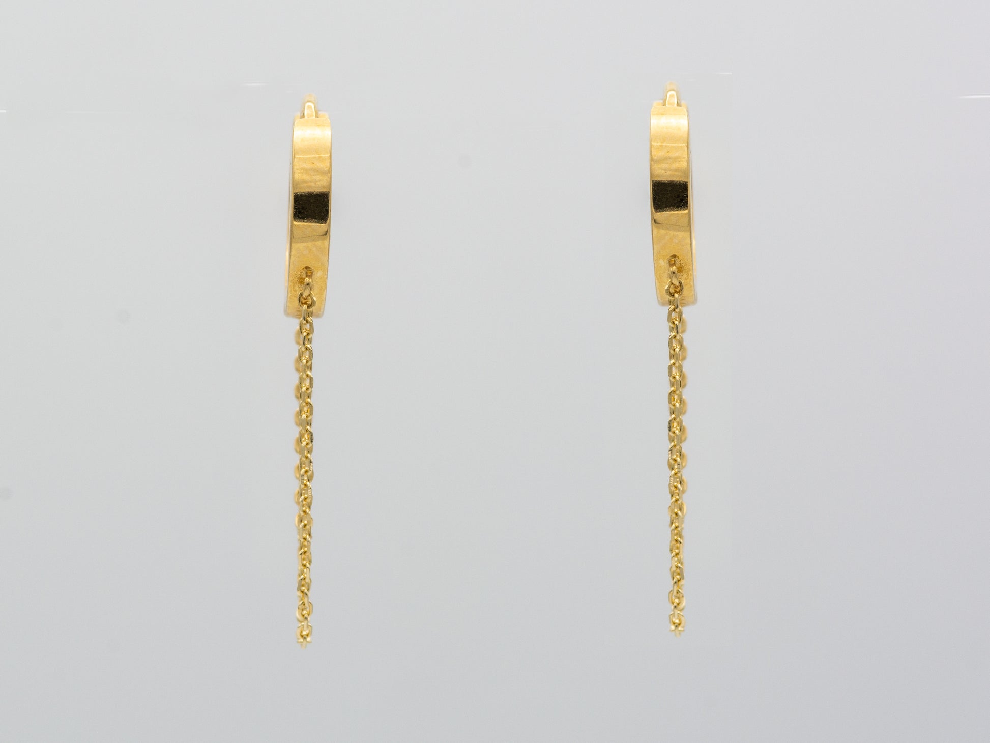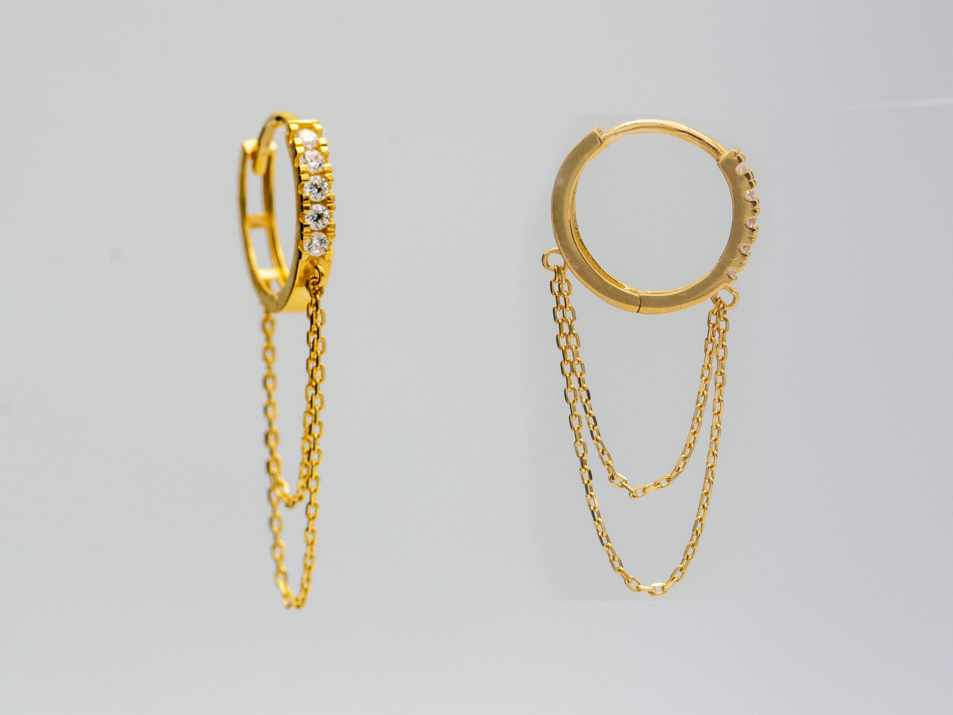 Timeless yet modern, these 14K solid gold tassel hoop earrings feature two delicate chains that add a contemporary twist to a classic design. Perfect for any outfit or occasion, they radiate effortless elegance and versatile luxury.