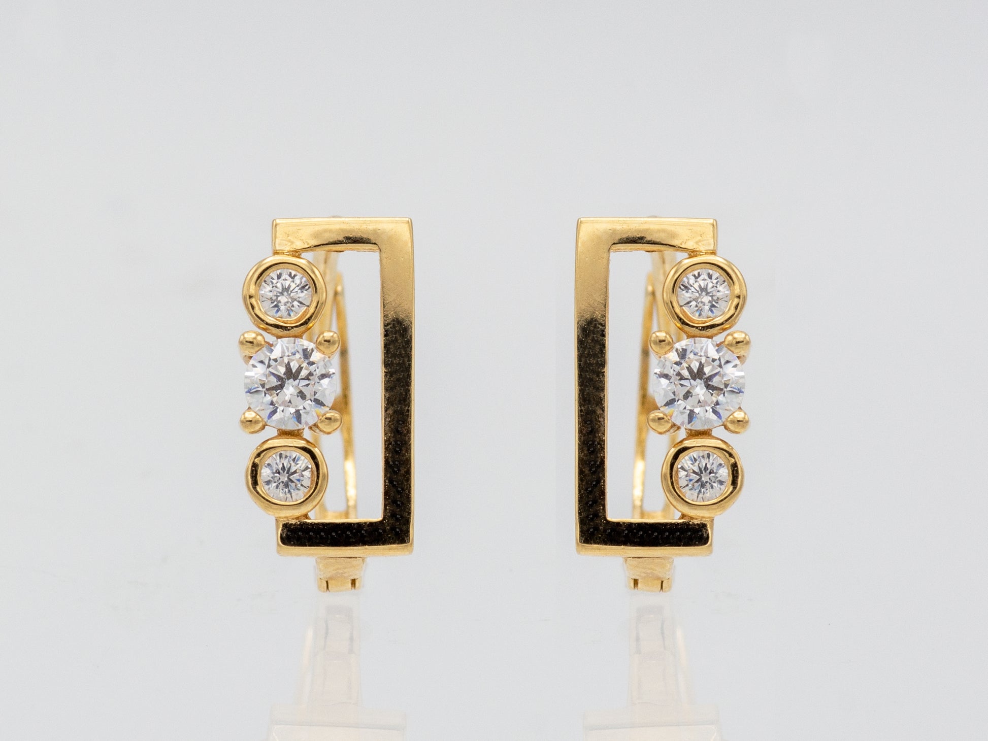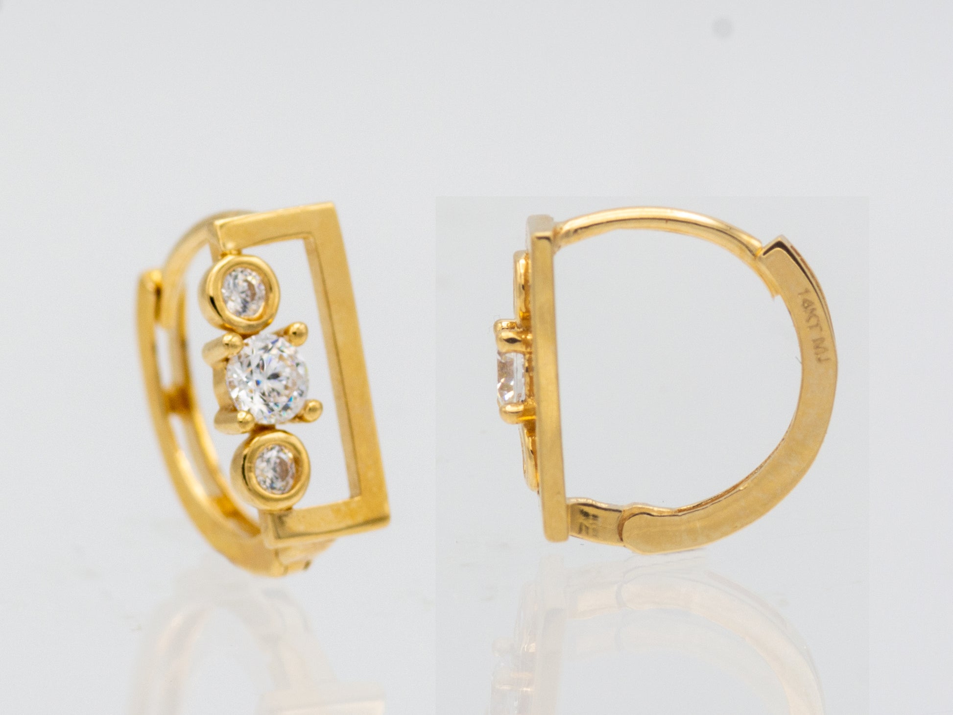14k solid gold Geometric rectangular Simulated Diamonds Huggies earring