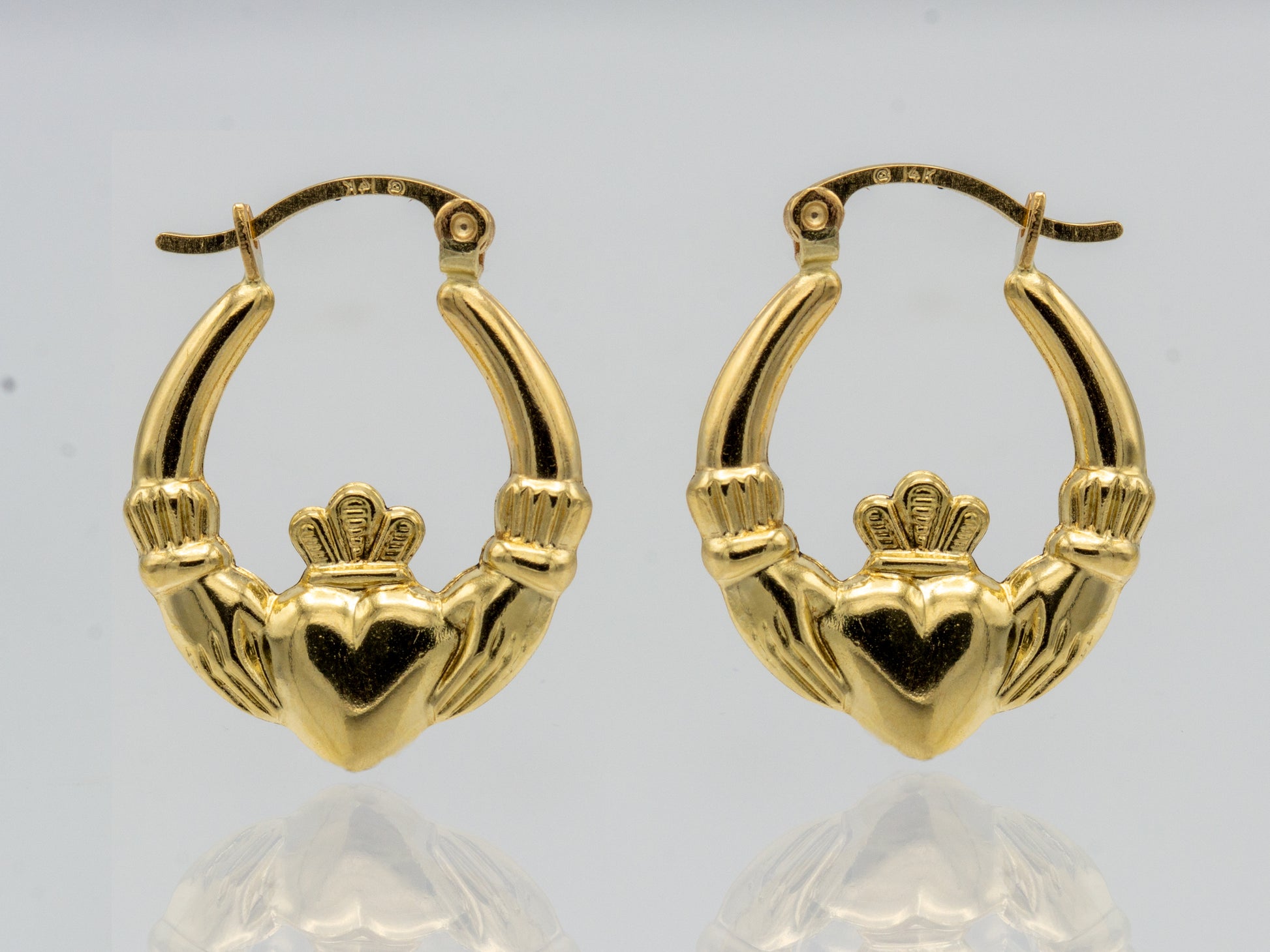 Celebrate love, loyalty, and friendship with these 14K solid gold Claddagh hoop earrings, featuring the iconic heart and crown design of Irish tradition—a timeless symbol of romance and nobility, perfect for Valentine’s Day or any meaningful occasion.