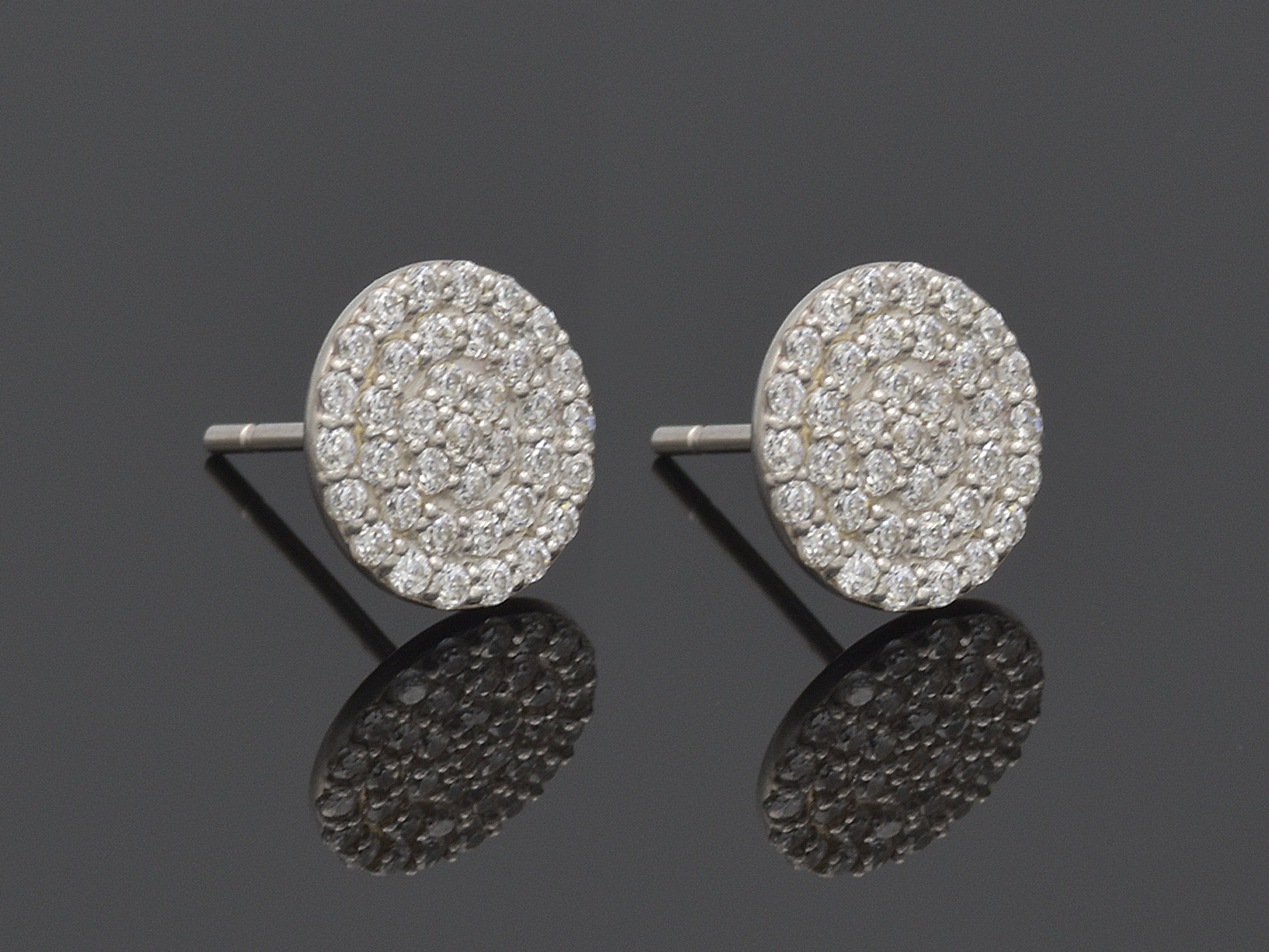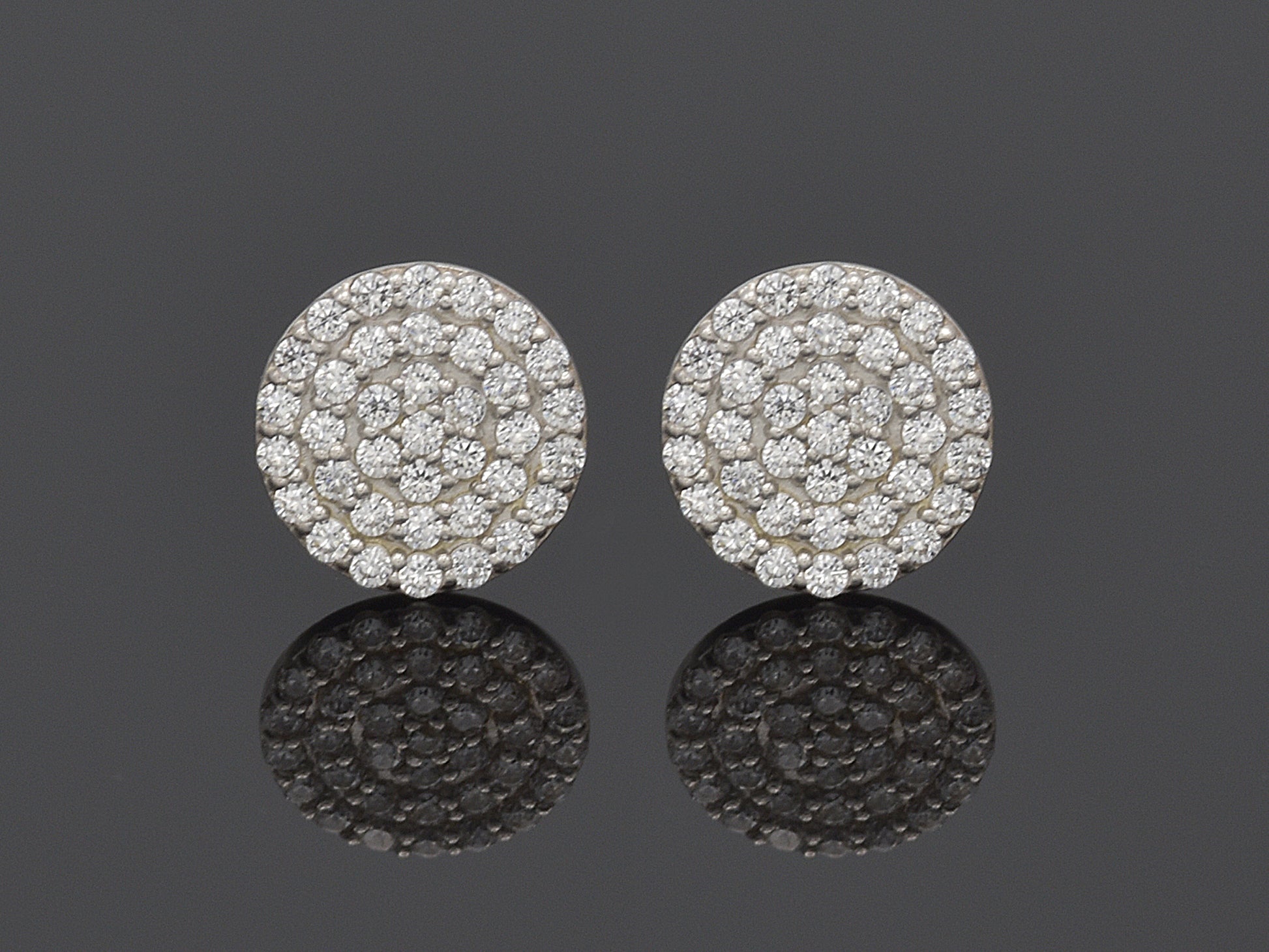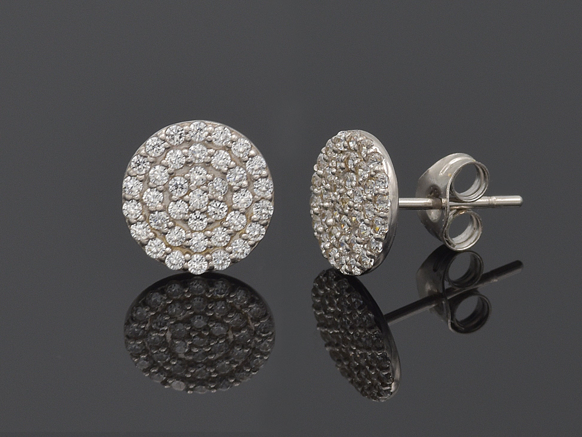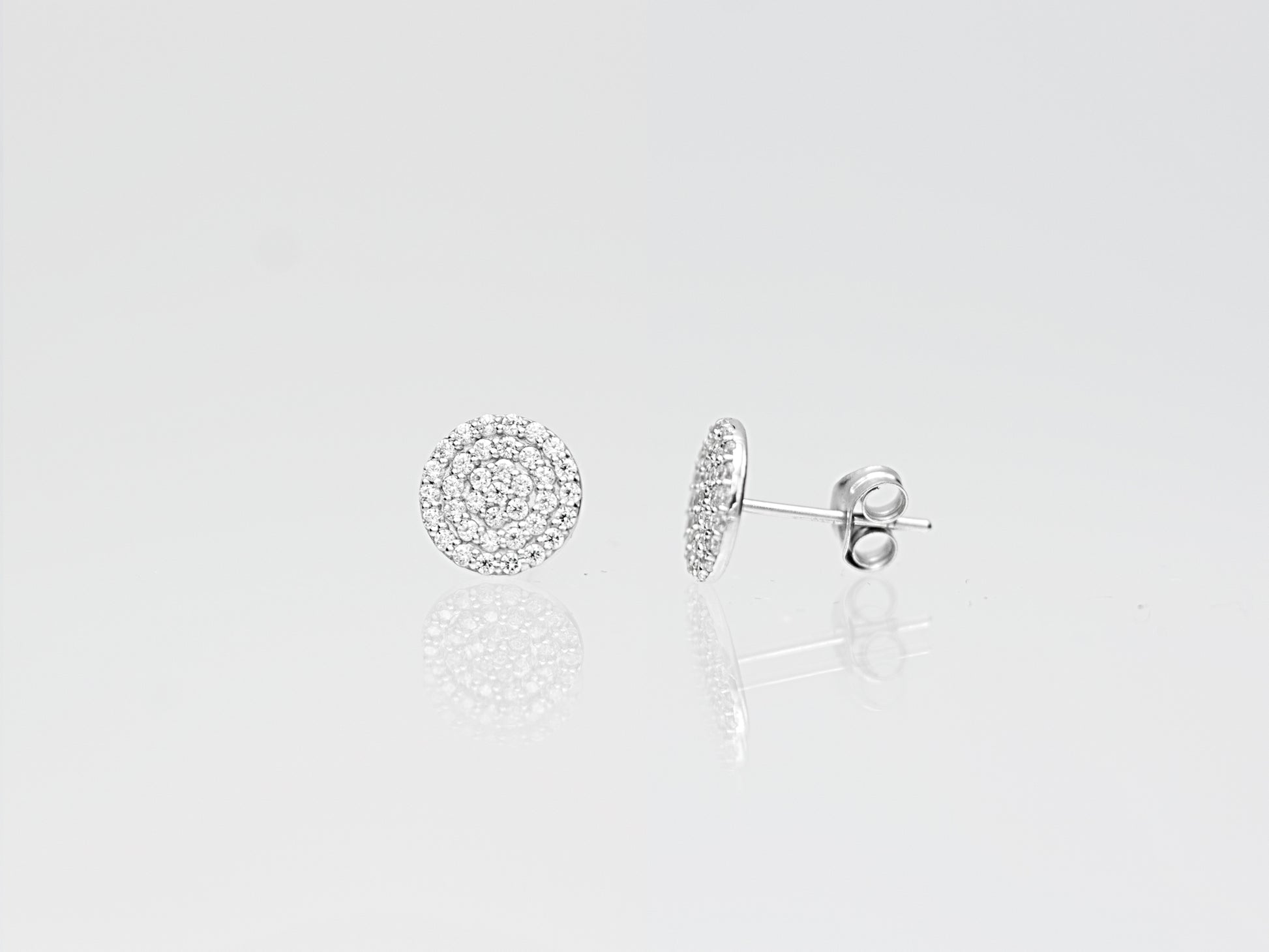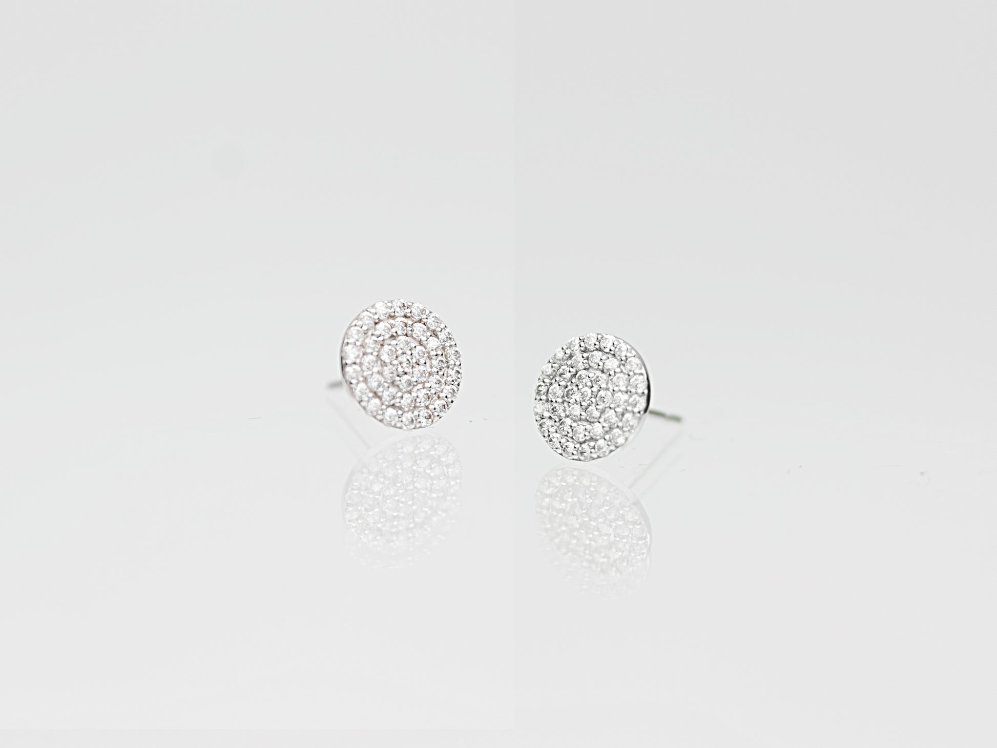 14K solid white gold disc post earring, Circle Sparkly elegant Stud earring for All, Luxurious look we all need and Want.