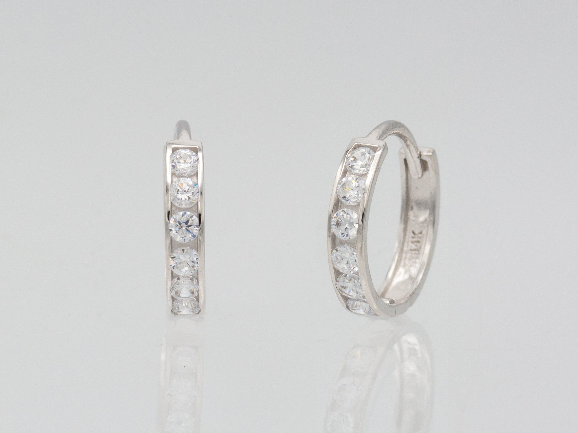14k solid White gold single line simulated diamond earring huggie Hoop Earrings